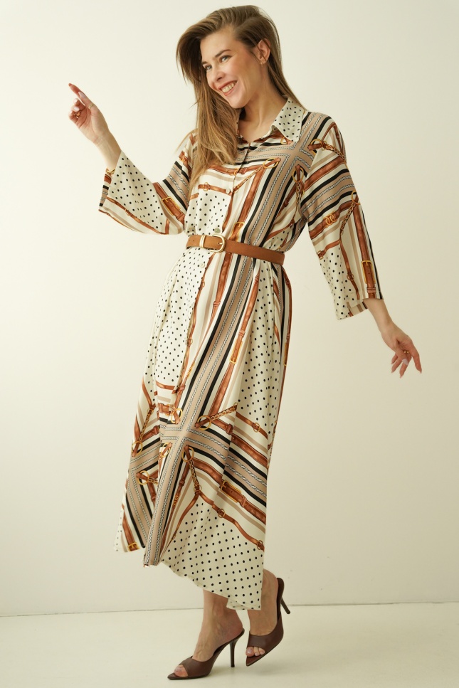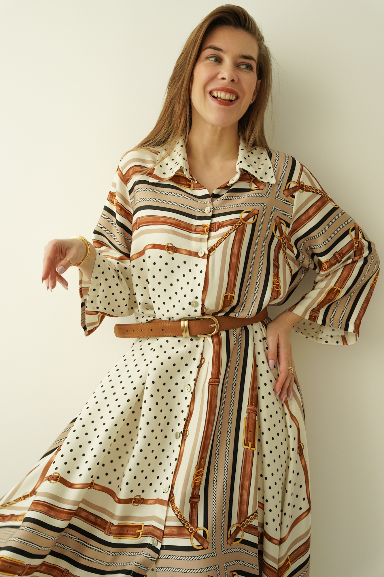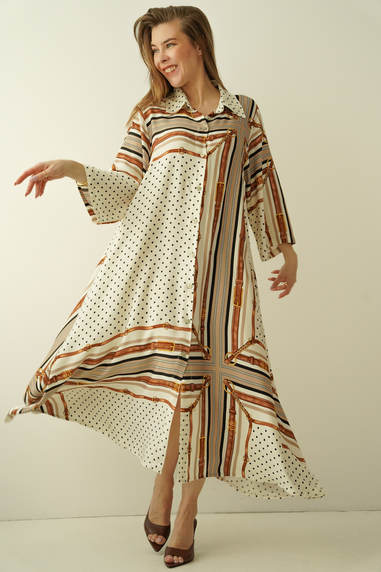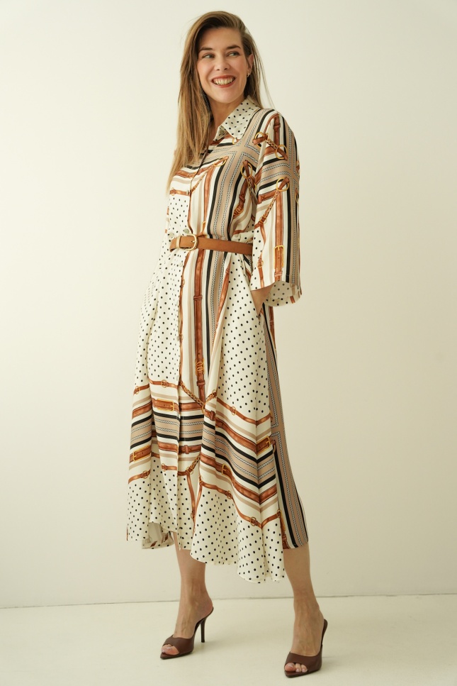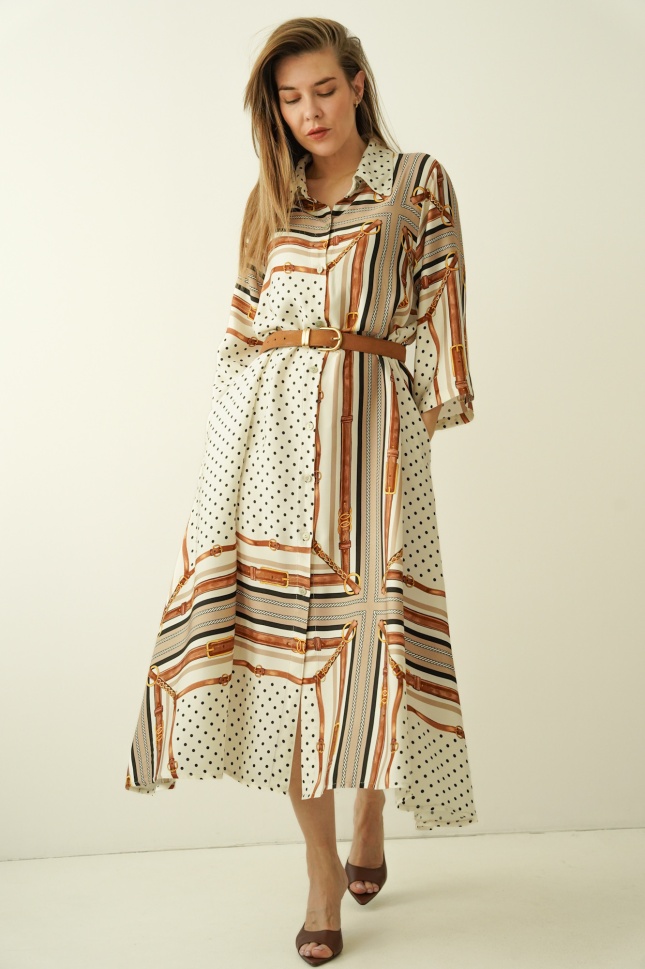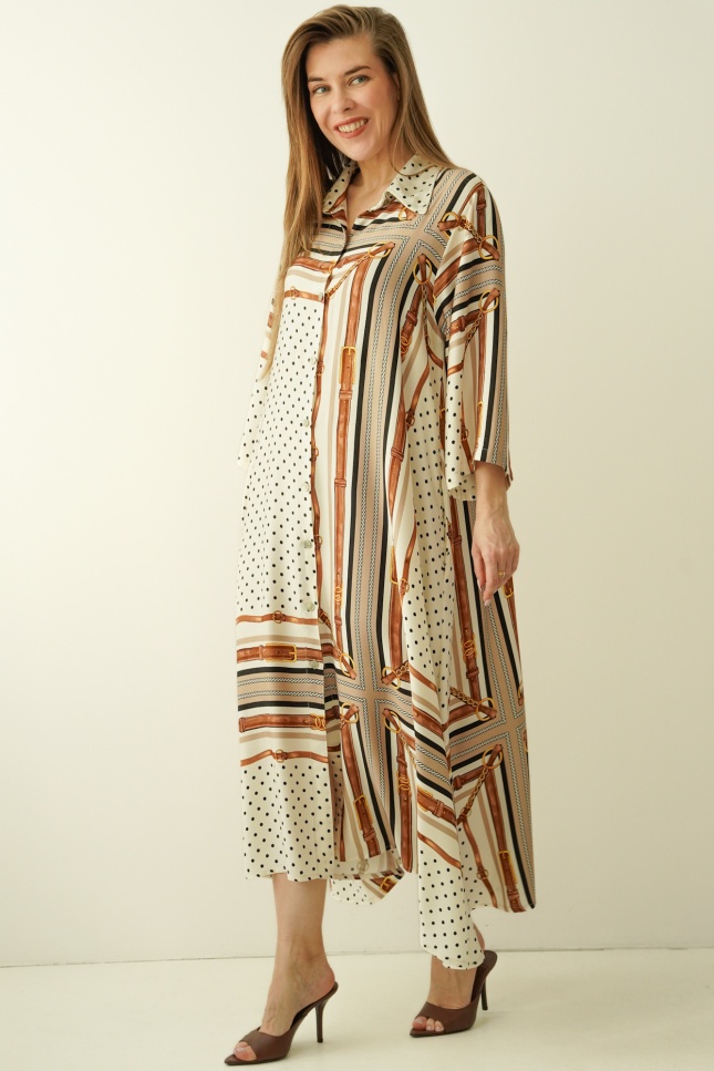 A loose-fitting shirt dress with a touch of silk Fiore cream imperiale