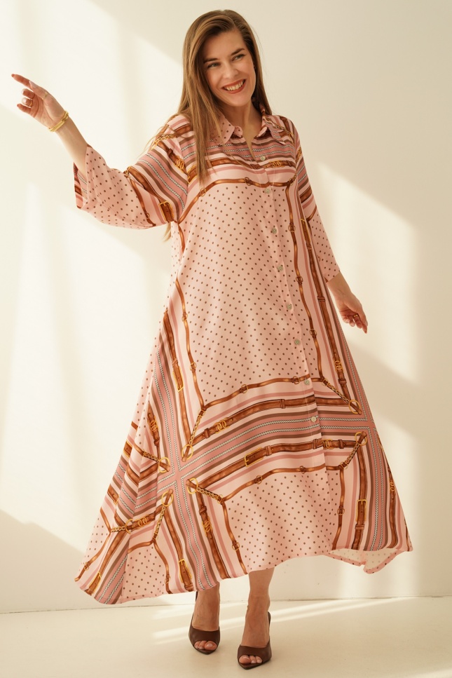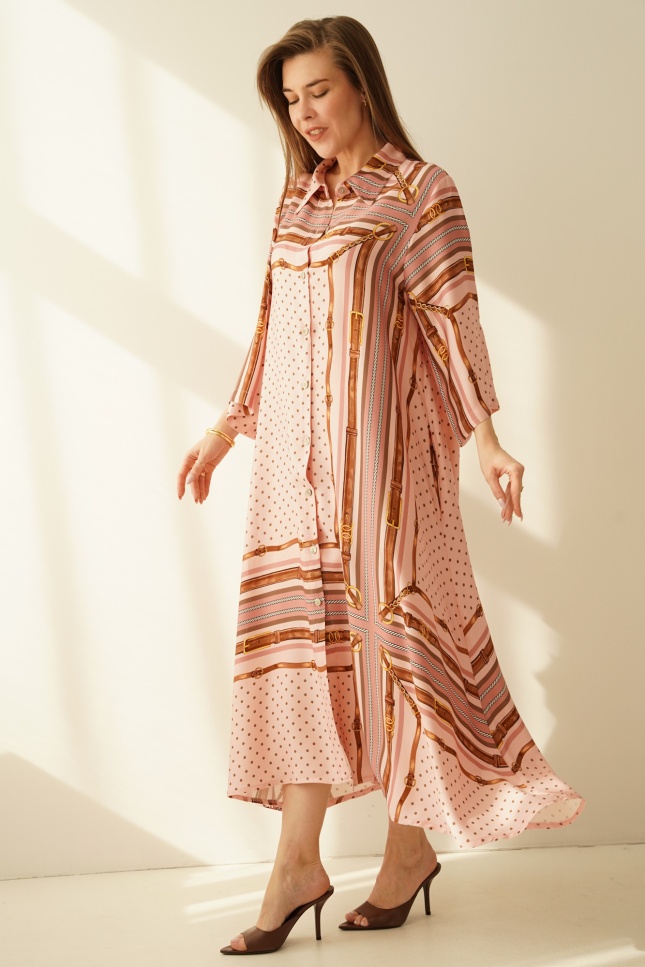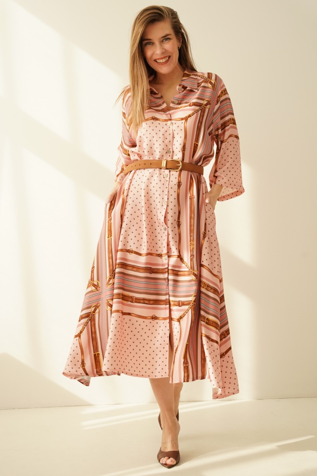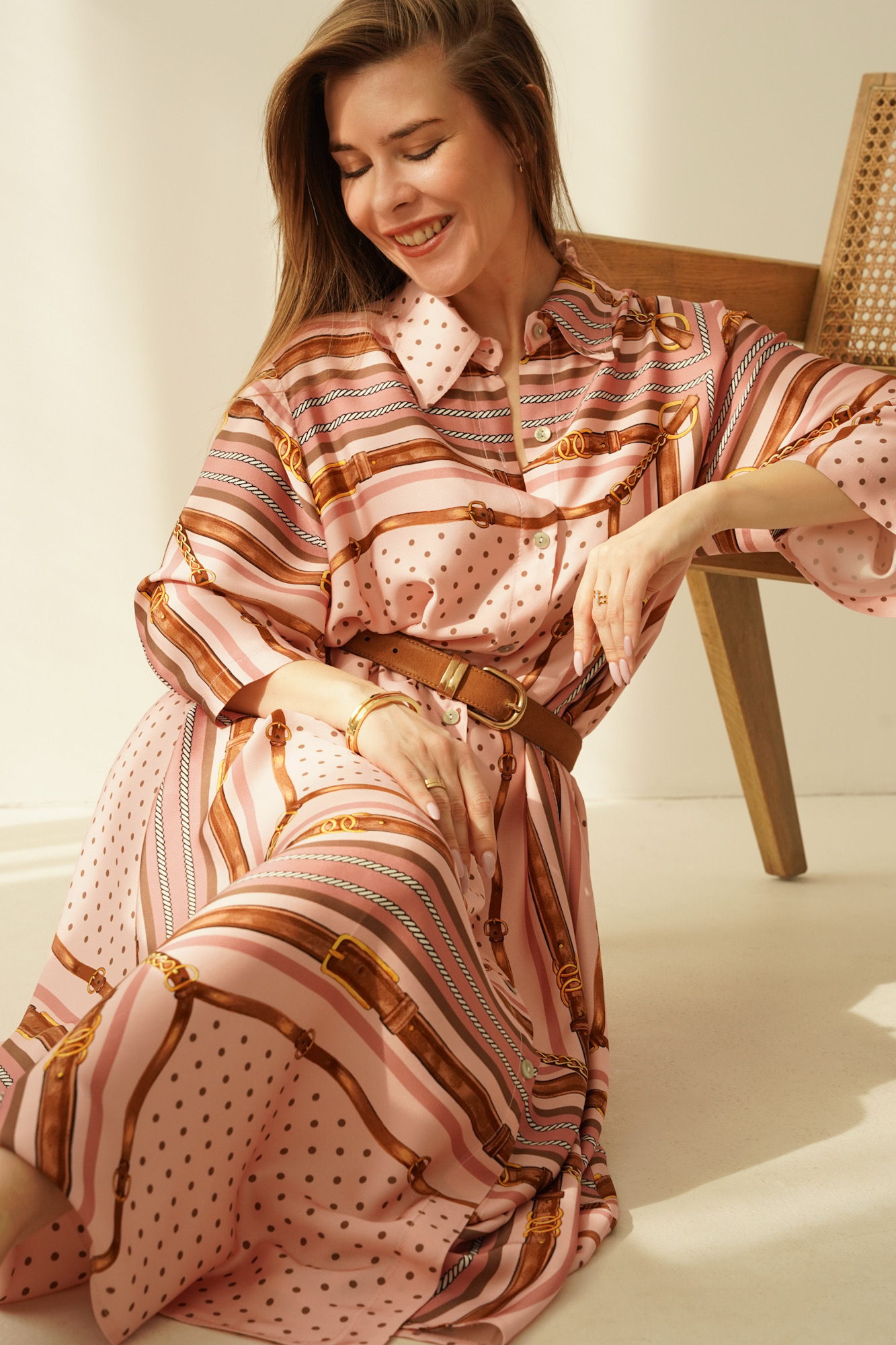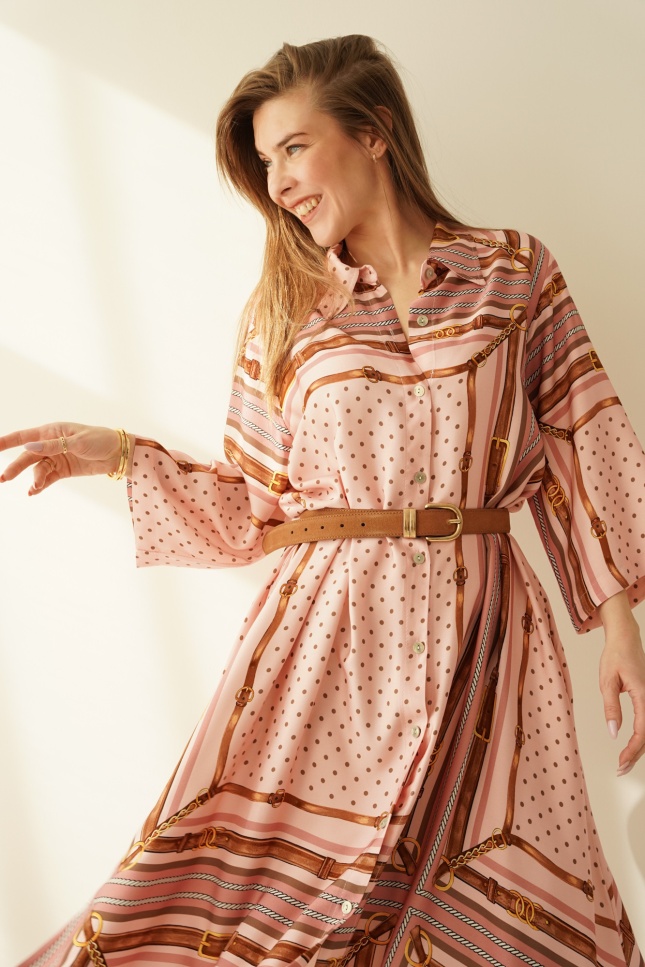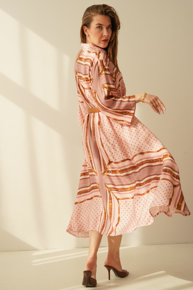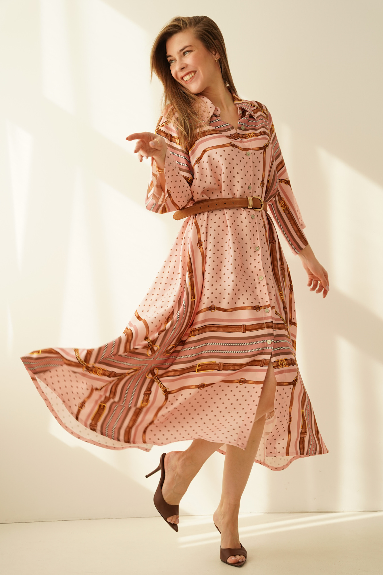 A loose-fitting shirt dress with a touch of silk Fiore pink imperiale