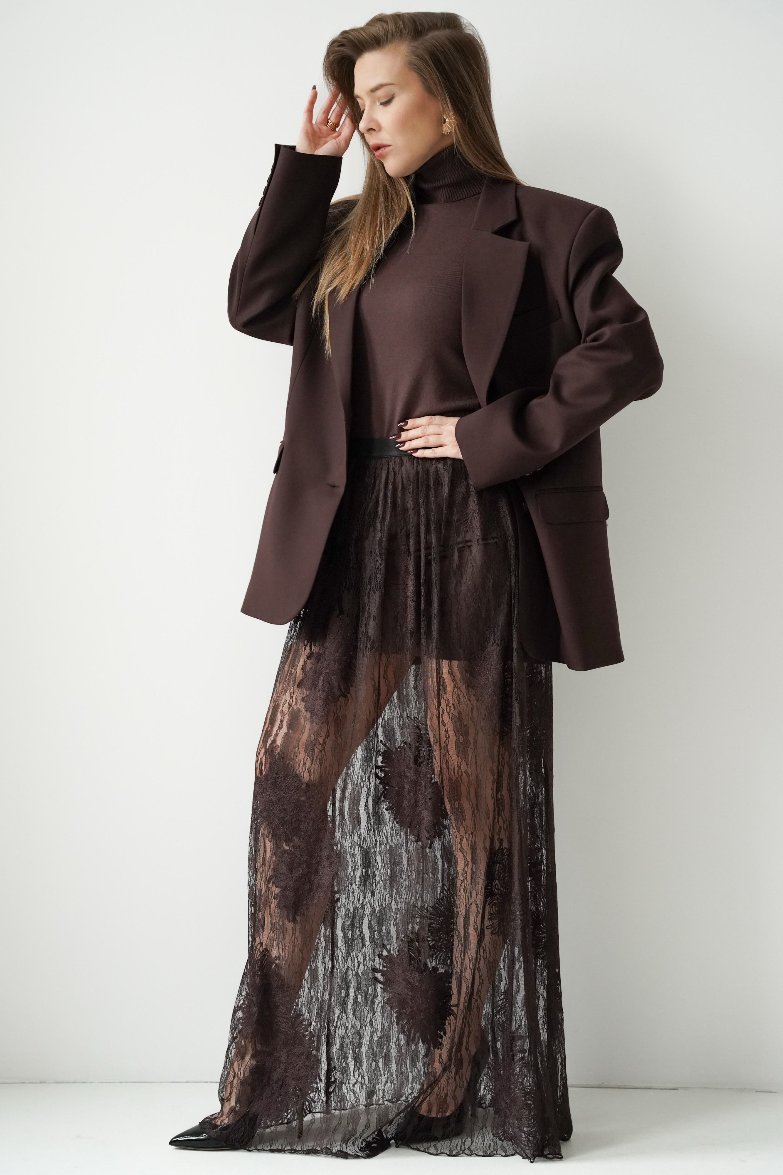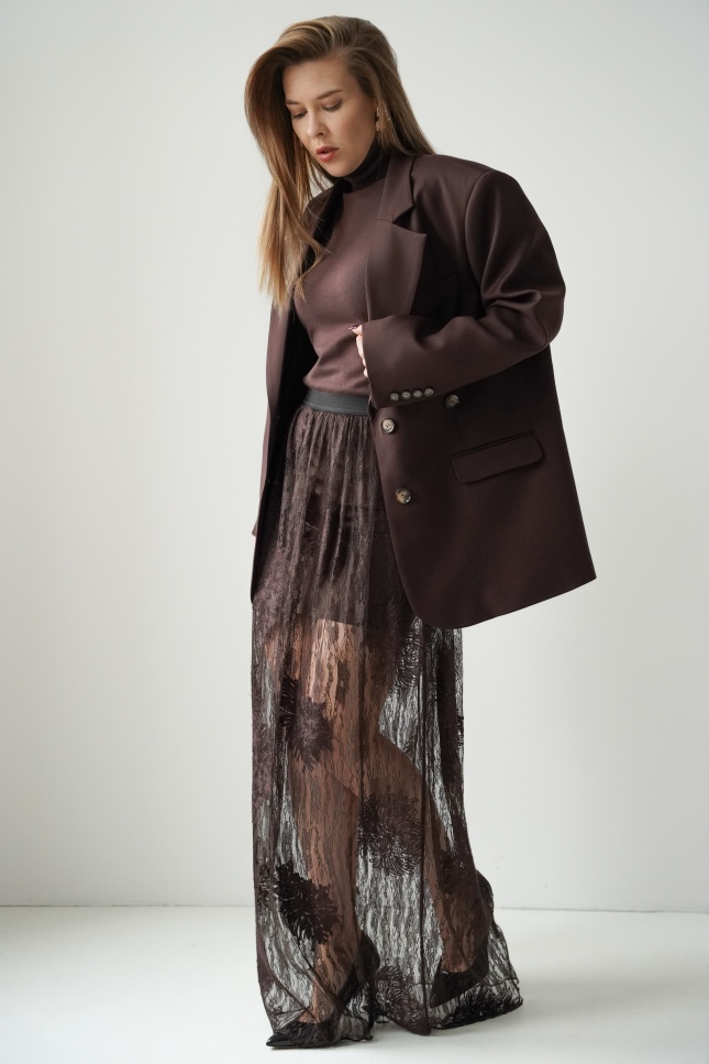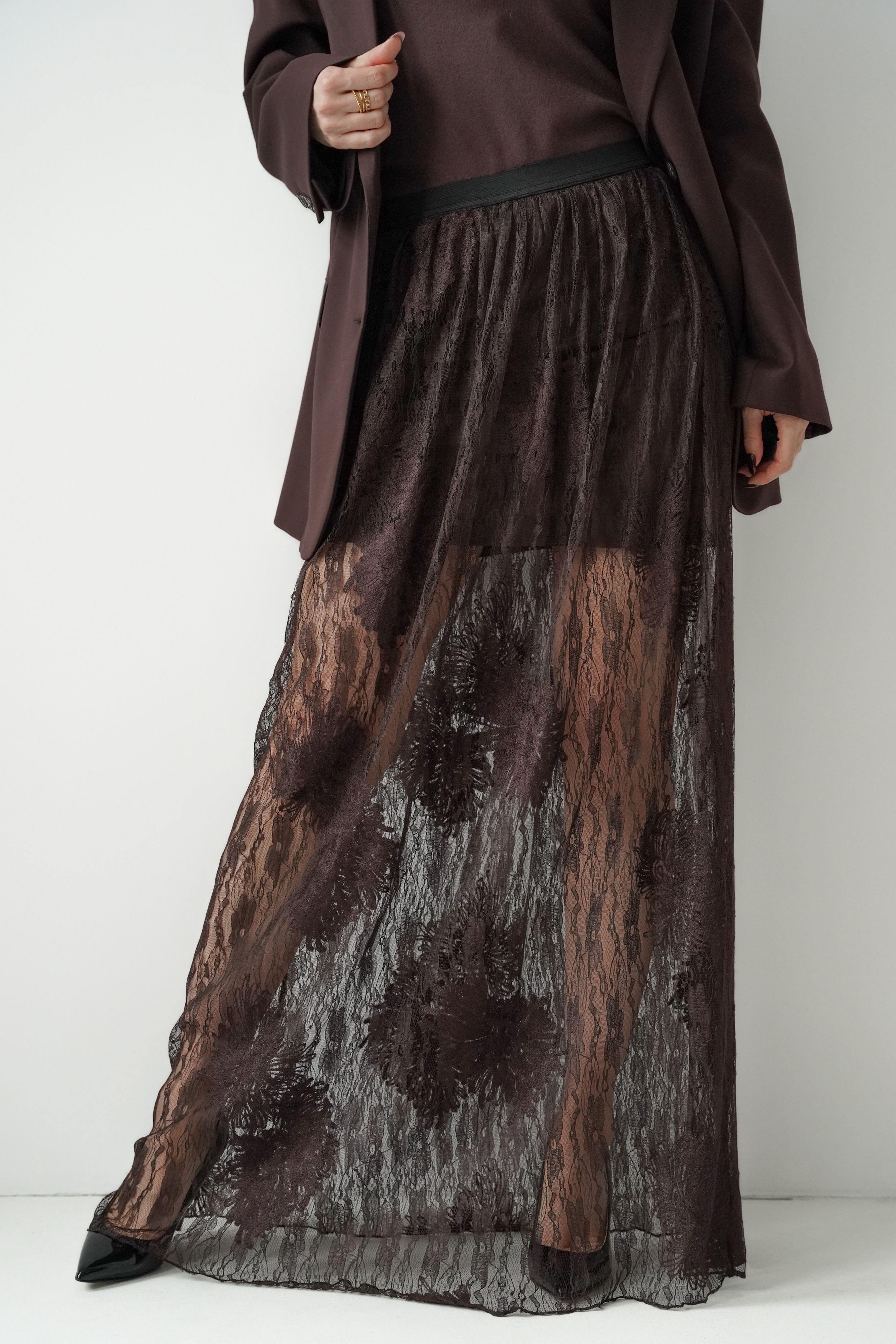 Allure chocolate lace maxi skirt