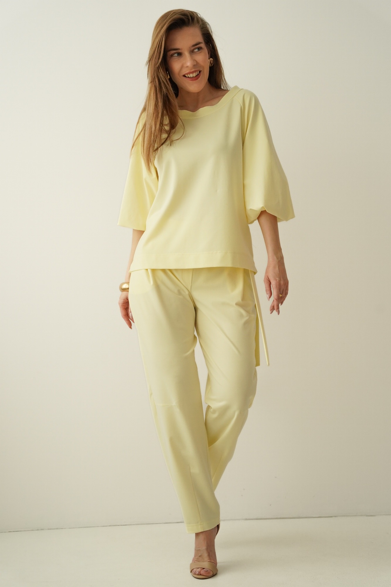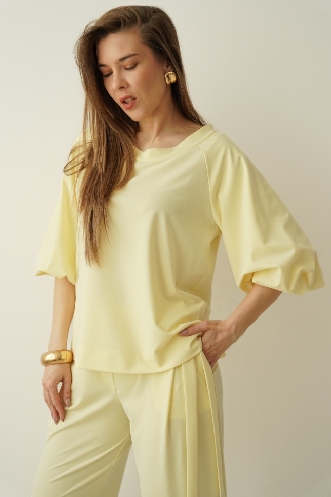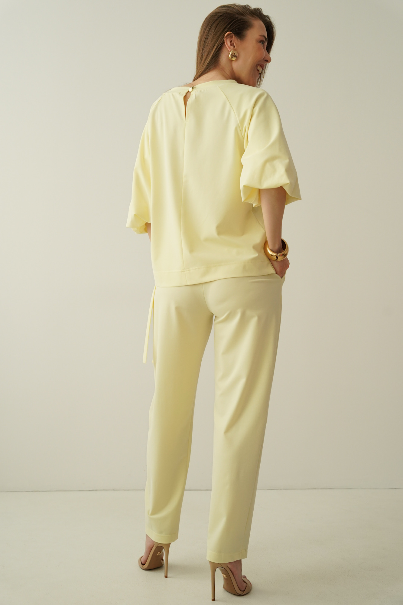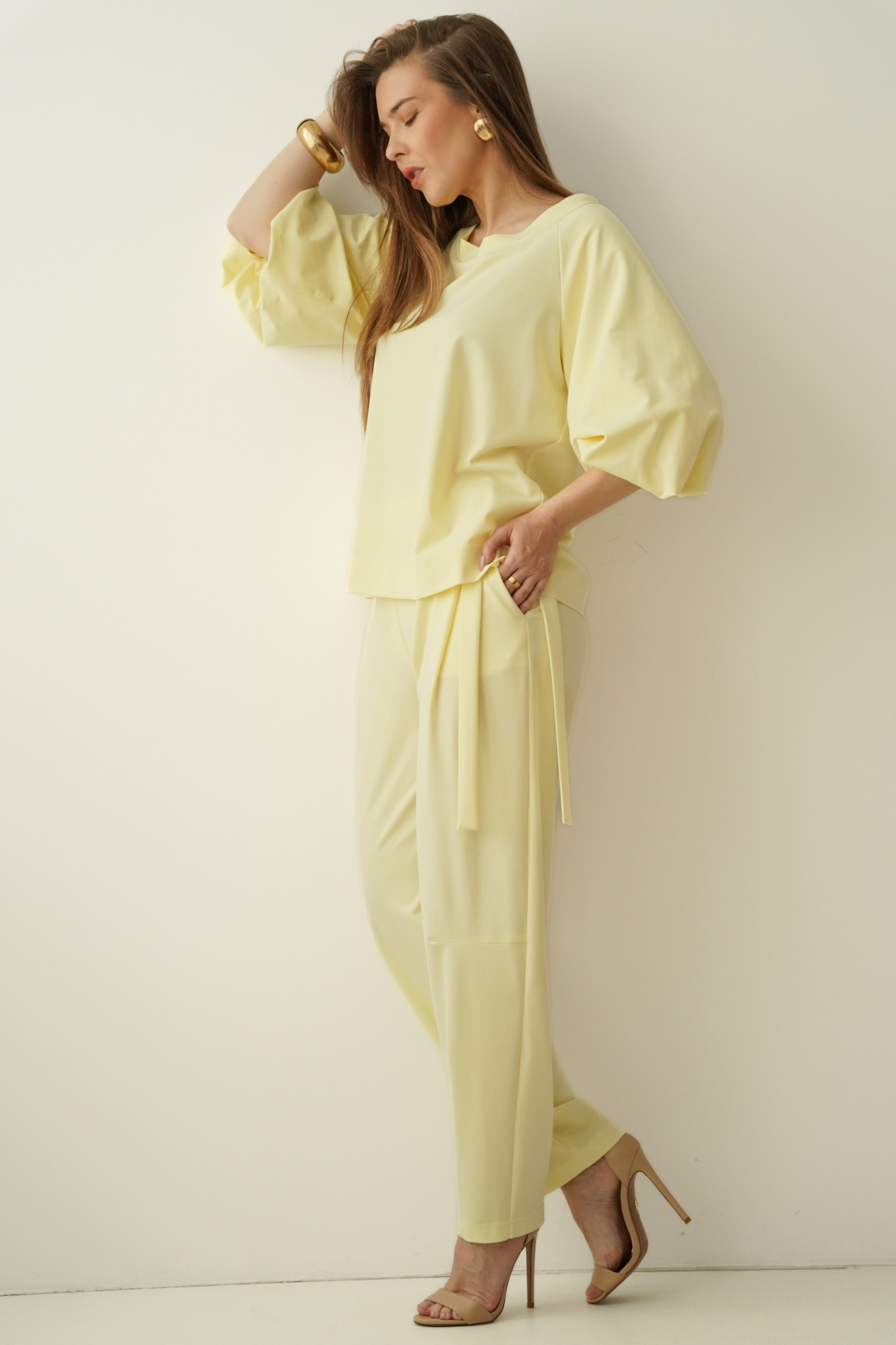 An elegant, casual set with puff sleeves Margo pastel yellow