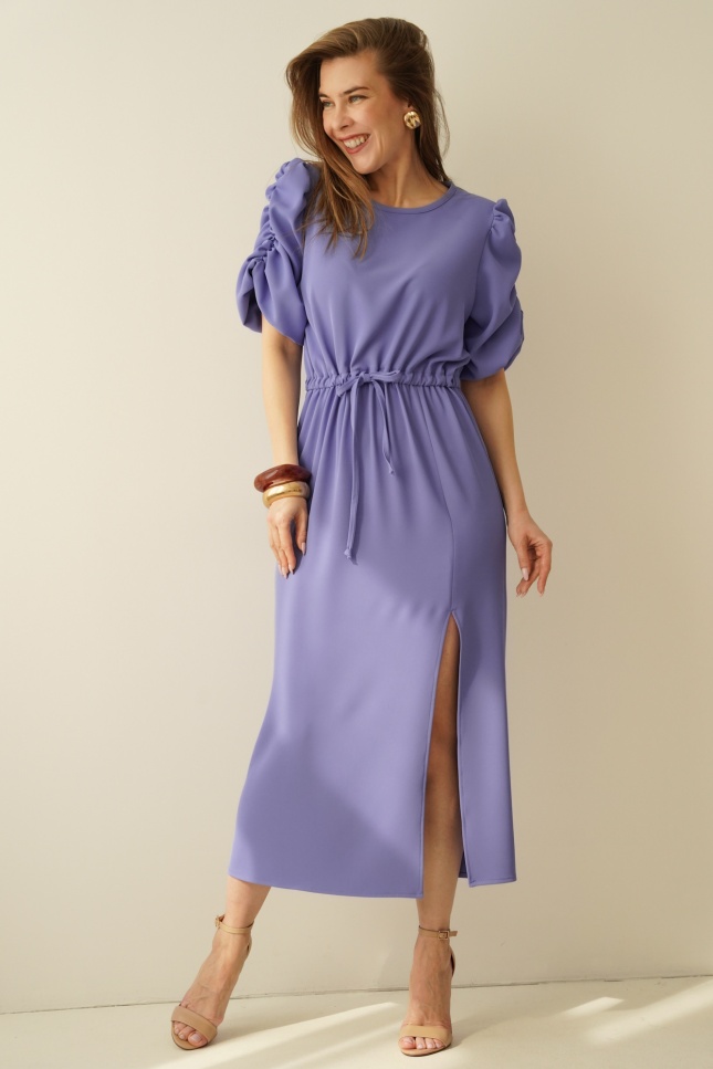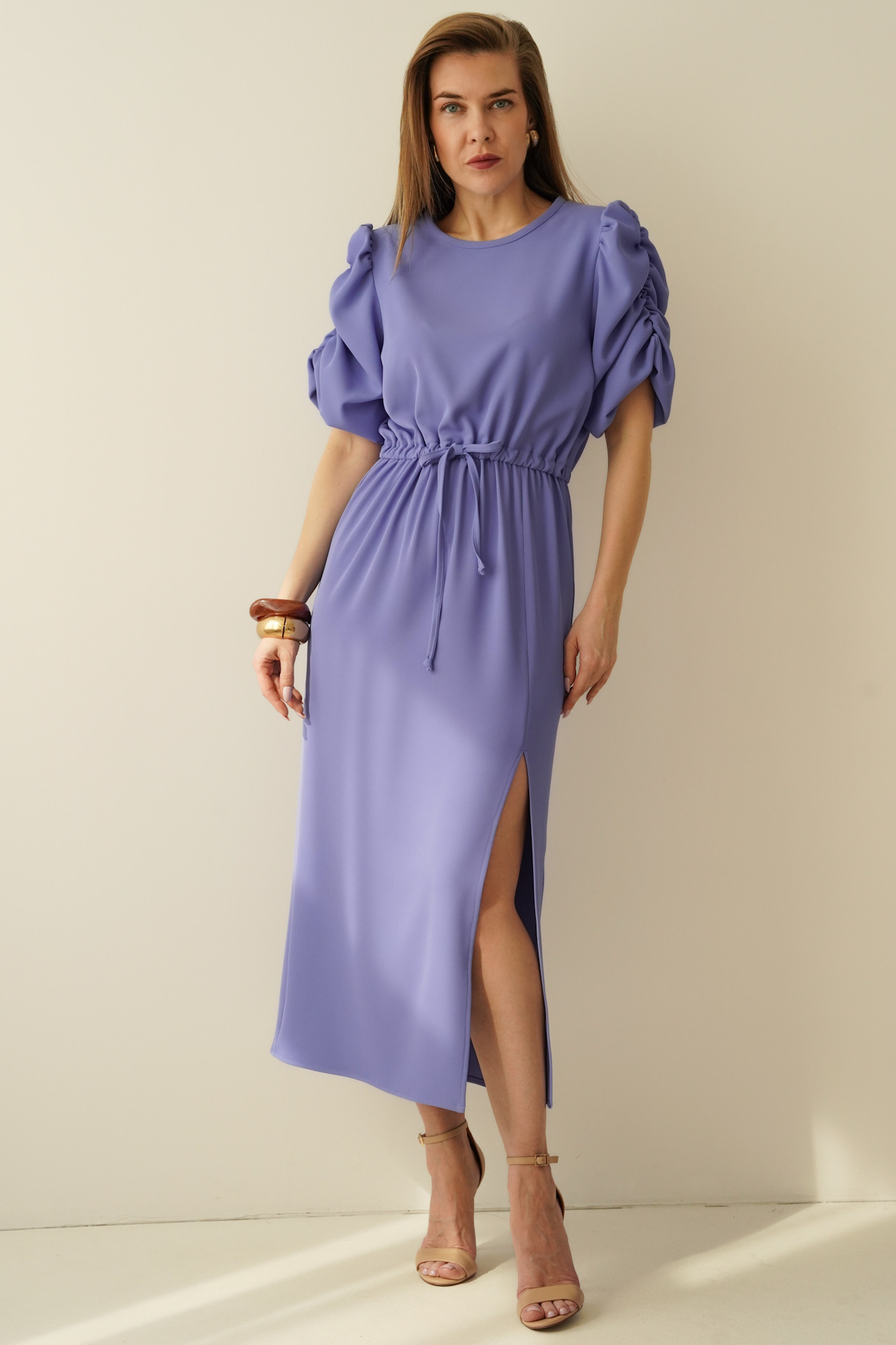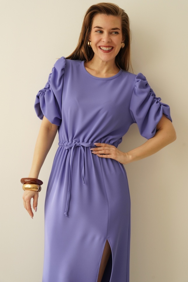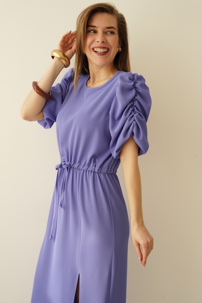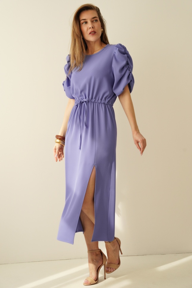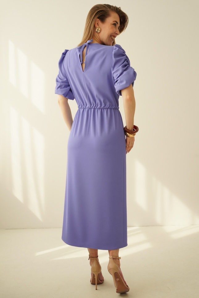 An elegant, feminine dress with puff sleeves by Celine in lavender