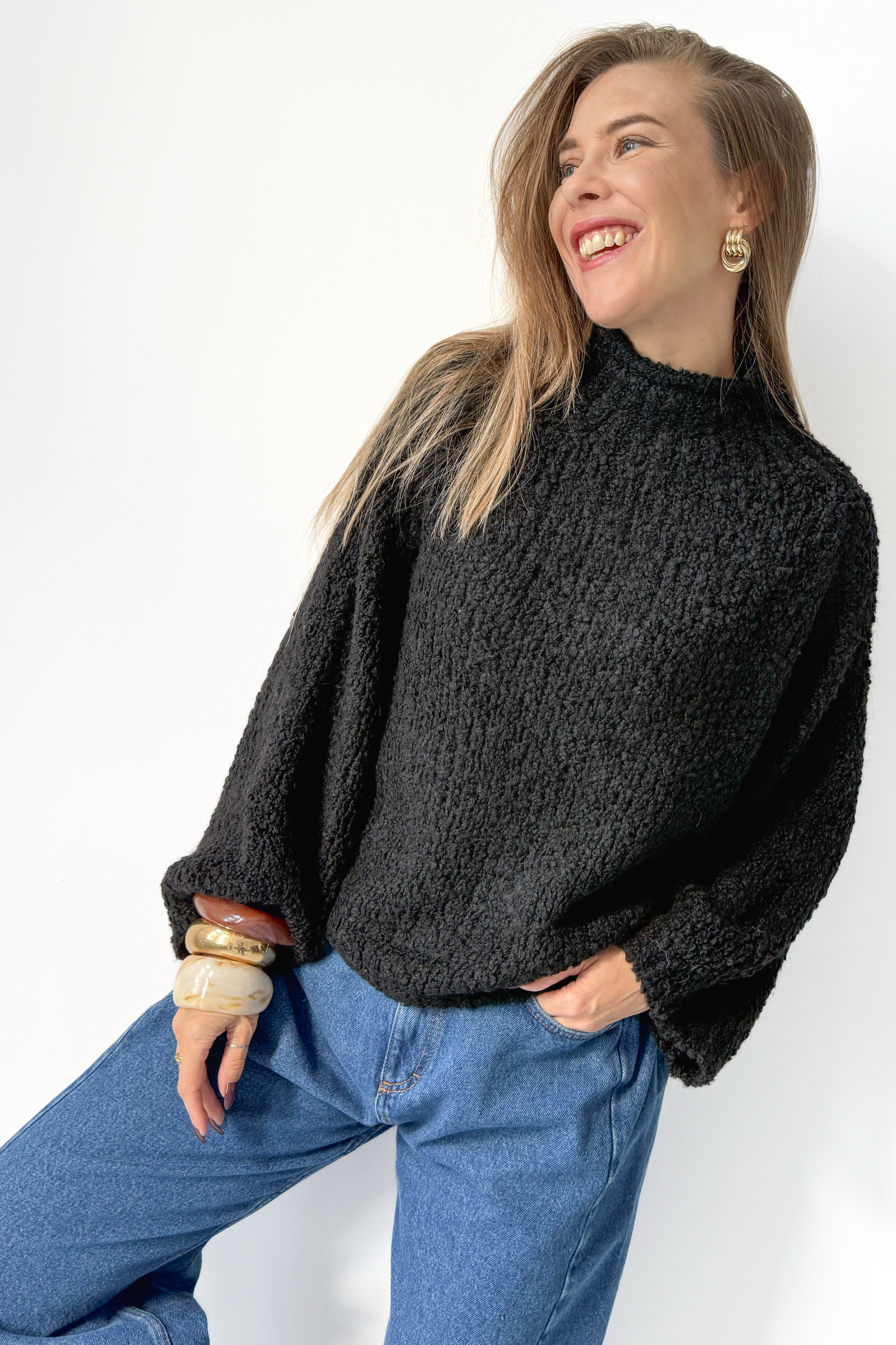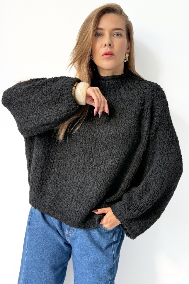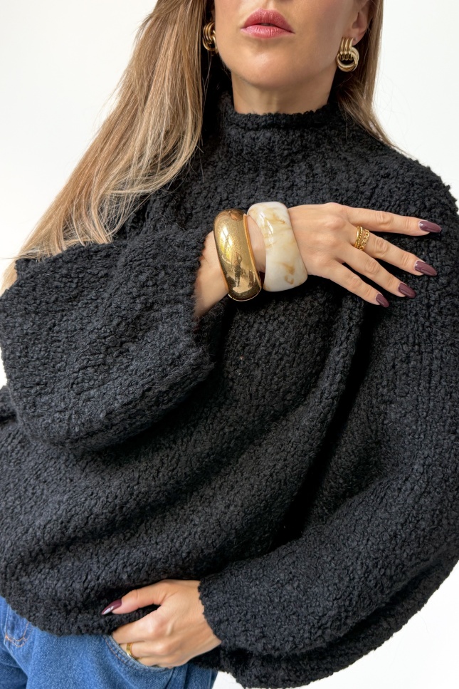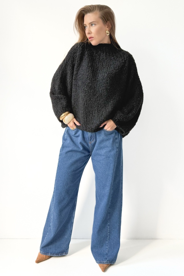 bouclé turtleneck sweater black