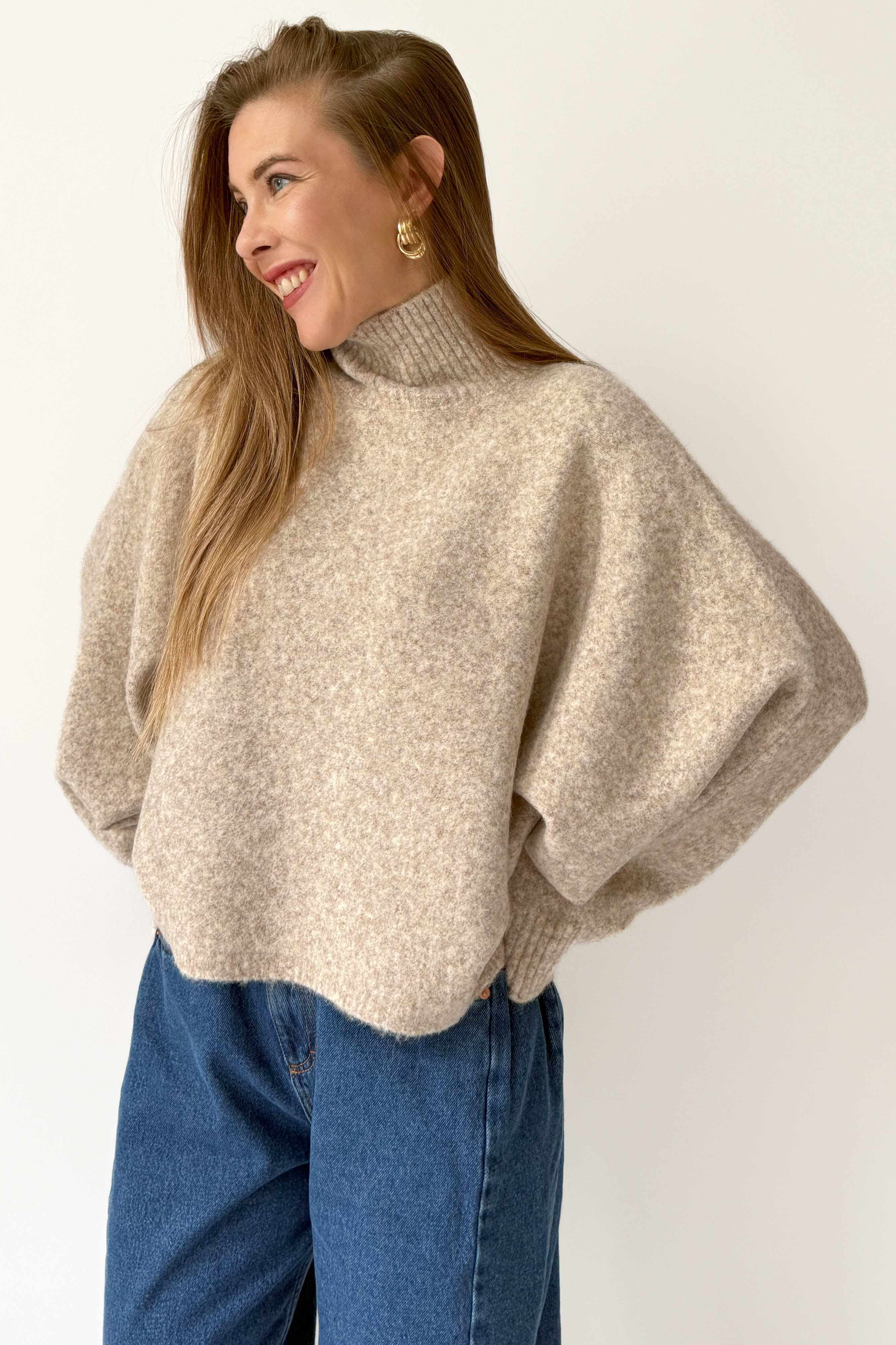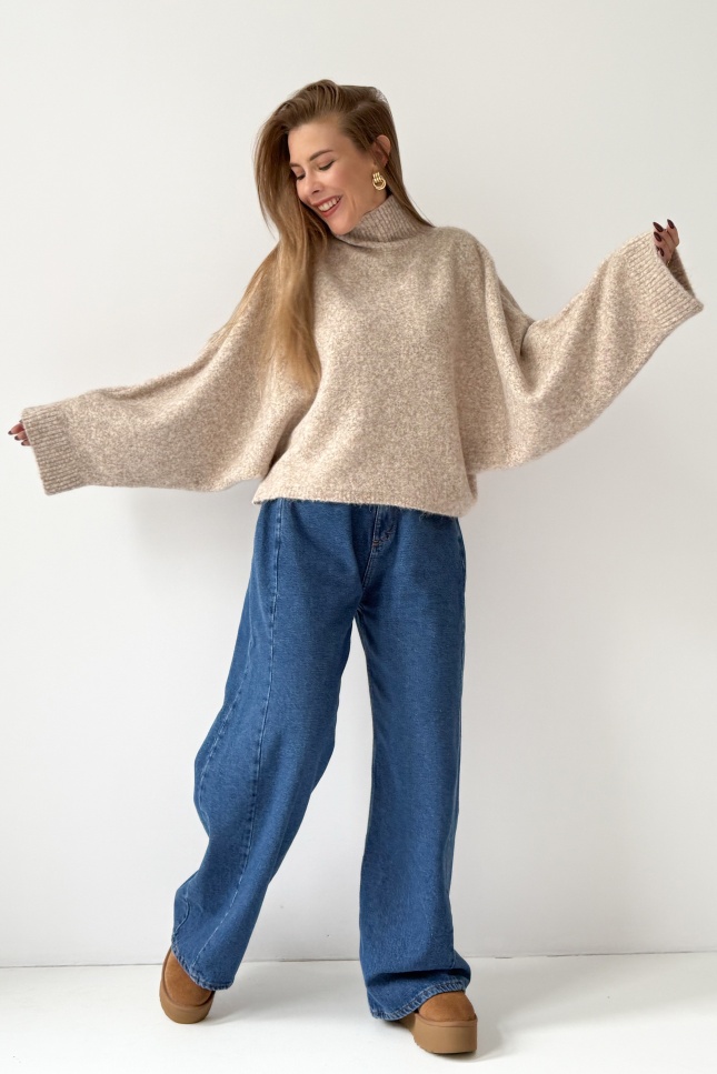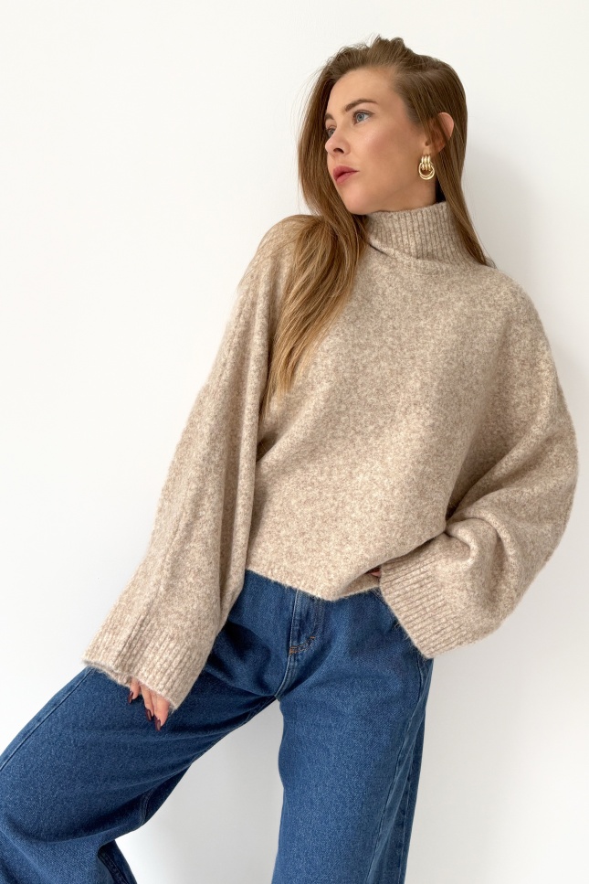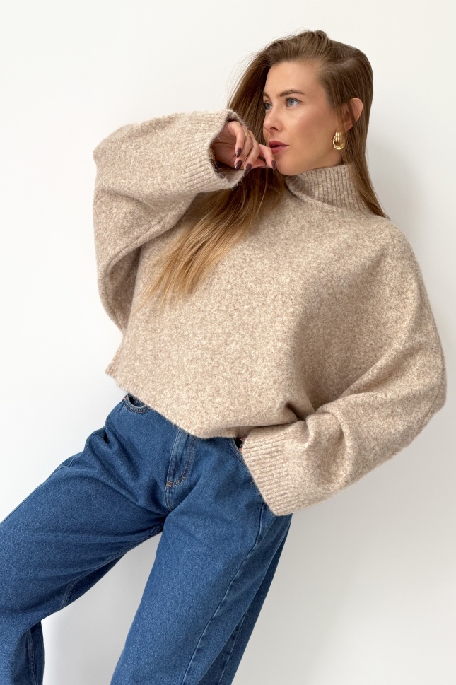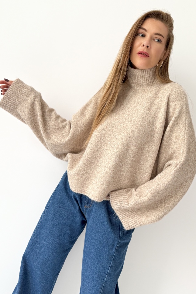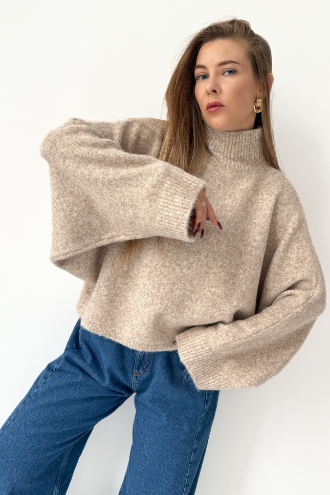 Boxy soft sweater with baby alpaca Aura cappuccino