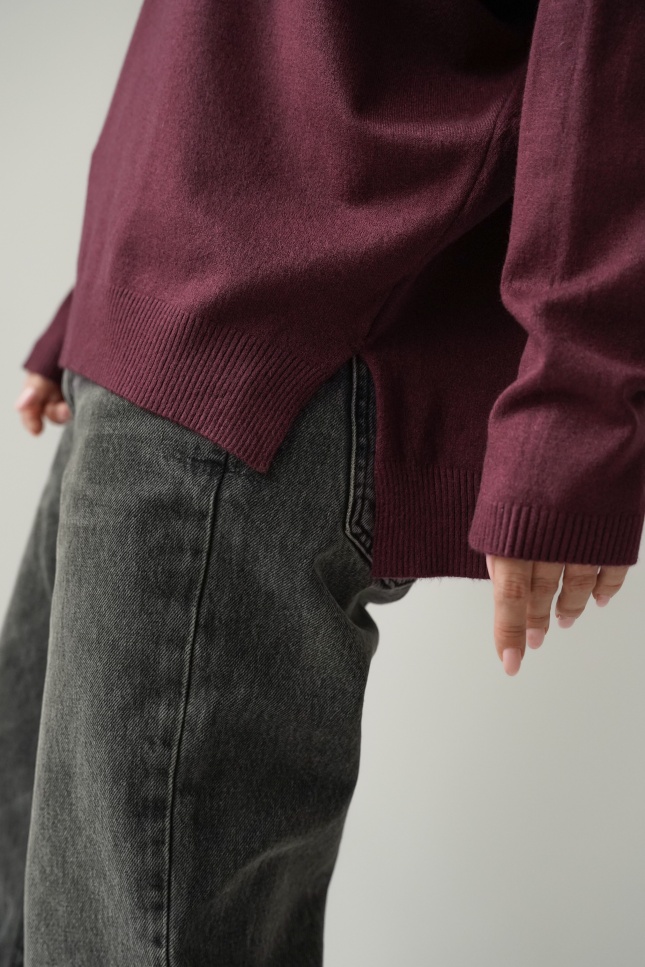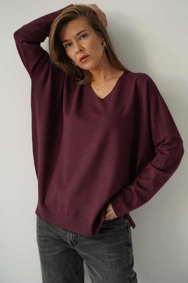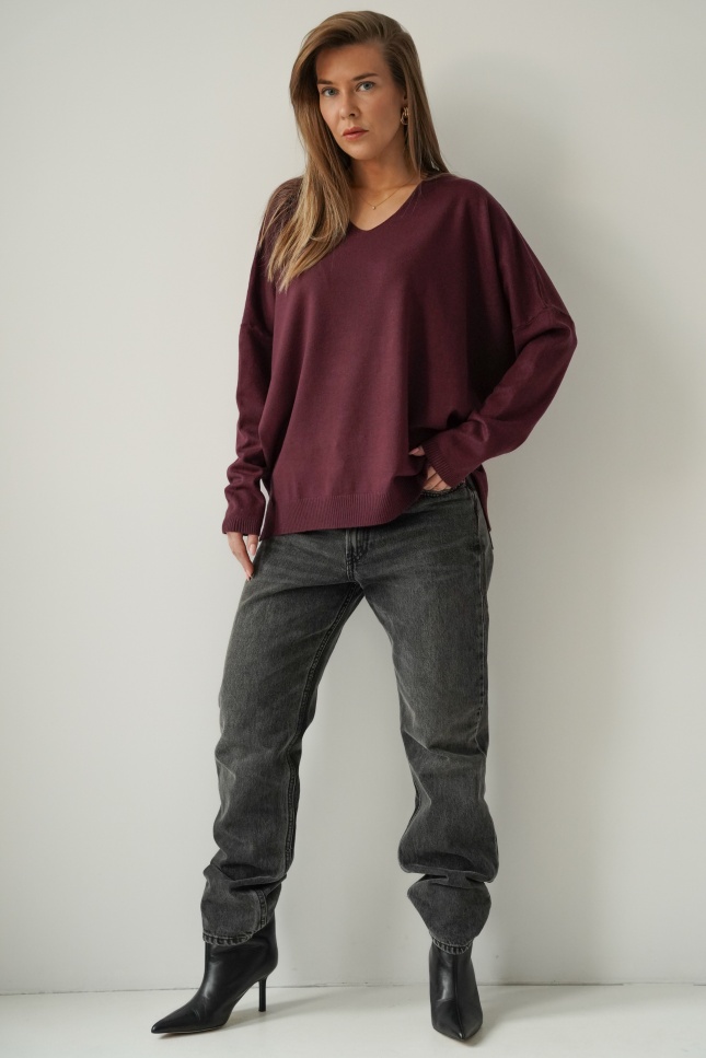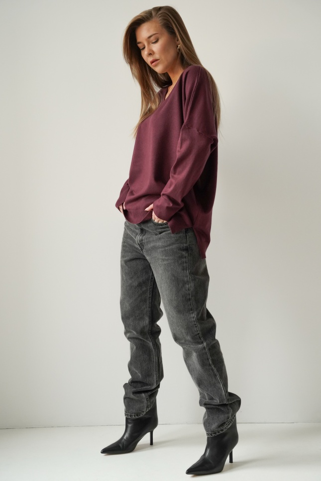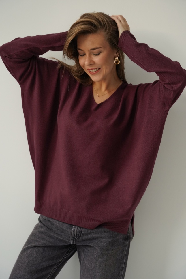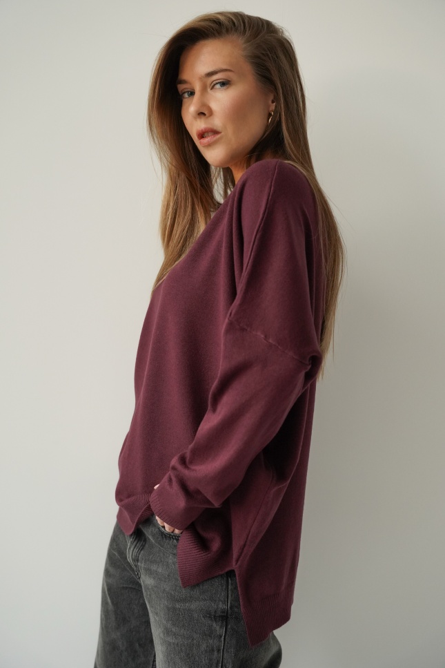 Classic V-neck sweater made of soft, body-friendly knitwear with cashmere. A straight cut with raglan sleeves, subtly broken by a slight asymmetry - in the form of an extended back part and cracks on the sides. PURA is a timeless model that will be a great base for both elegant and casual styles.