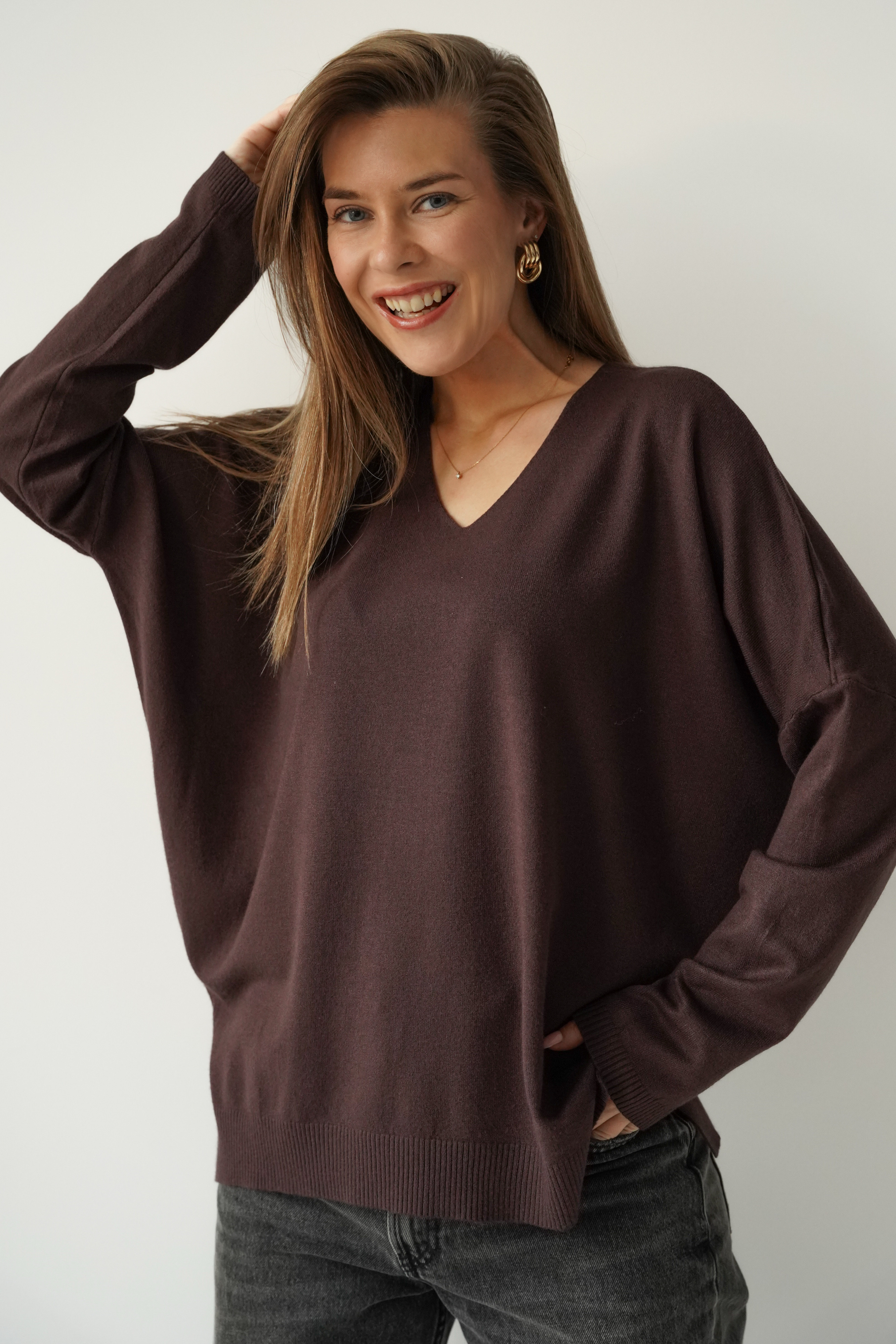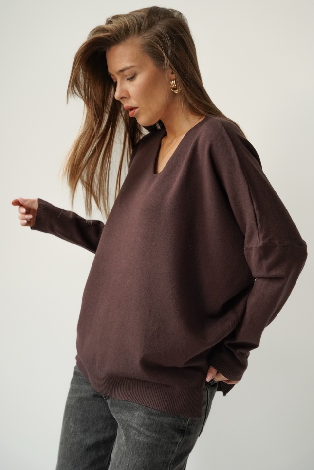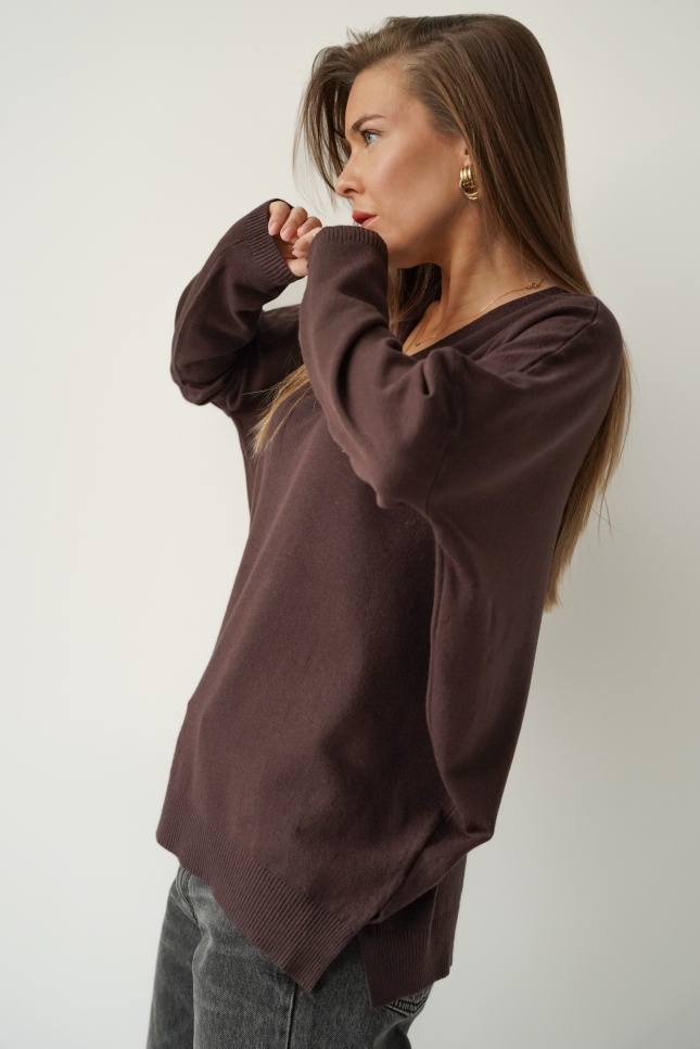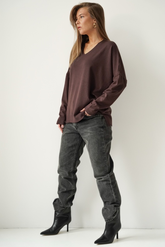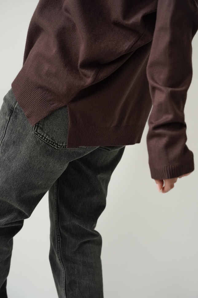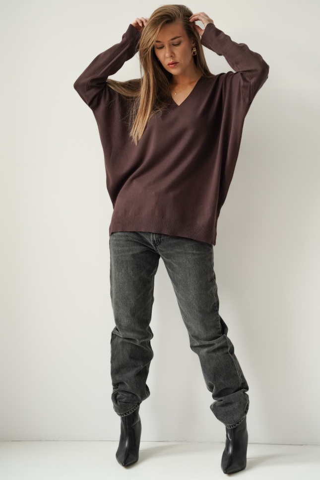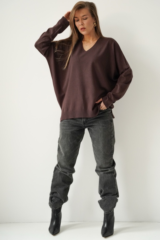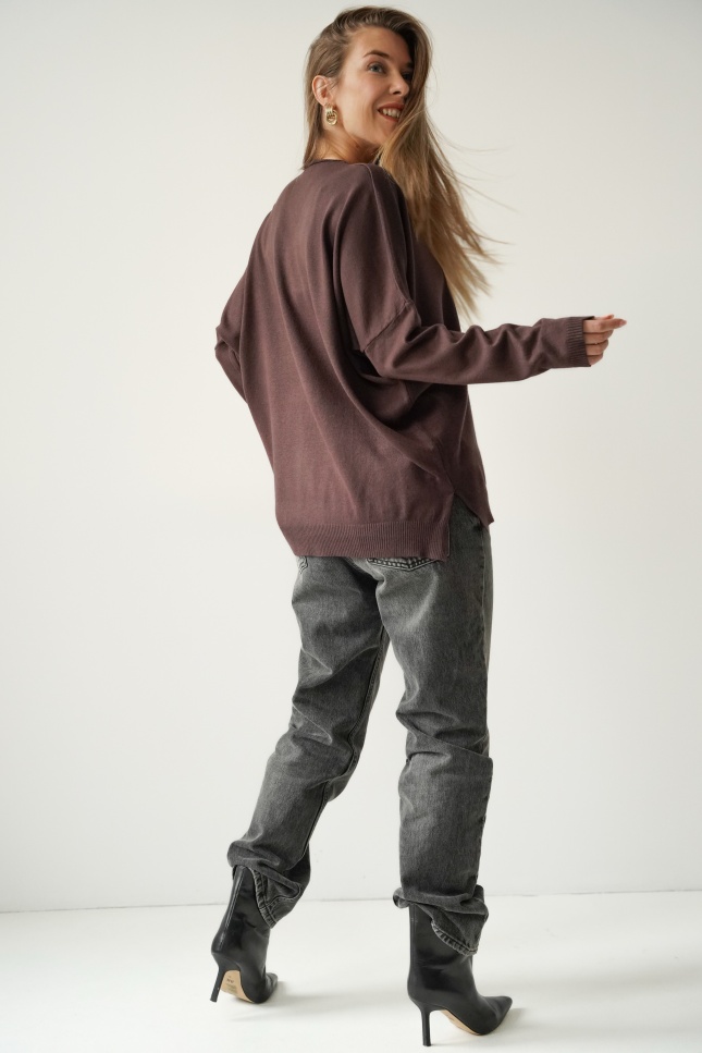 Classic V-neck sweater made of soft, body-friendly knitwear with cashmere. A straight cut with raglan sleeves, subtly broken by a slight asymmetry - in the form of an extended back part and cracks on the sides. PURA is a timeless model that will be a great base for both elegant and casual styles.