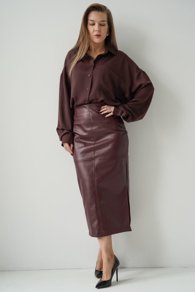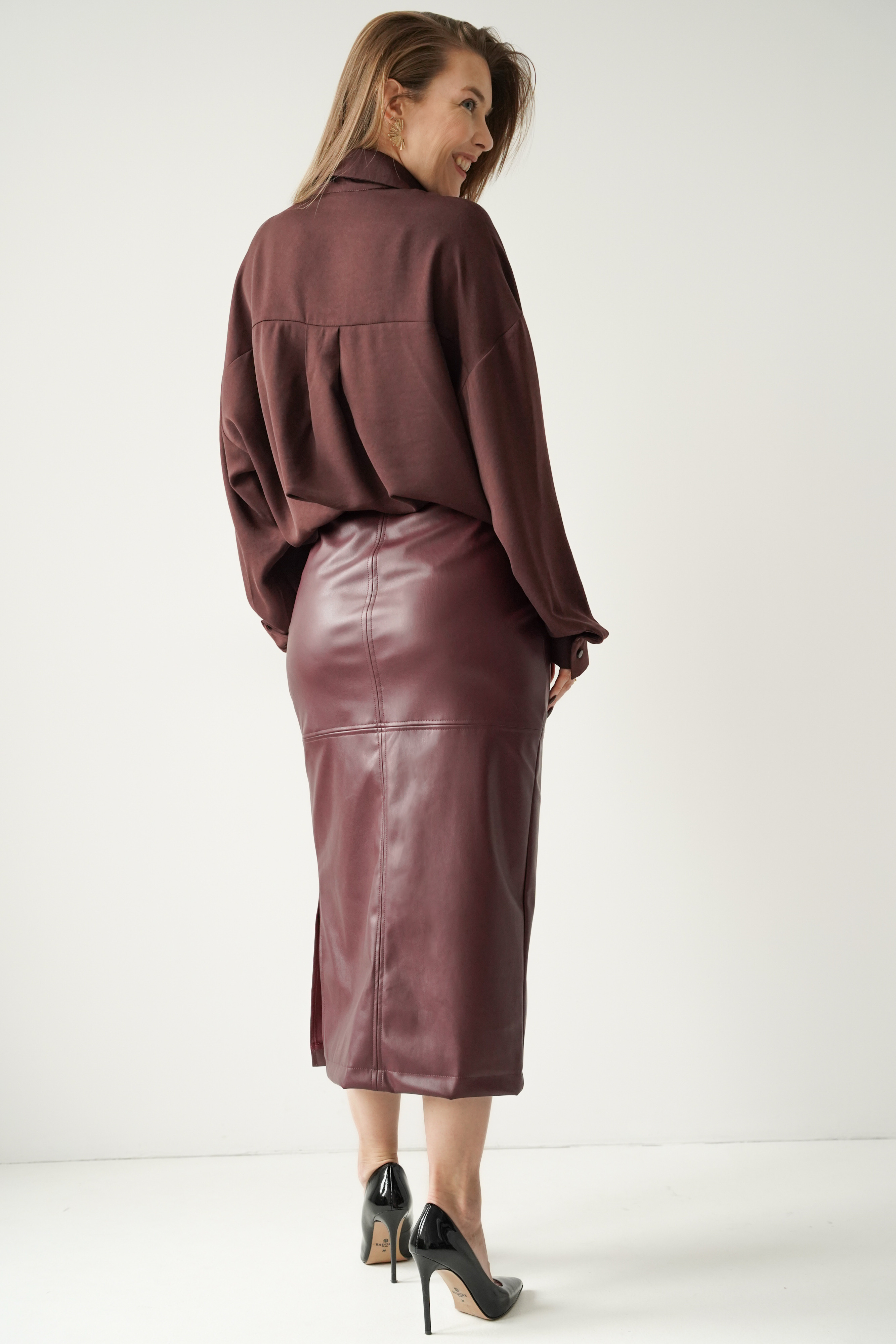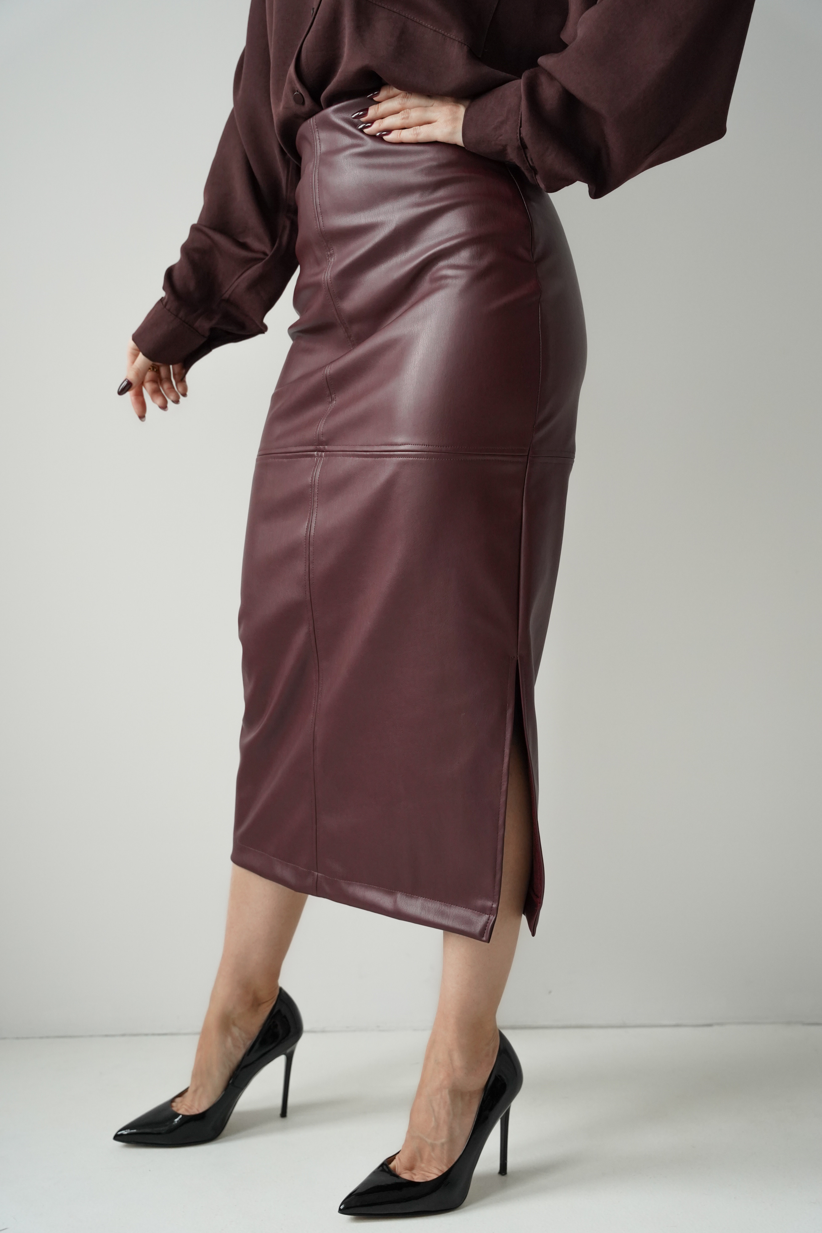 ‘CÉLENE’ – a pencil midi skirt made of soft eco-leather.