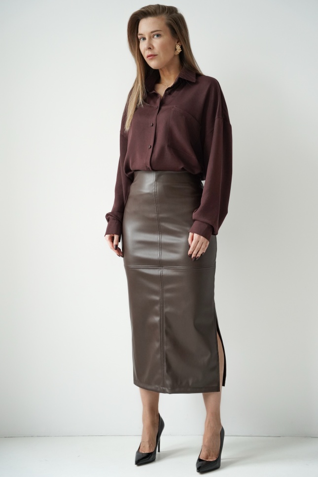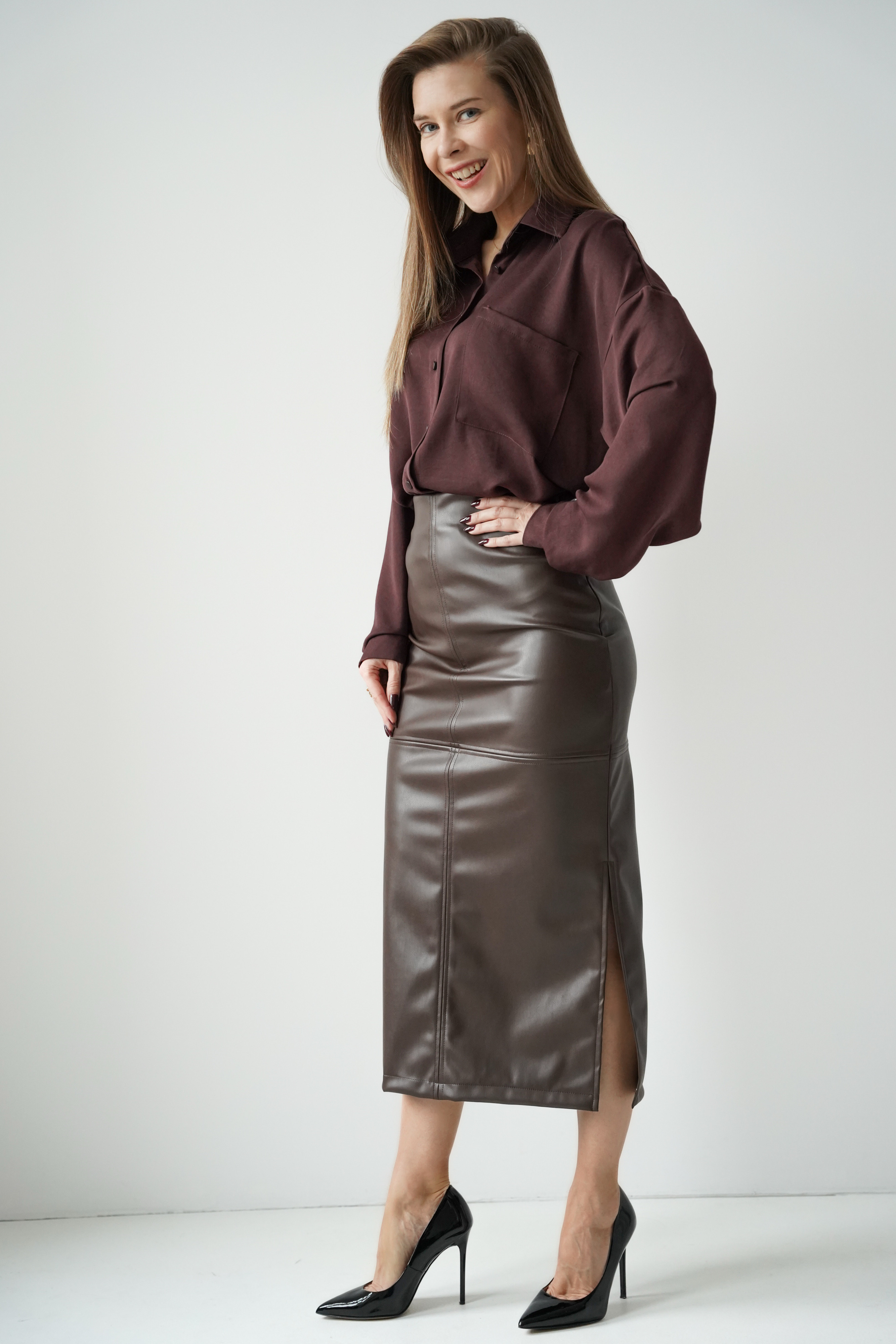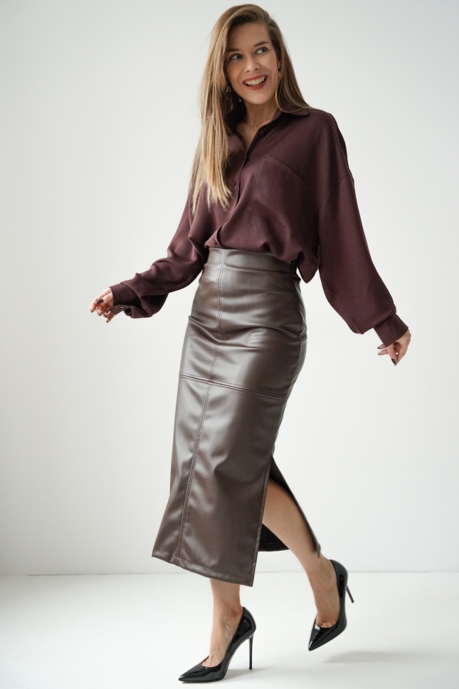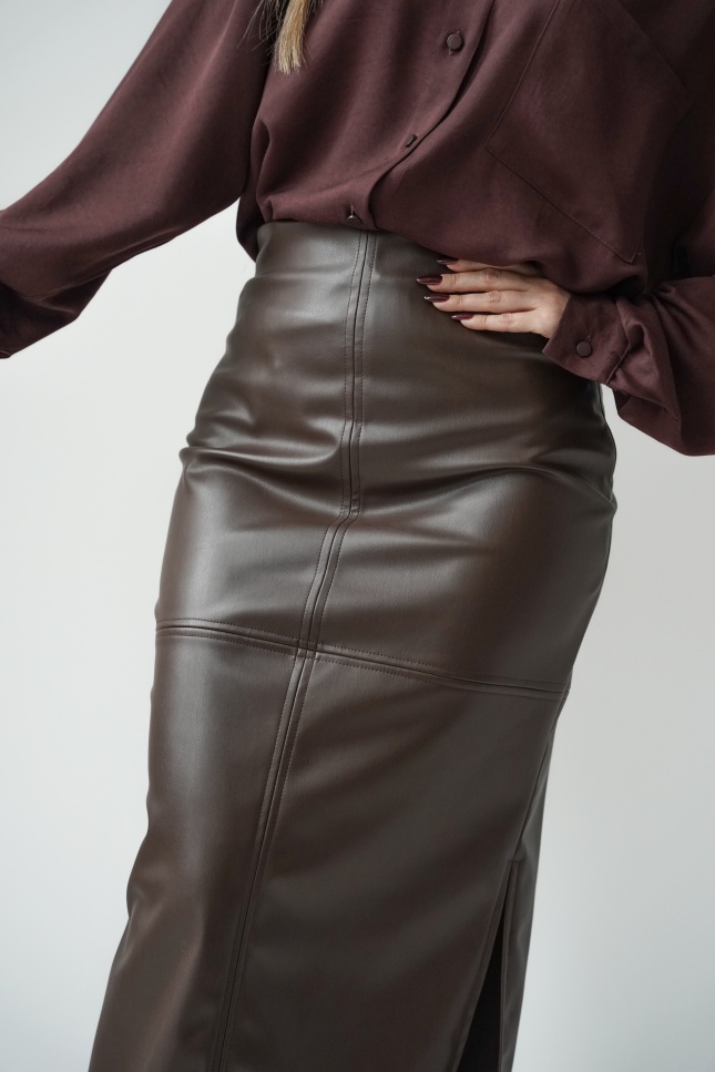 ‘CÉLENE’ – a pencil midi skirt made of soft eco-leather.
