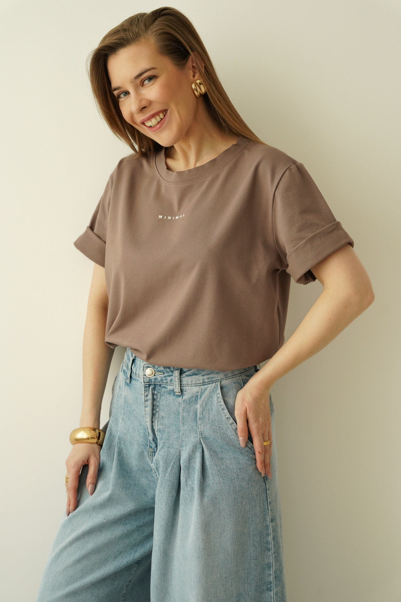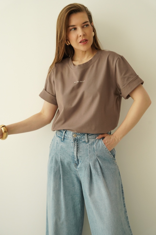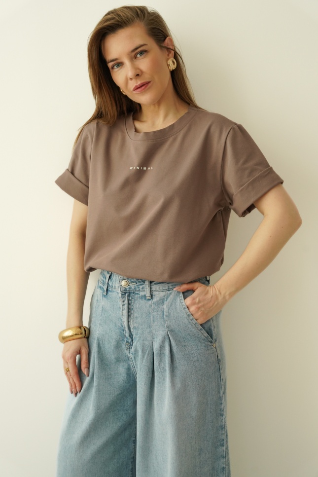 A classic basic t-shirt with a minimalist print is the essence of modern simplicity. Made of soft, delicate cotton with a subtle addition of elastane, it fits perfectly to the silhouette, ensuring comfortable all-day wear.