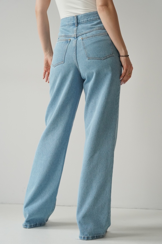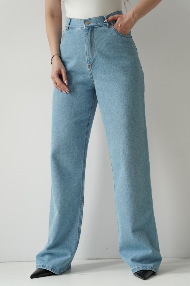 Classic fit wide leg jeans with a high waist in light denim blue