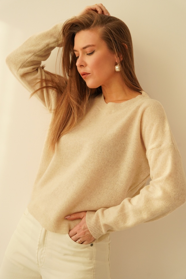 SOIE is a classic sweater with a looser fit, made of 100% extra fine merino wool. Lightweight, soft and breathable – perfect for the spring–summer season. Pastel colours give it a feminine, subtle character and make it a timeless element of everyday wardrobe.