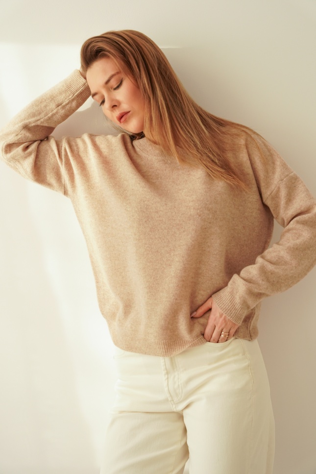SOIE is a classic sweater with a looser fit, made of 100% extra fine merino wool. Lightweight, soft and breathable – perfect for the spring–summer season. Pastel colours give it a feminine, subtle character and make it a timeless element of everyday wardrobe.