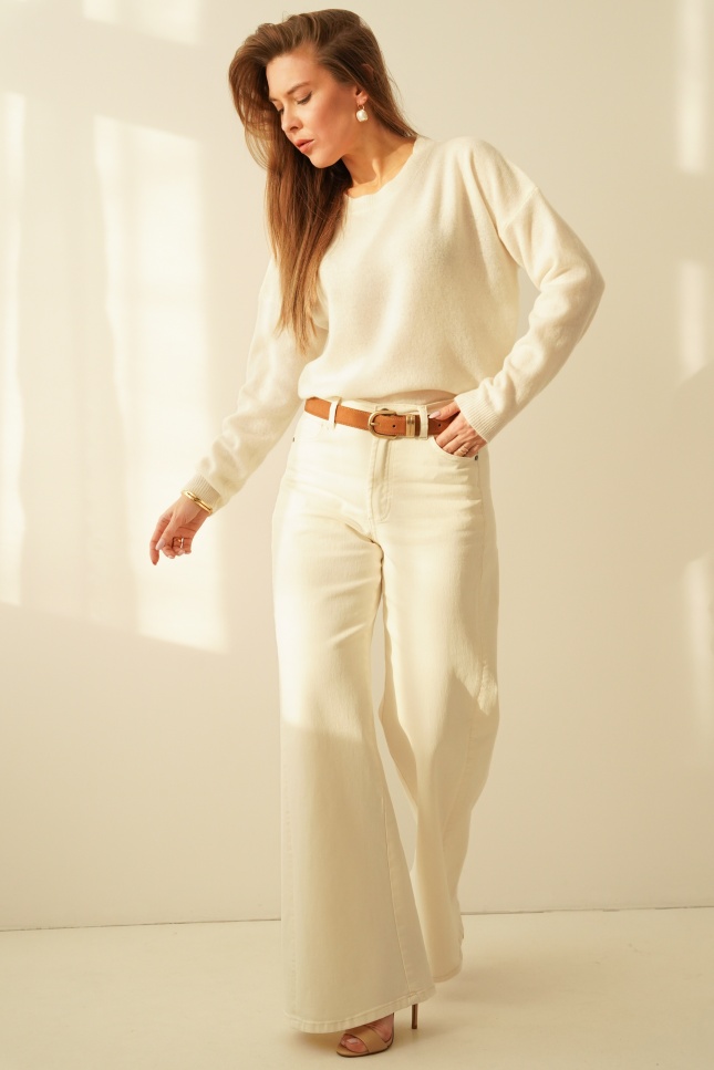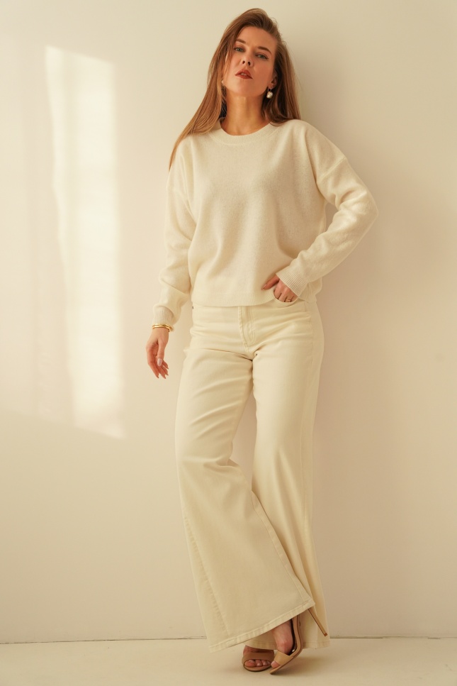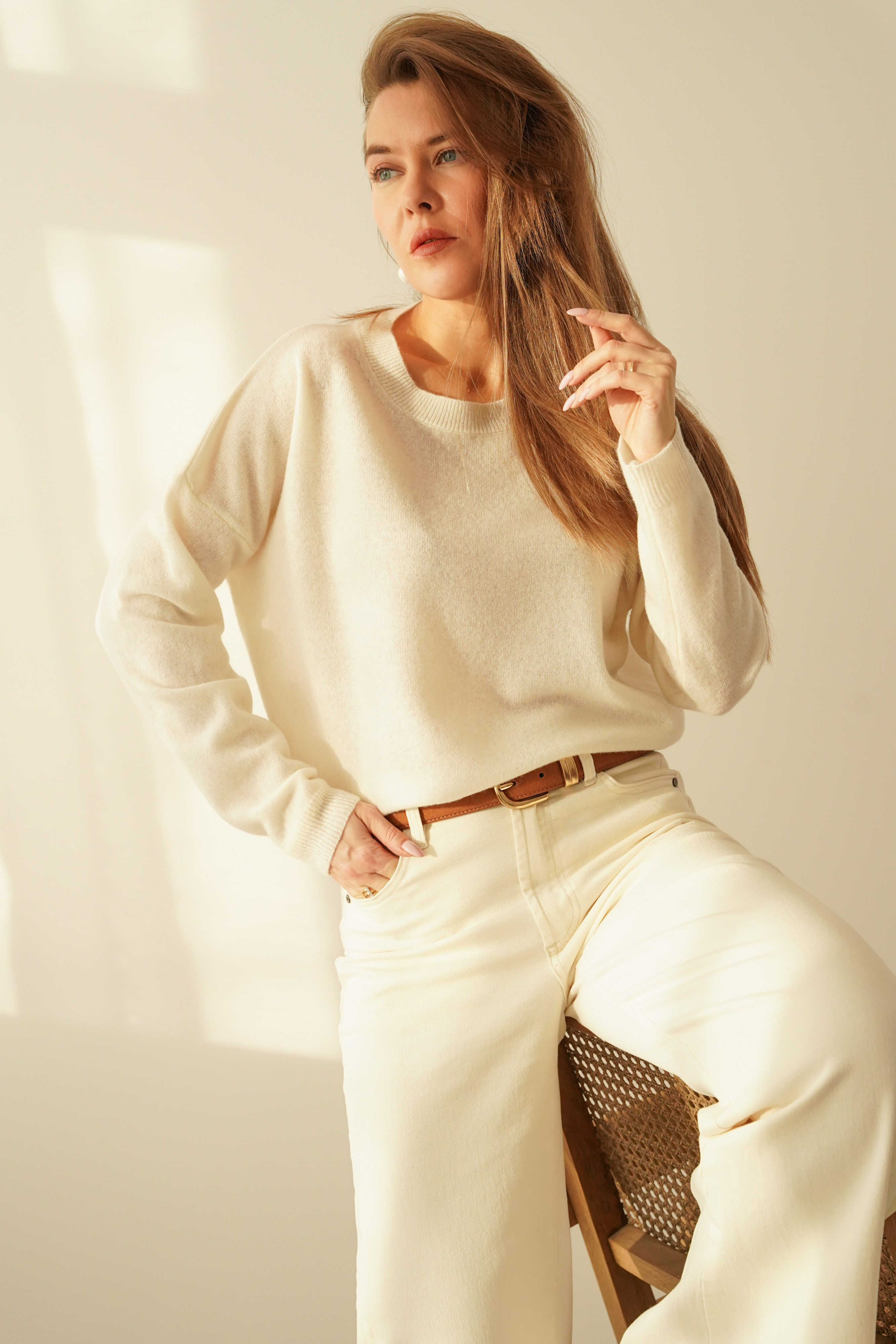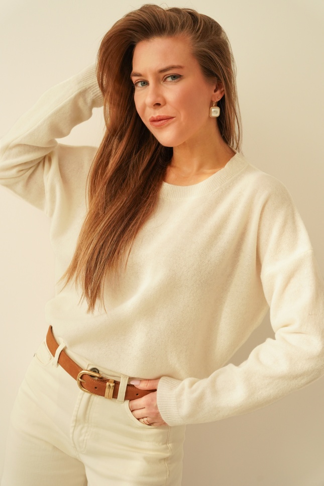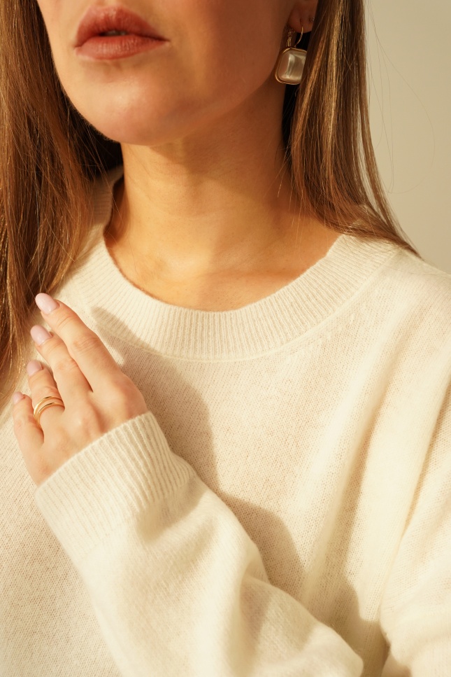 SOIE is a classic sweater with a looser fit, made of 100% extra fine merino wool. Lightweight, soft and breathable – perfect for the spring–summer season. Pastel colours give it a feminine, subtle character and make it a timeless element of everyday wardrobe.
