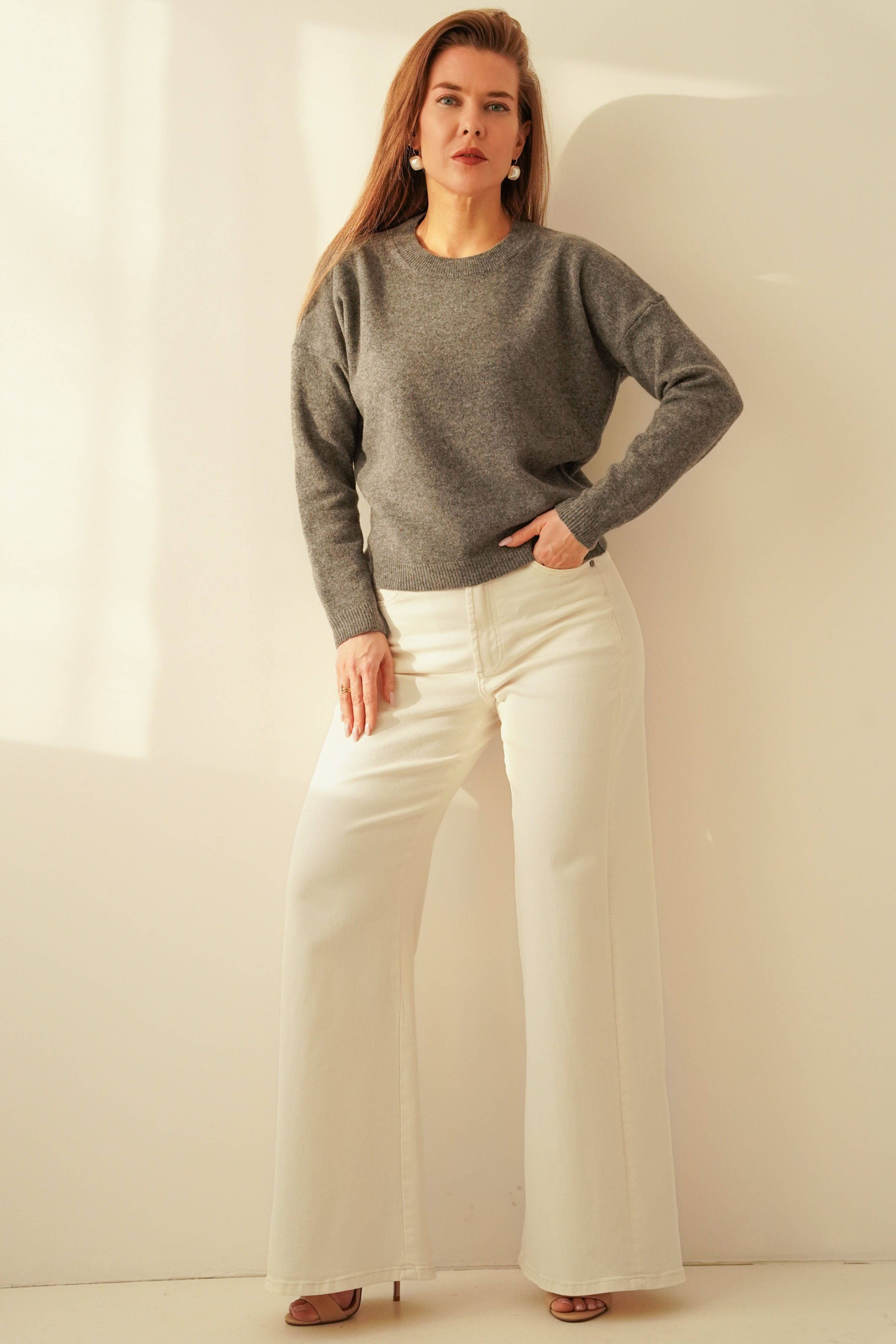 SOIE is a classic sweater with a looser fit, made of 100% extra fine merino wool. Lightweight, soft and breathable – perfect for the spring–summer season. Pastel colours give it a feminine, subtle character and make it a timeless element of everyday wardrobe.