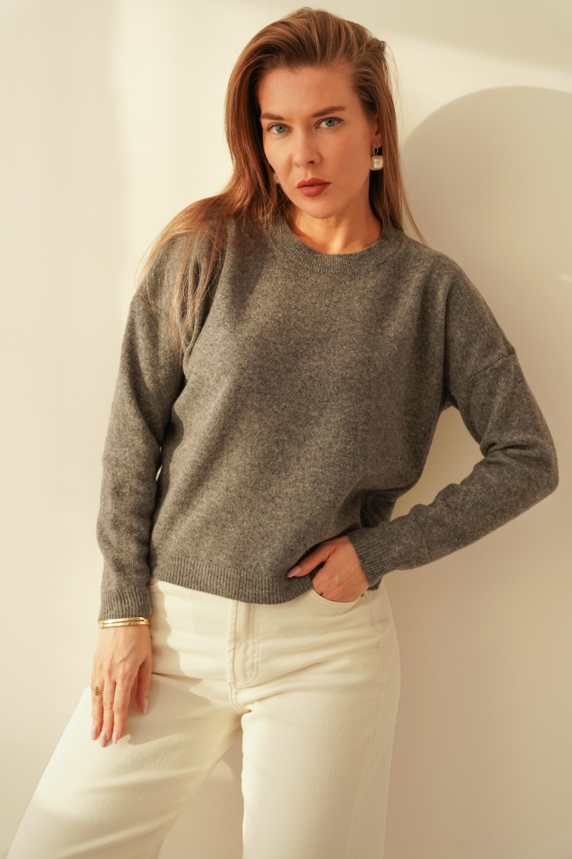 Classic jumper, 100% merino wool, Soie dark grey