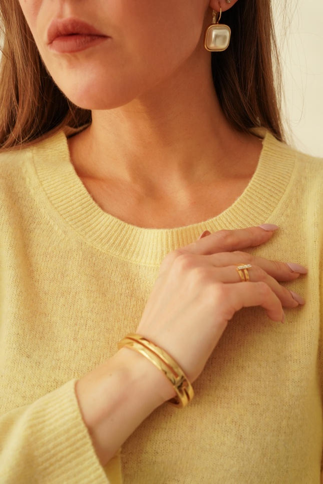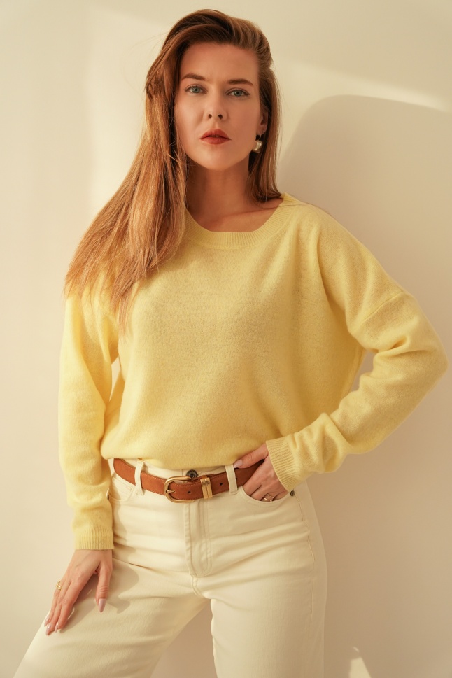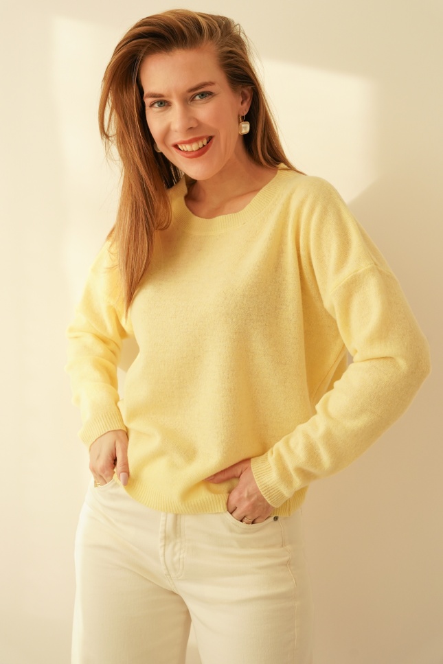 Classic jumper, 100% merino wool, Soie pastel yellow