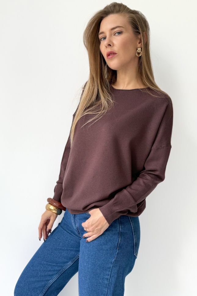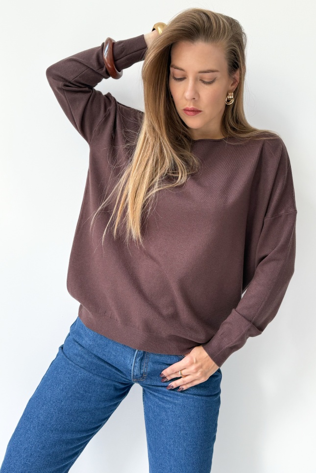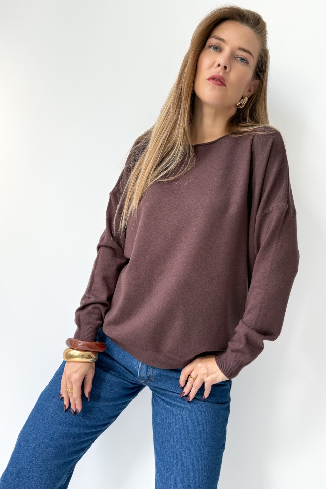 Classic loose jumper with cashmere Ette chocolate