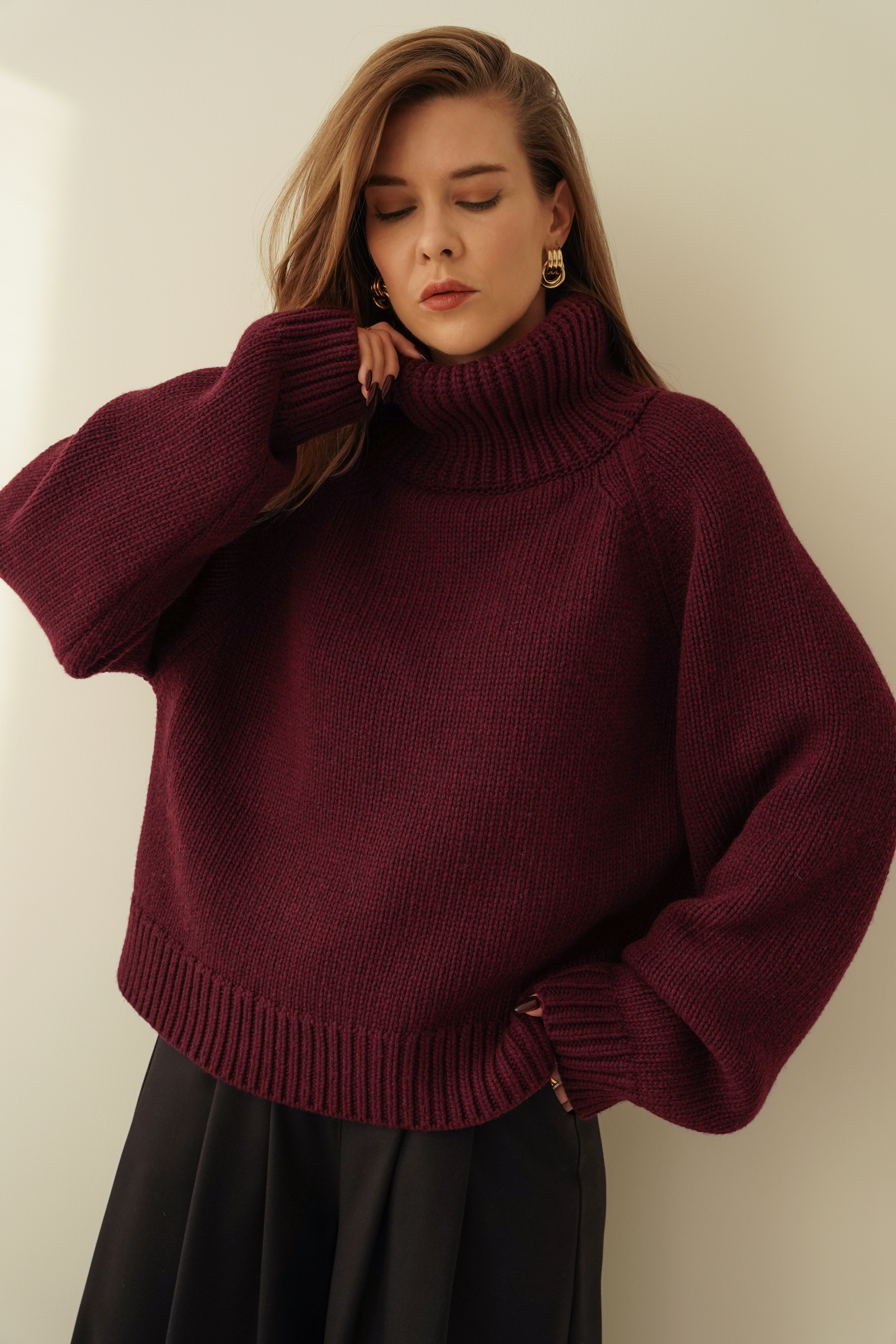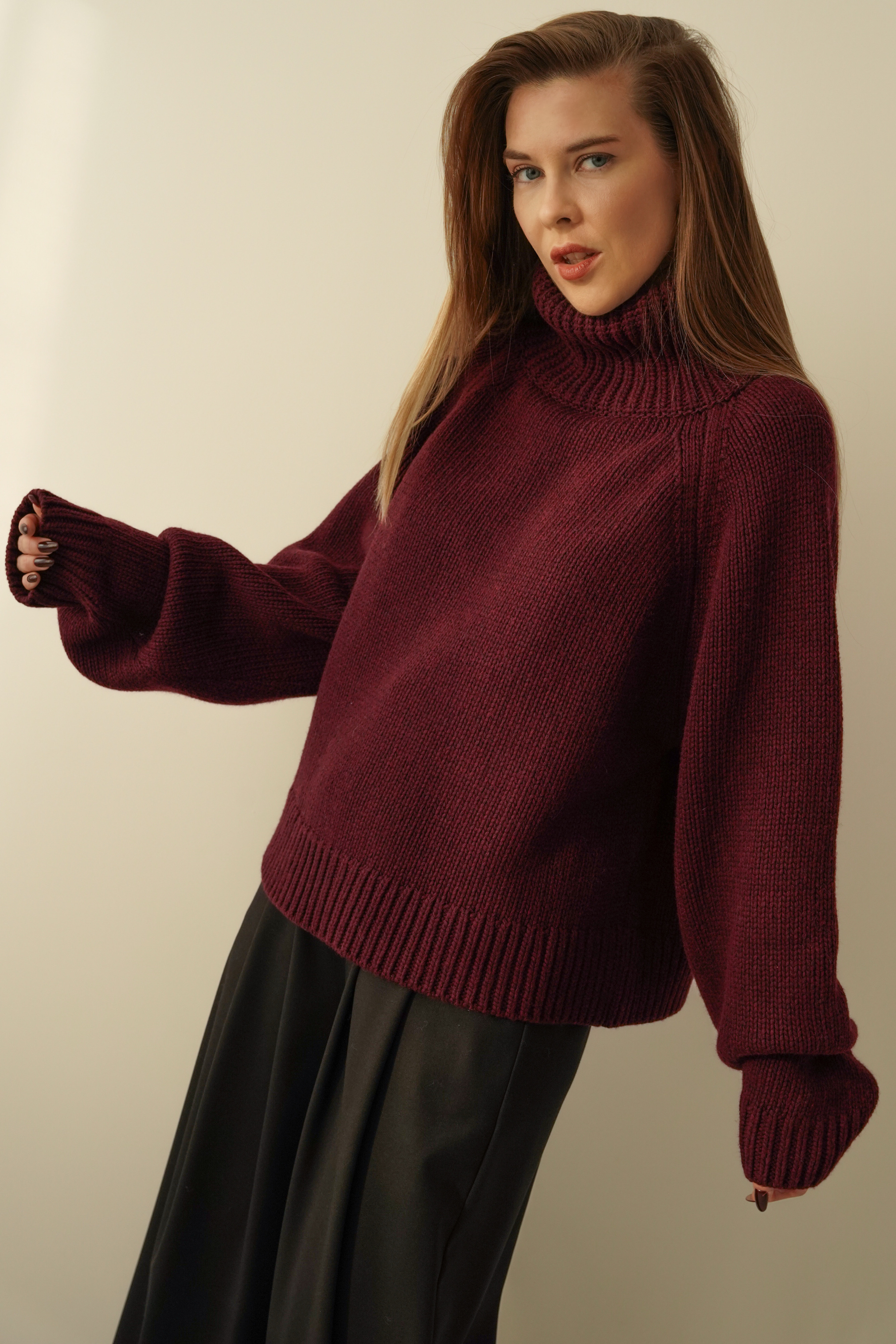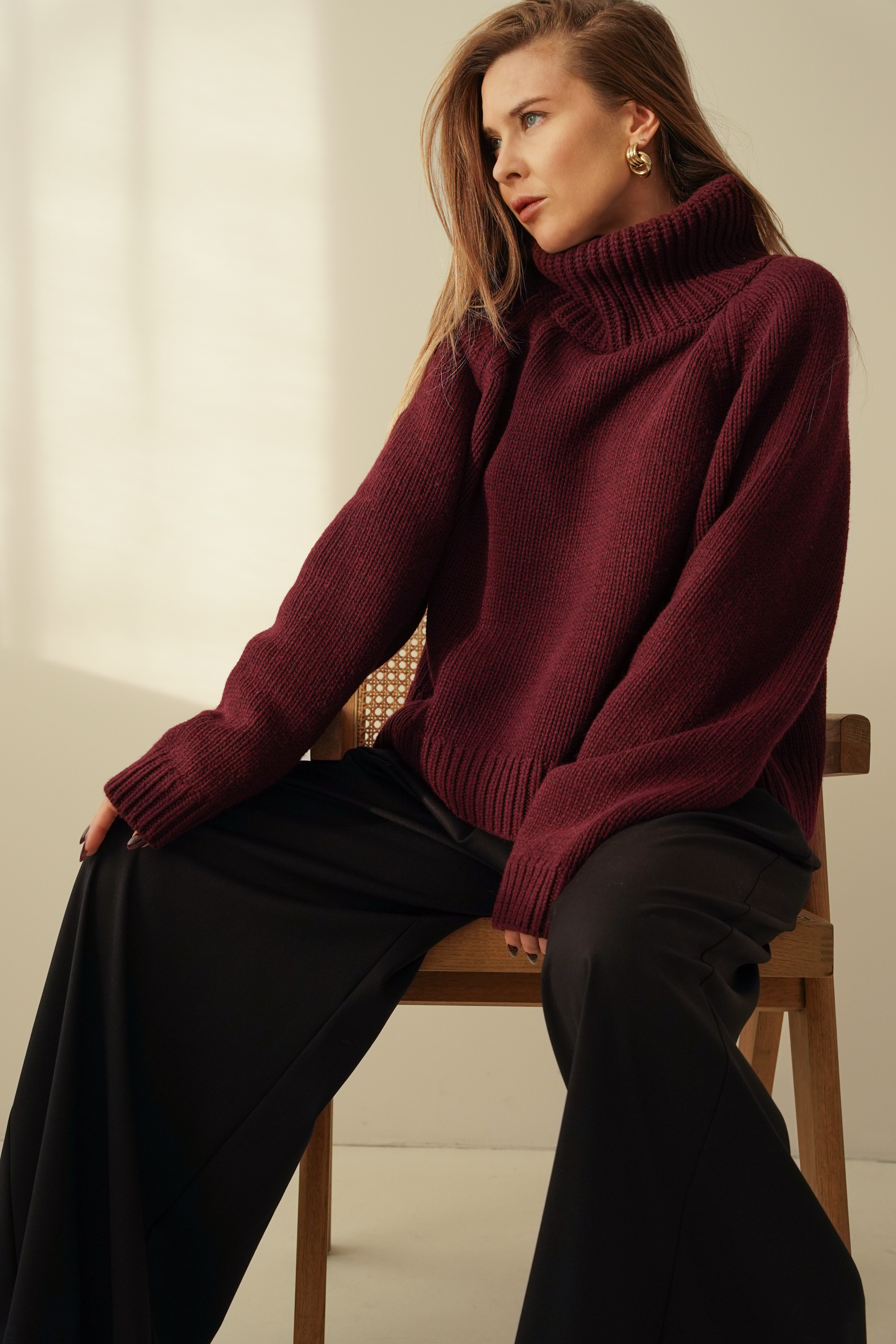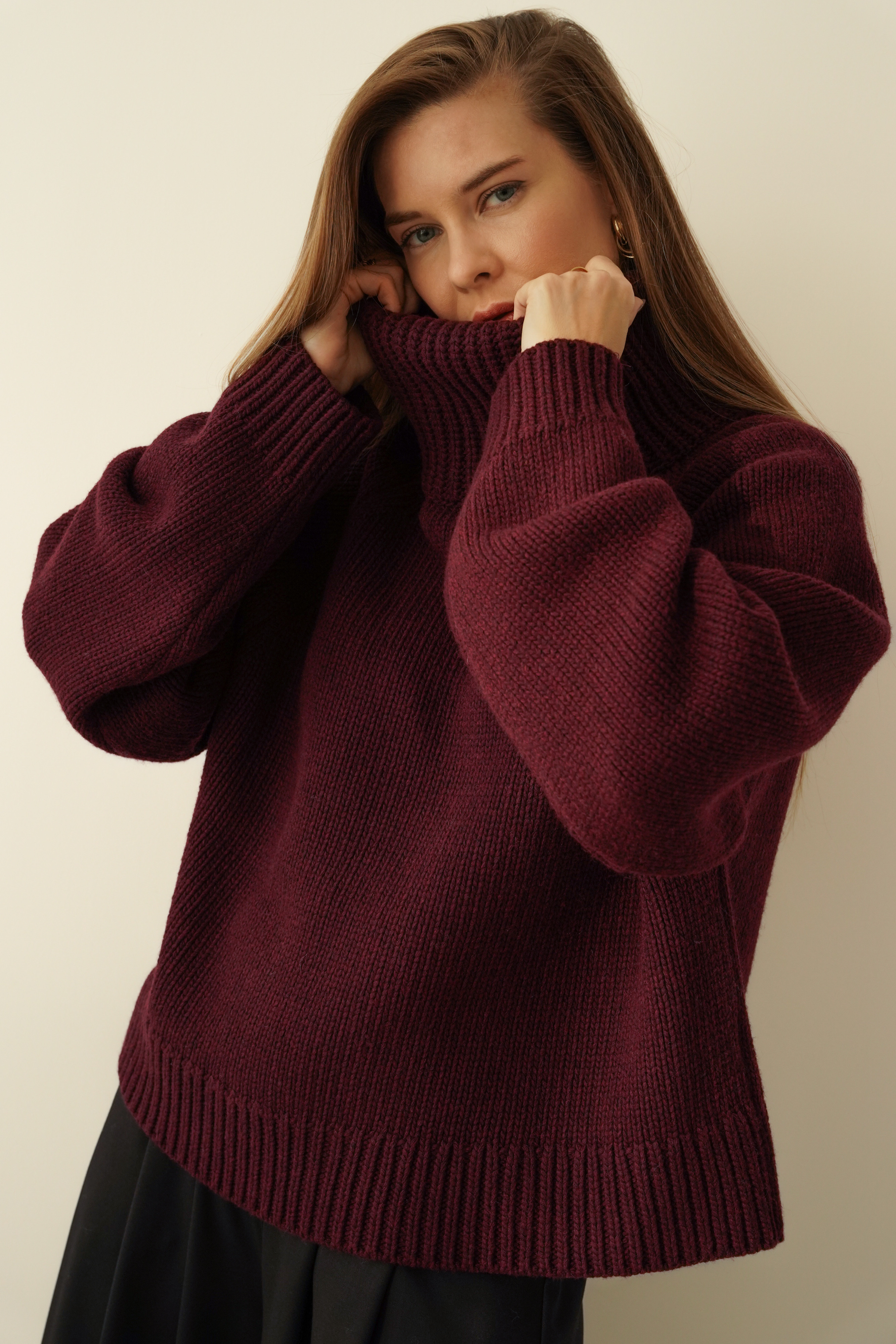 Classic loose turtleneck 100% merino wool Soften burgundy