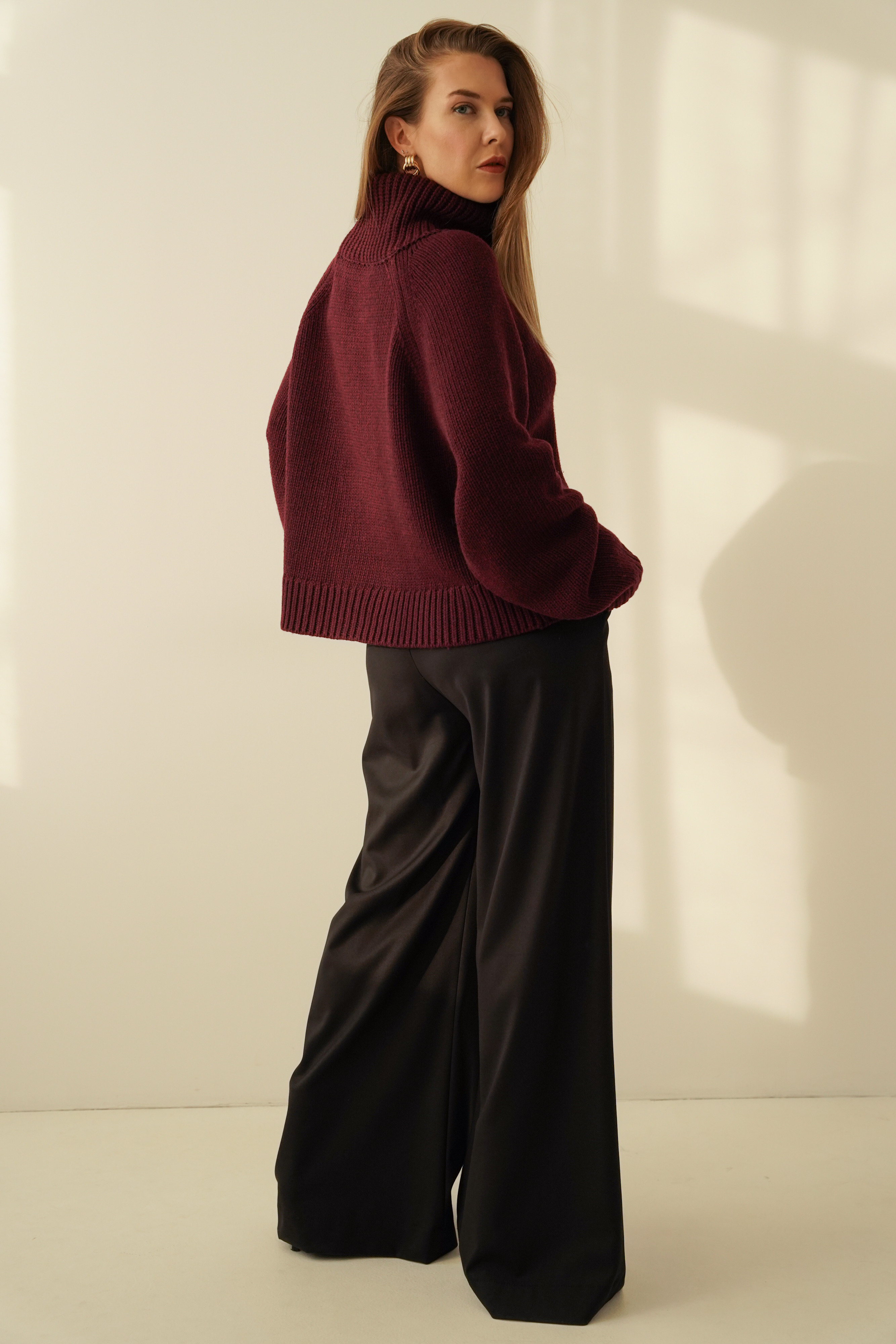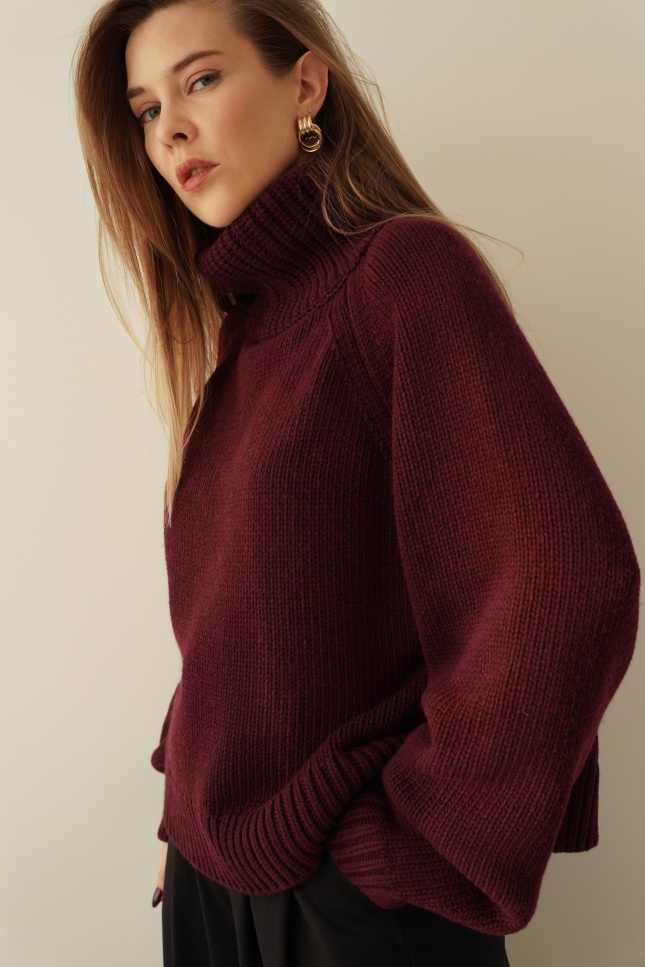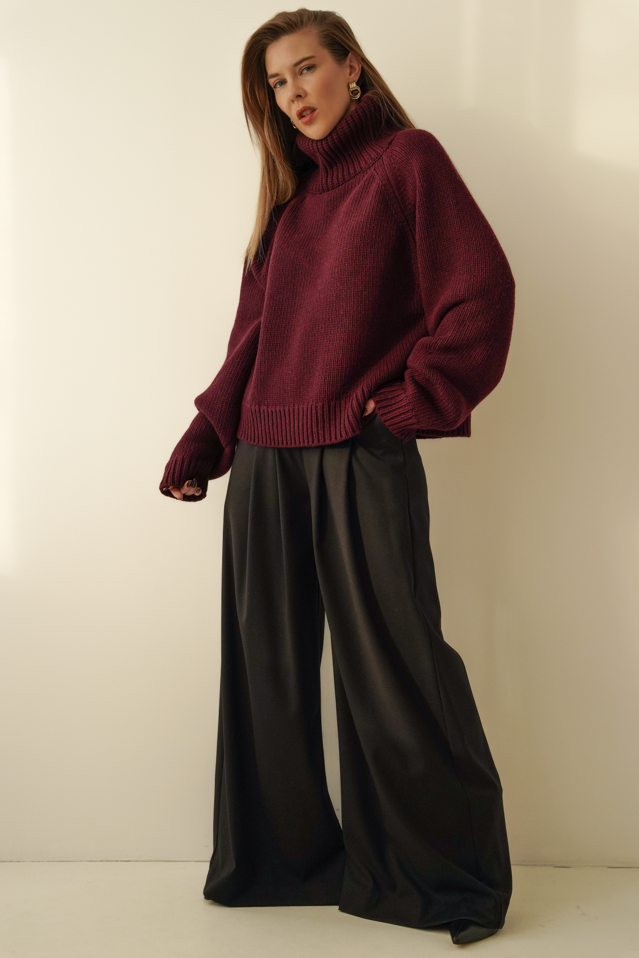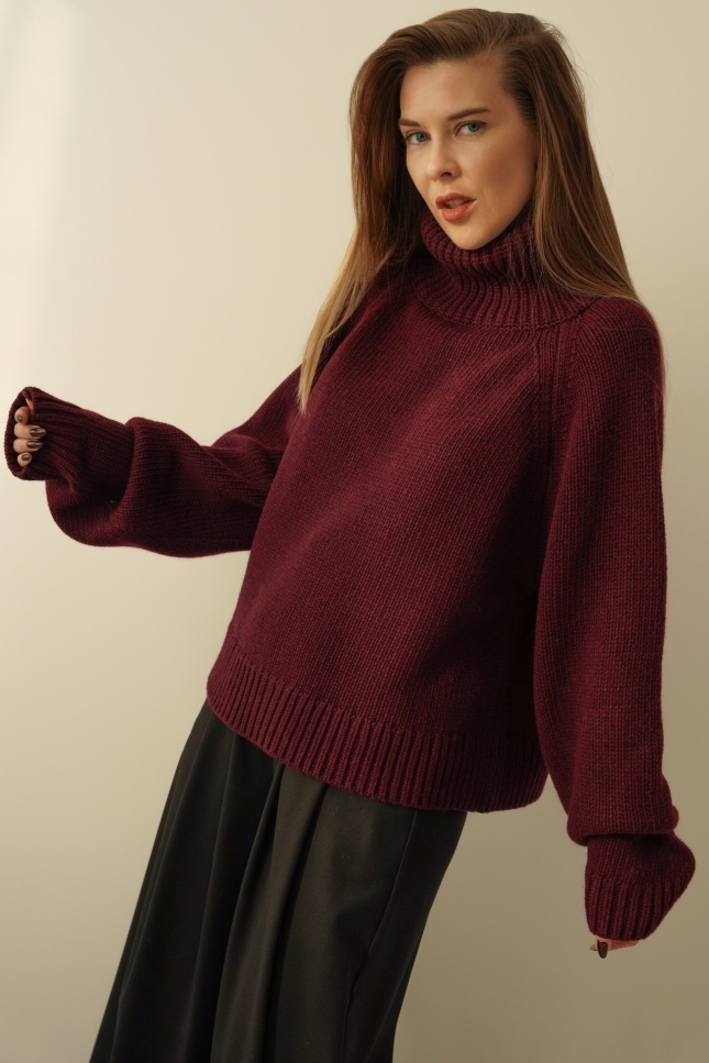 Classic loose turtleneck 100% merino wool Soften burgundy