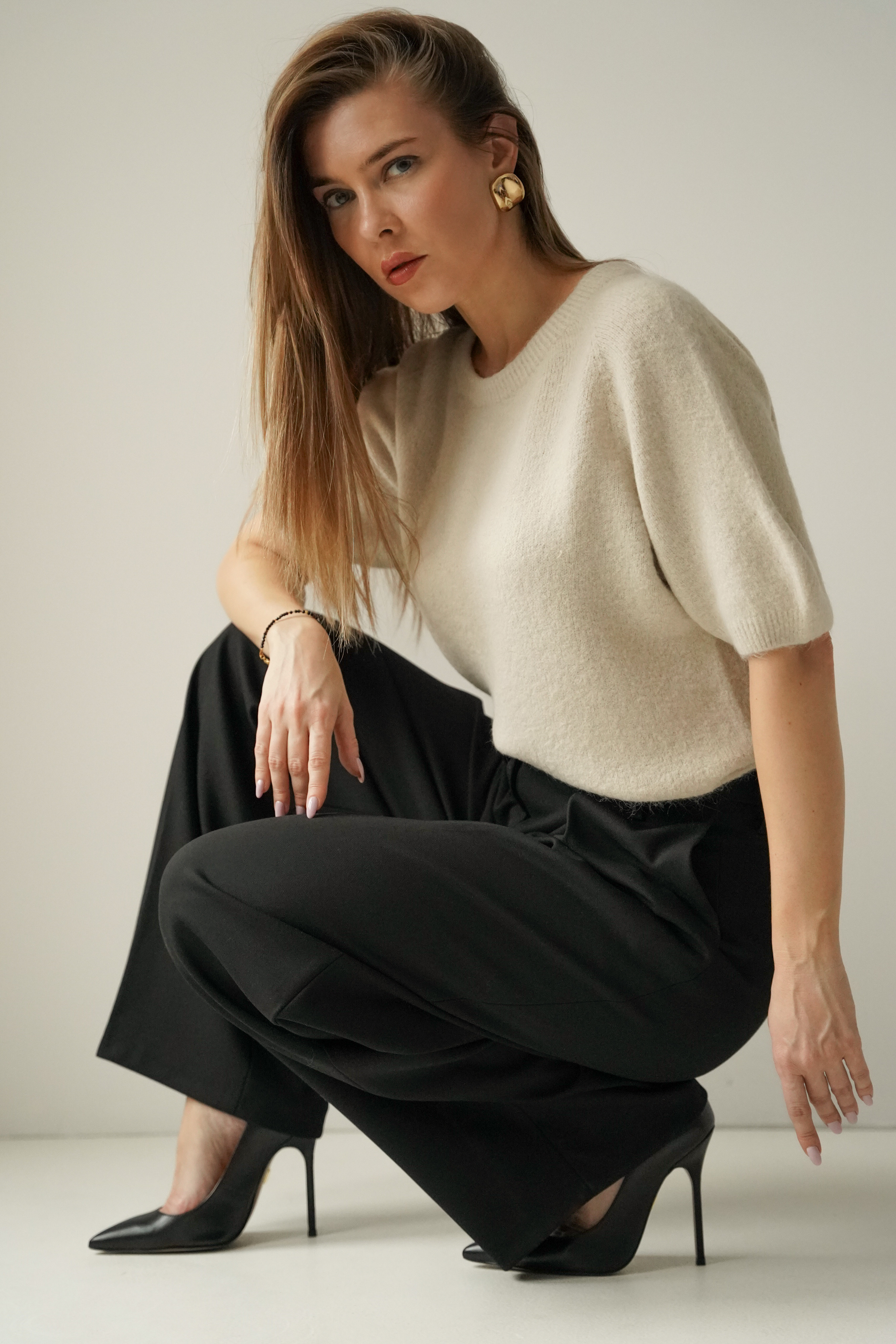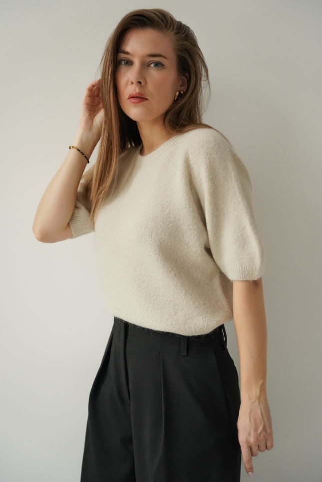 A soft, elegant short-sleeved jumper made from a luxurious blend of baby alpaca, suri alpaca and virgin wool. A timeless design, perfect for both elegant and casual styles. Gentle on the skin, lightweight and extremely comfortable.