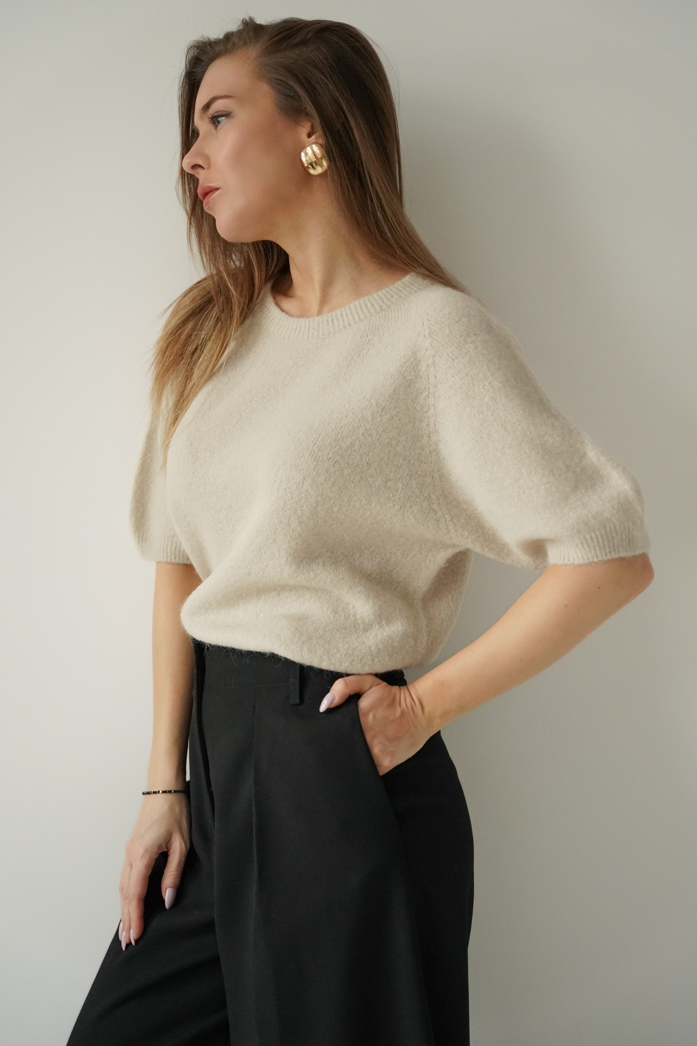 Classic short-sleeved jumper in baby alpaca & suri alpaca Lisa beige