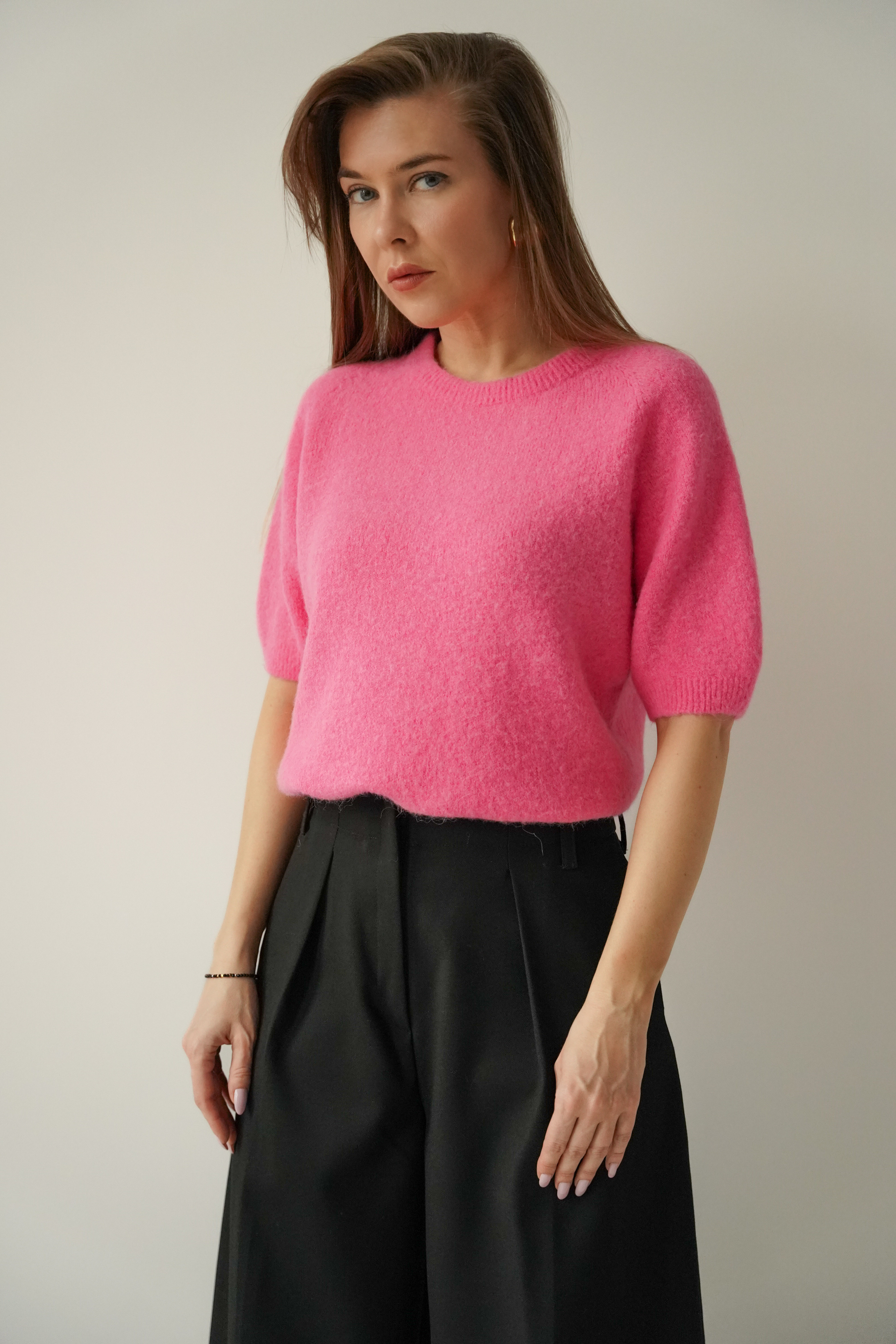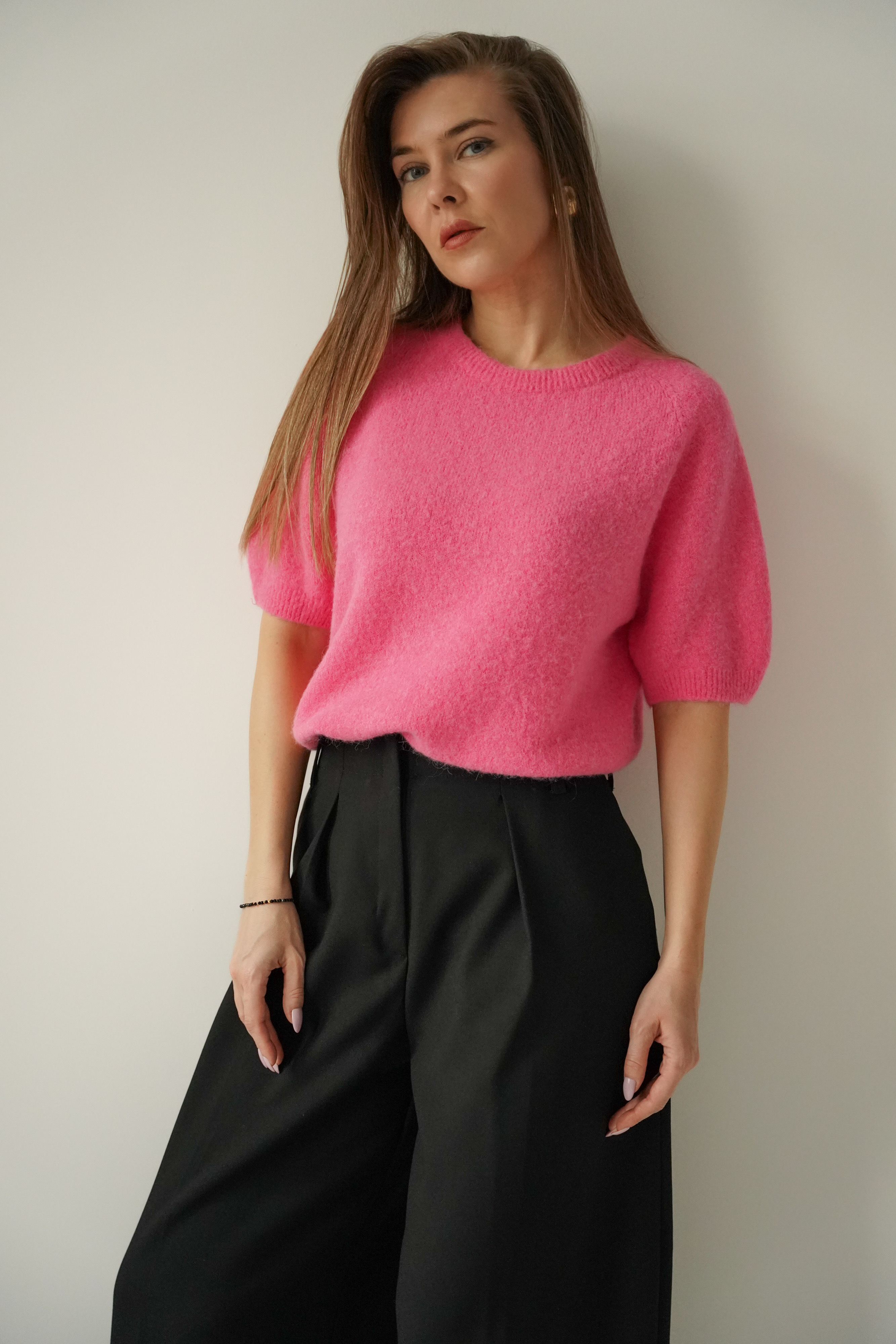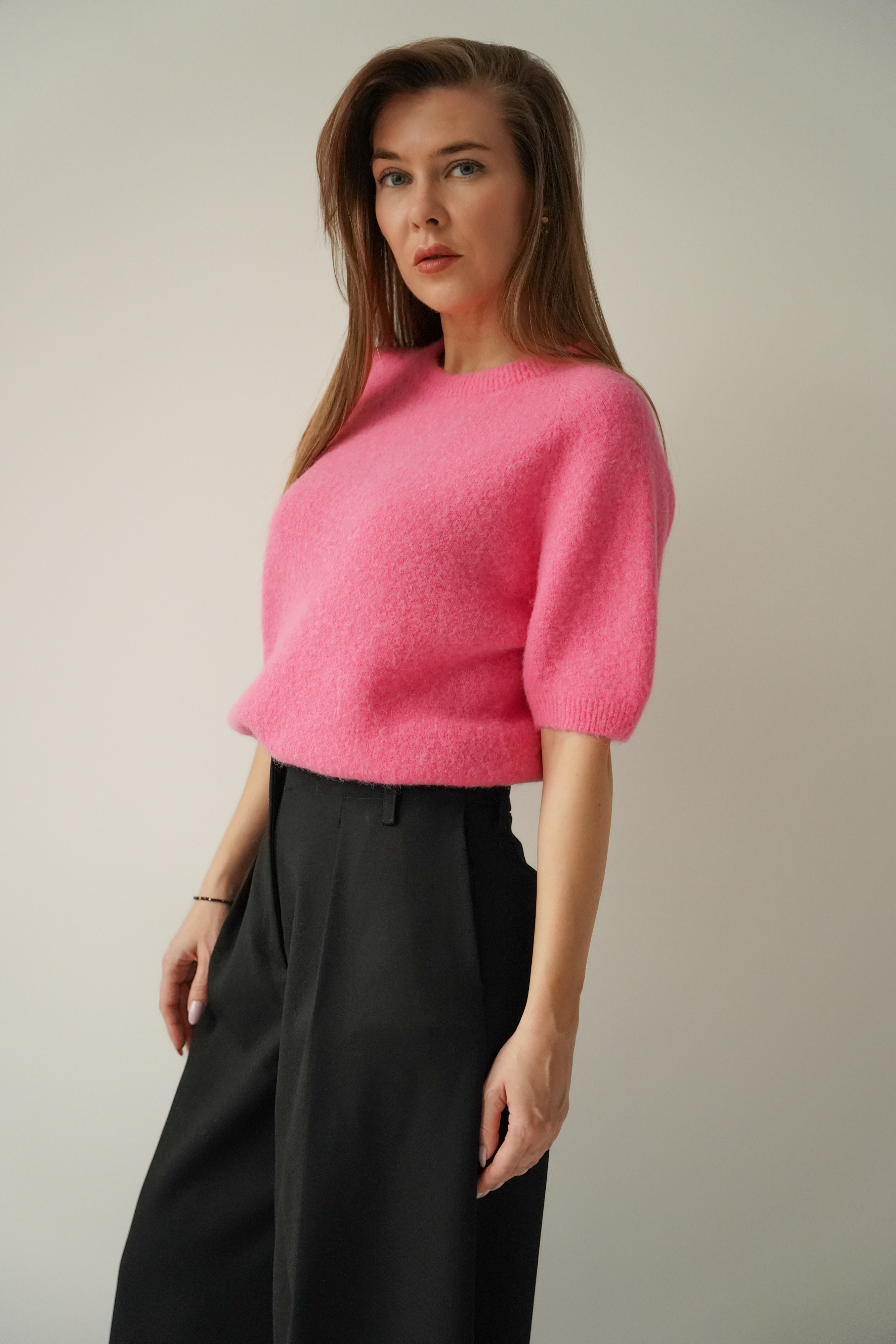 A soft, elegant short-sleeved jumper made from a luxurious blend of baby alpaca, suri alpaca and virgin wool. A timeless design, perfect for both elegant and casual styles. Gentle on the skin, lightweight and extremely comfortable.