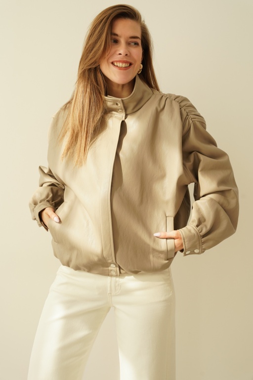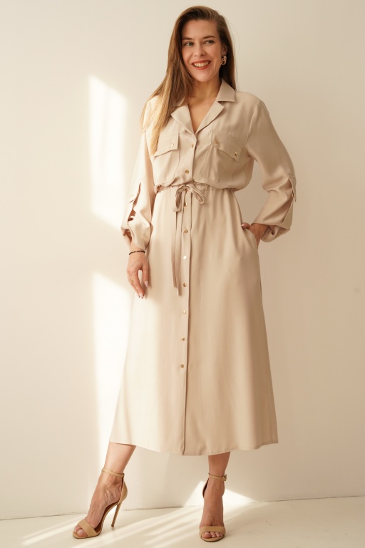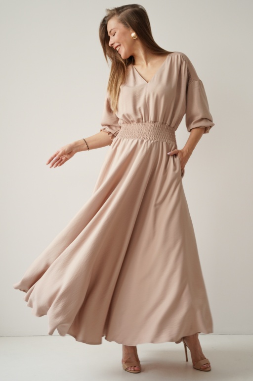 Women's Carmen-style dress with puffed sleeves Paloma beige