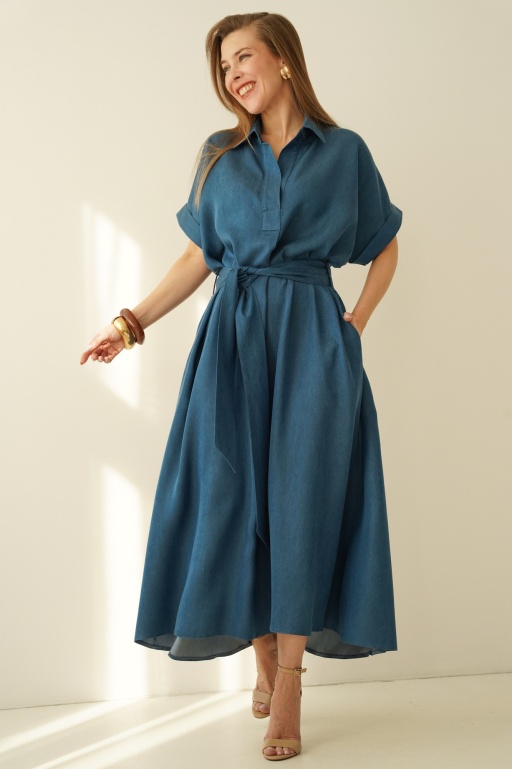 Loose-fitting smart casual polo dress Elan mid denim blue