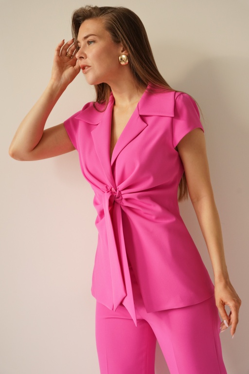 Elegant pinstripe set with a tie-front waistcoat and Clara icy blue palazzo trousers