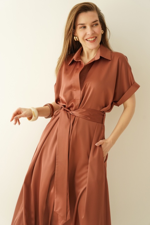 Set comprising a box-cut shirt and chocolate-coloured Safari cargo trousers papaya
