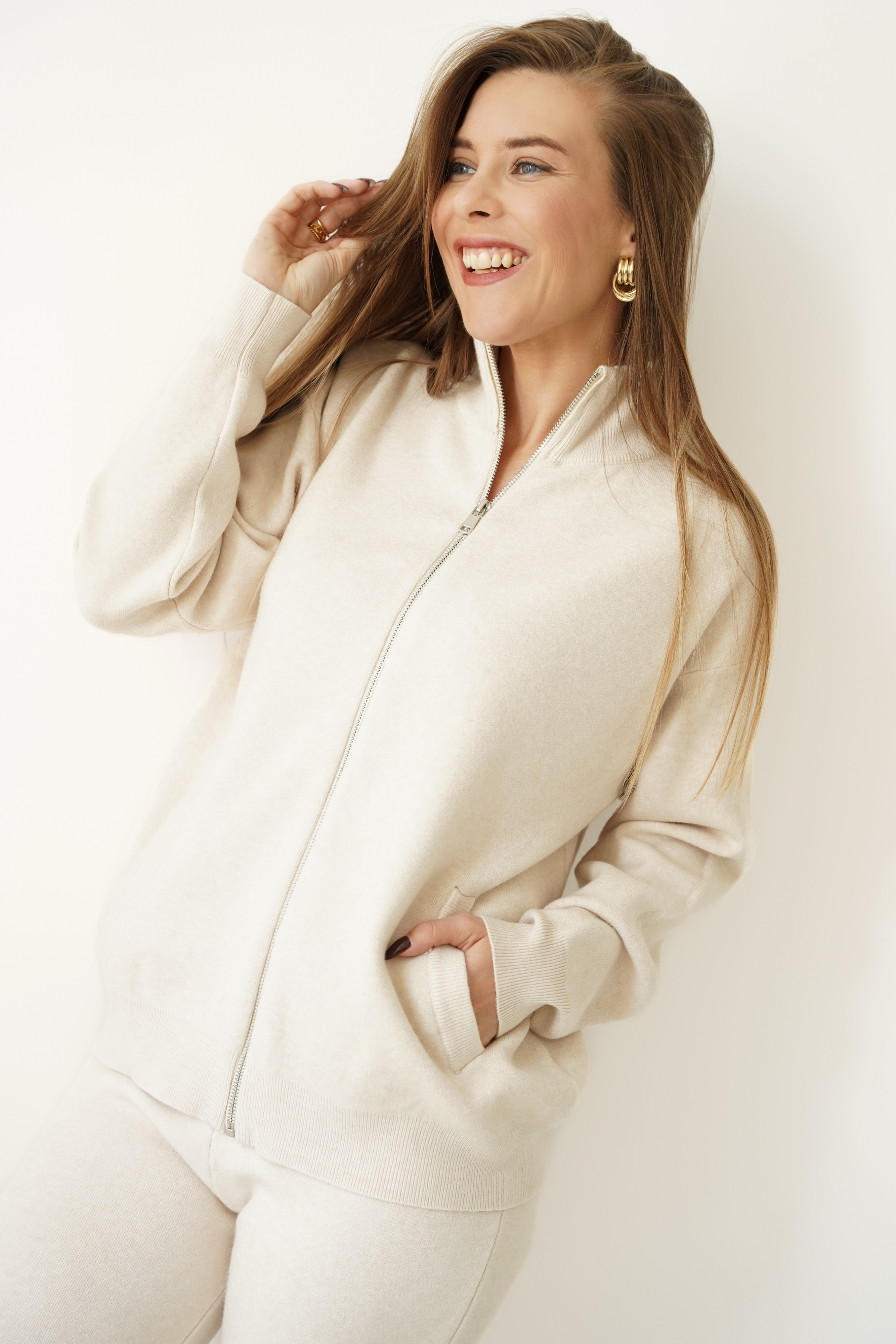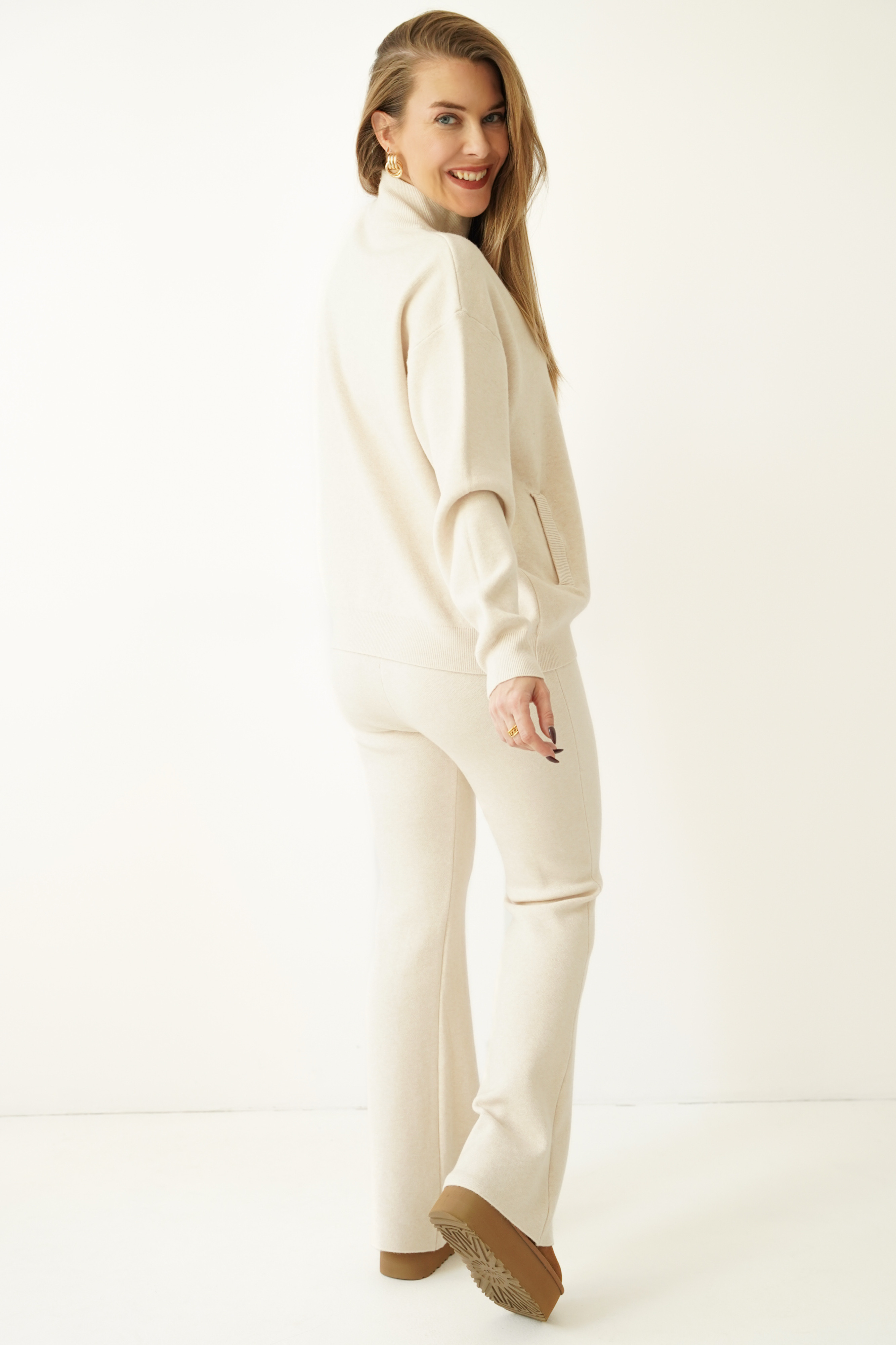 Lou is a casual sports set that combines premium softness with minimalist style. It consists of a zip-up sweatshirt with pockets and straight-leg trousers, made of thick, comfortable viscose and modal fabric. Perfect for everyday wear, travelling and slow life rituals at home – it ensures comfort without compromising on elegance.