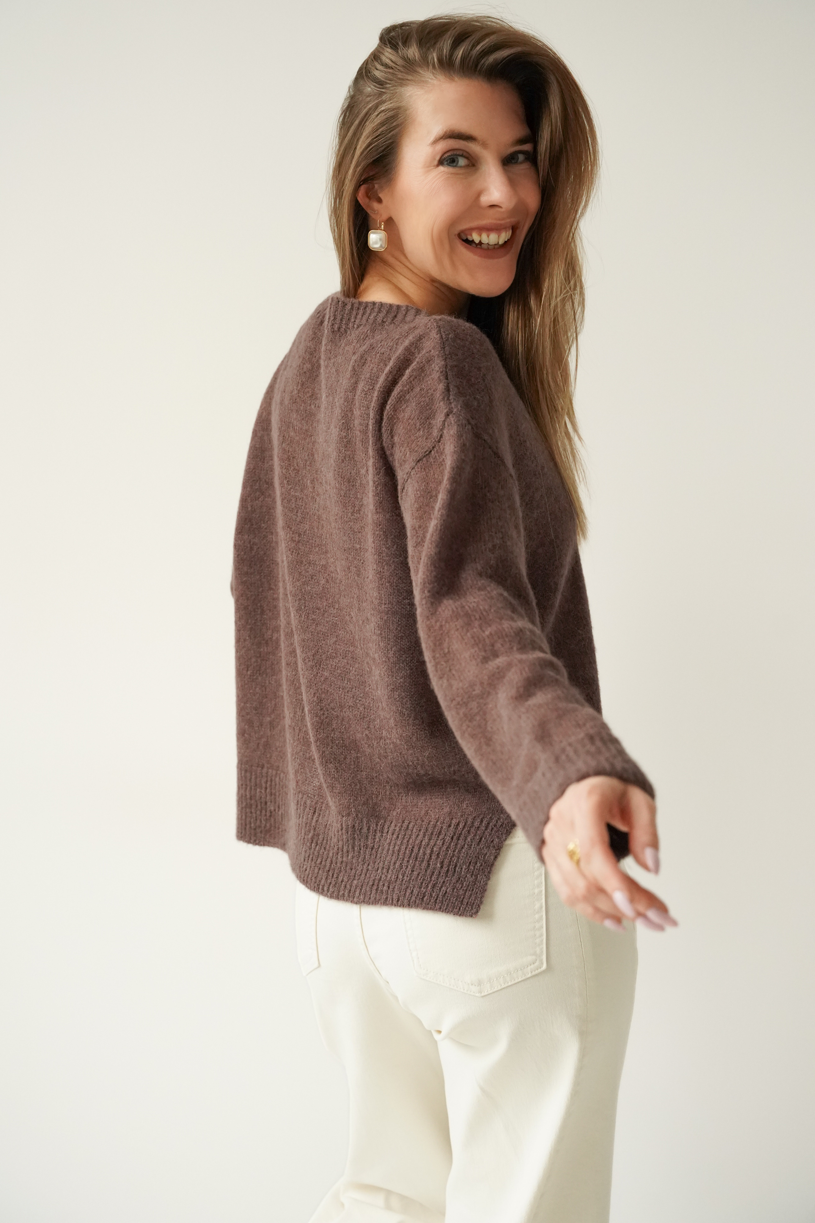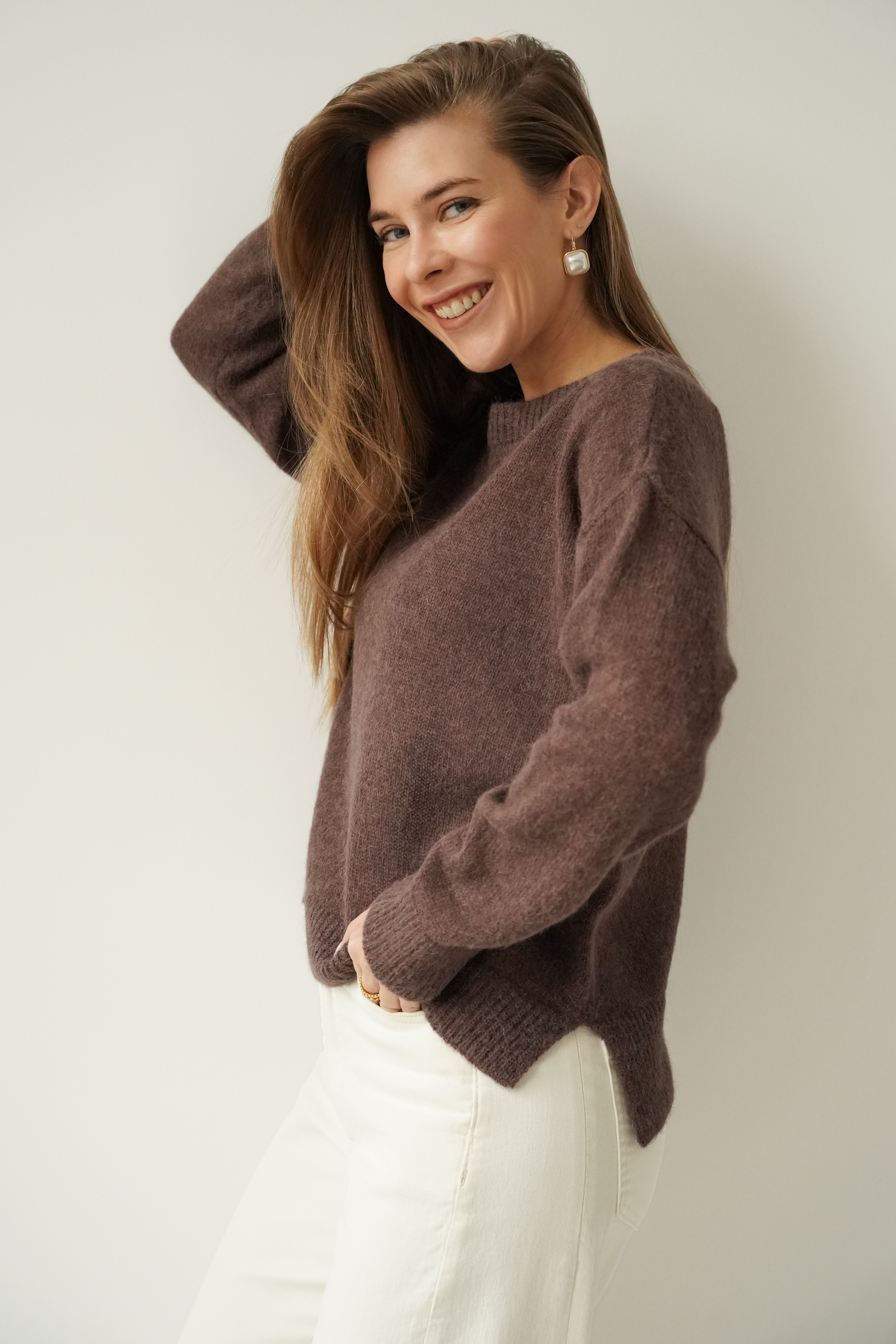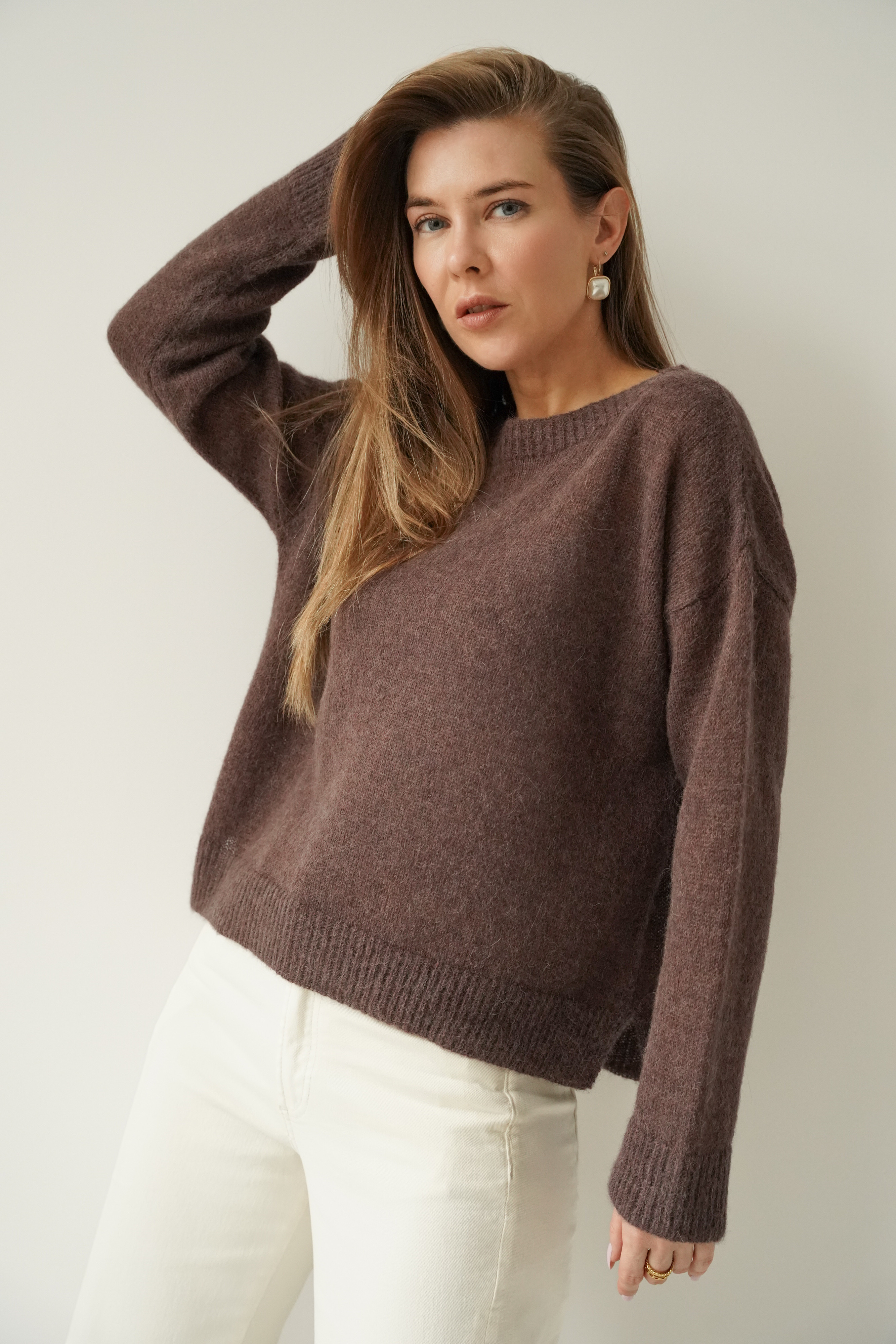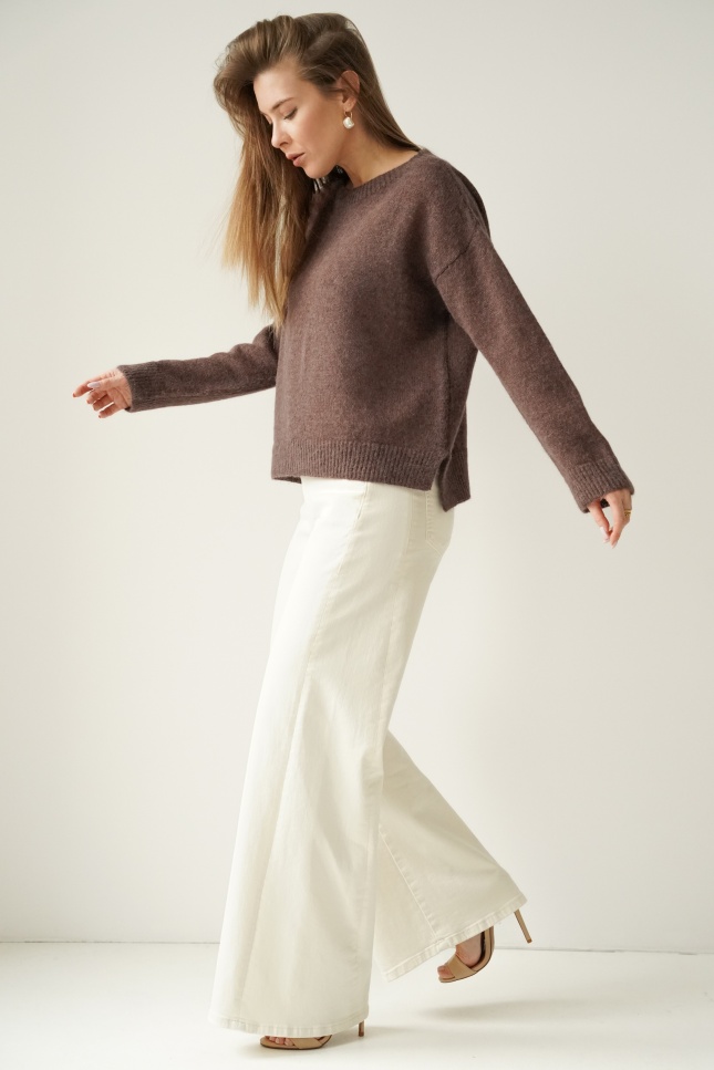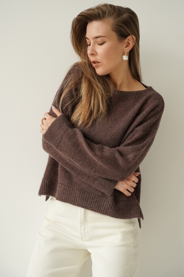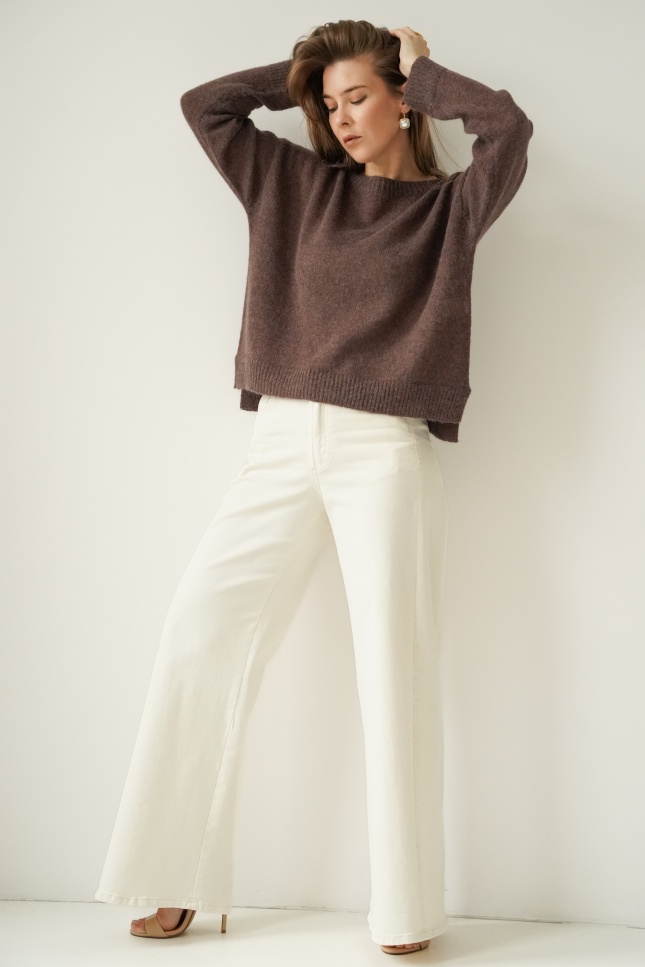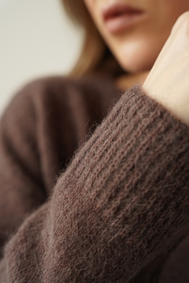 ELARA is an elegant, loose-fitting jumper made from a luxurious yarn containing 62% baby alpaca and 20% superfine alpaca. Lightweight, fluffy and breathable, it is perfect for the spring–summer season. Its pastel shades and timeless design make it a perfect fit for a modern capsule wardrobe.