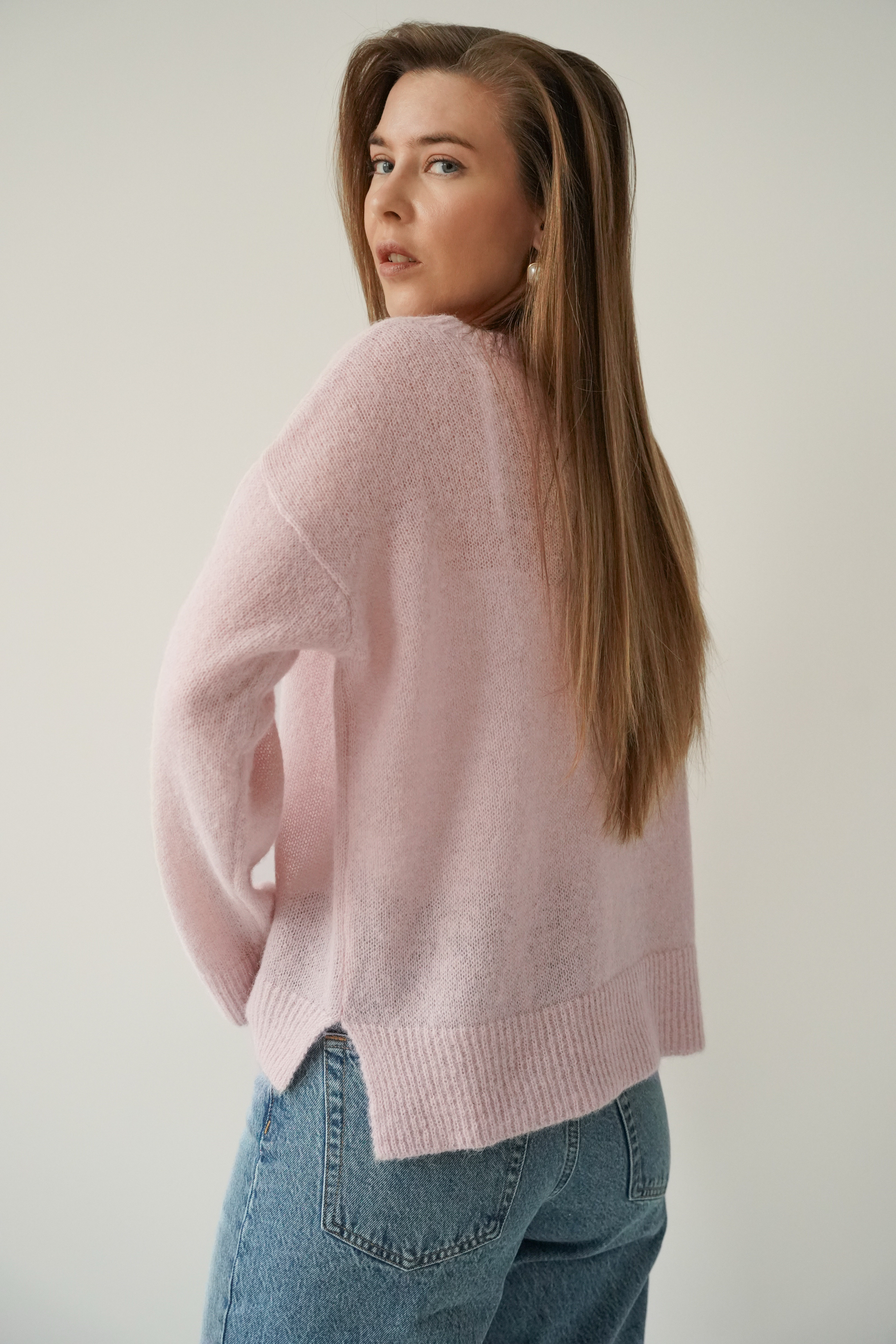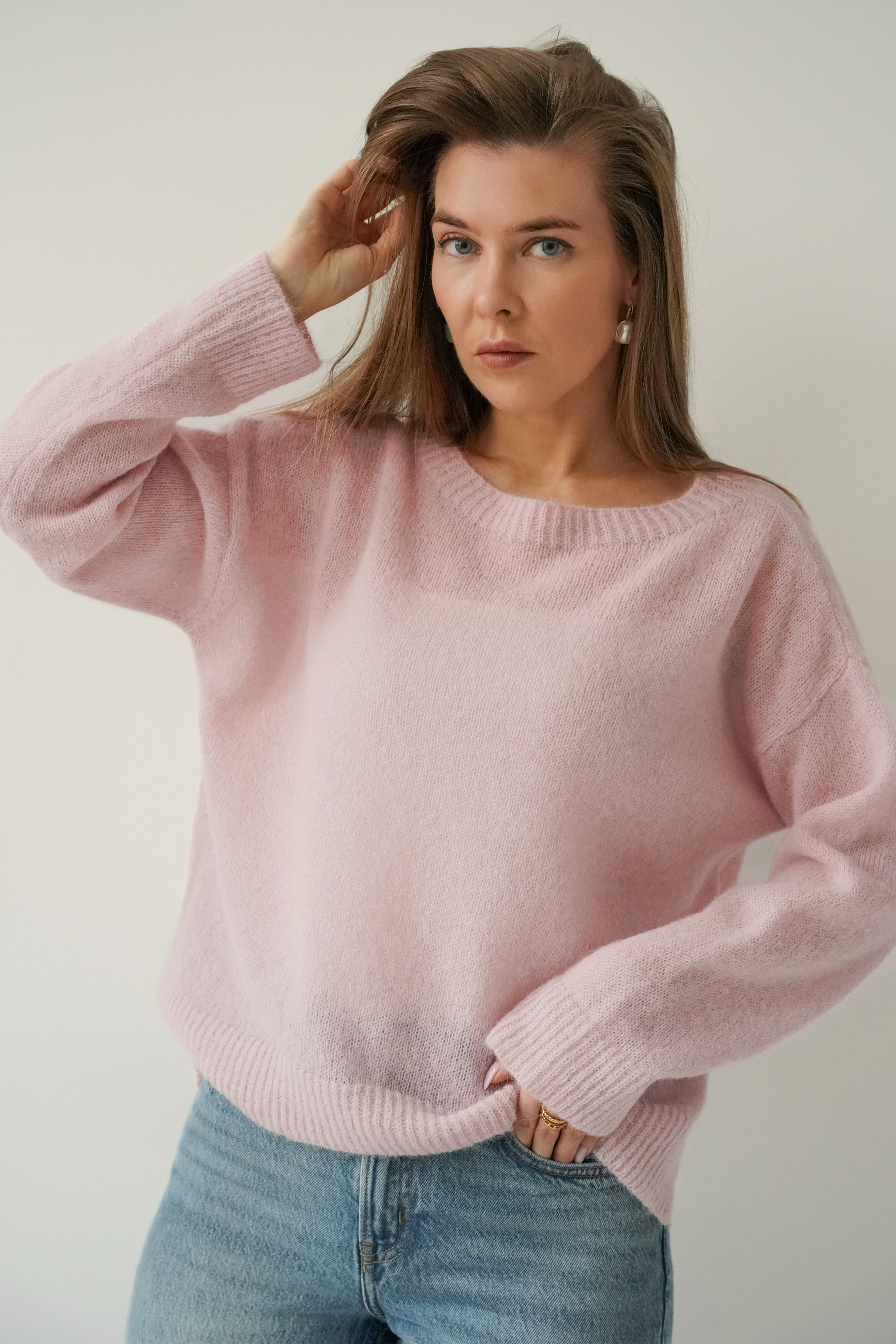 ELARA is an elegant, loose-fitting jumper made from a luxurious yarn containing 62% baby alpaca and 20% superfine alpaca. Lightweight, fluffy and breathable, it is perfect for the spring–summer season. Its pastel shades and timeless design make it a perfect fit for a modern capsule wardrobe.