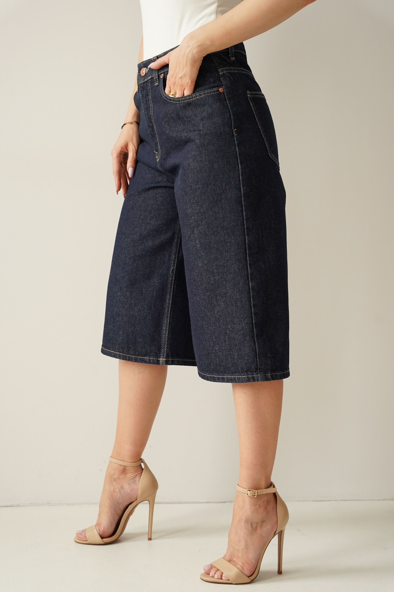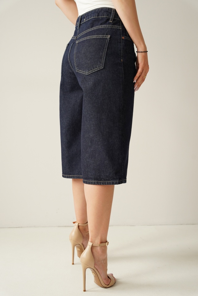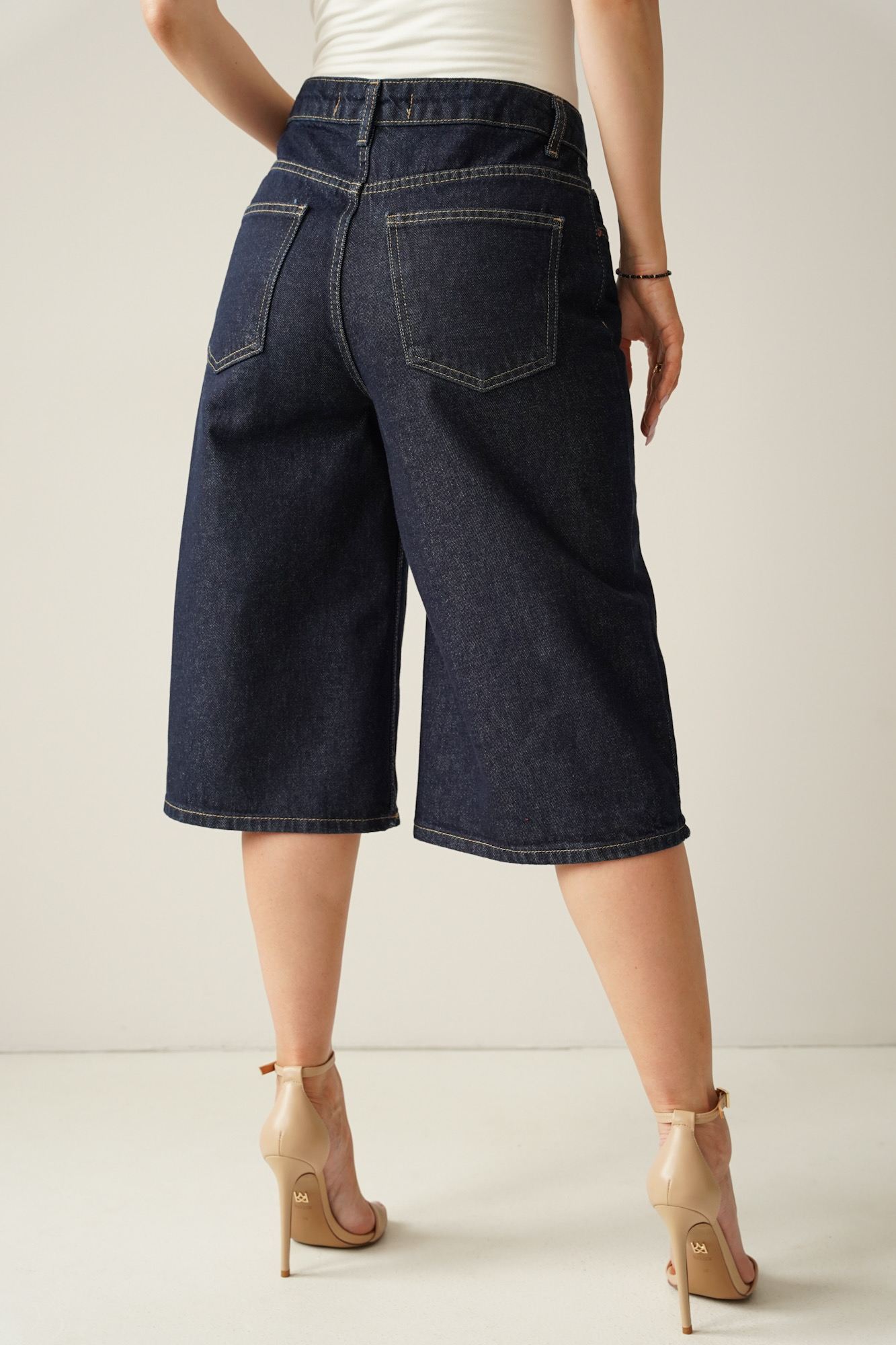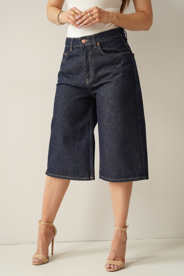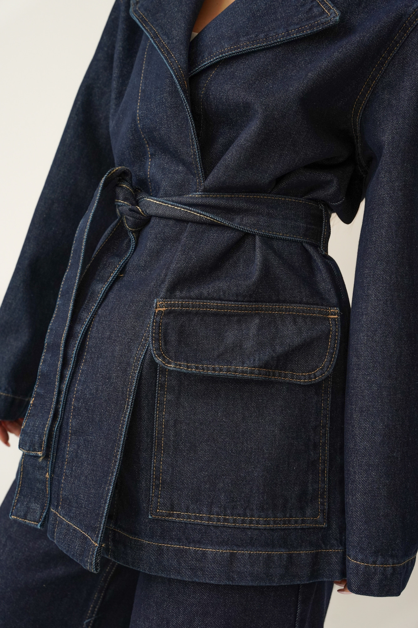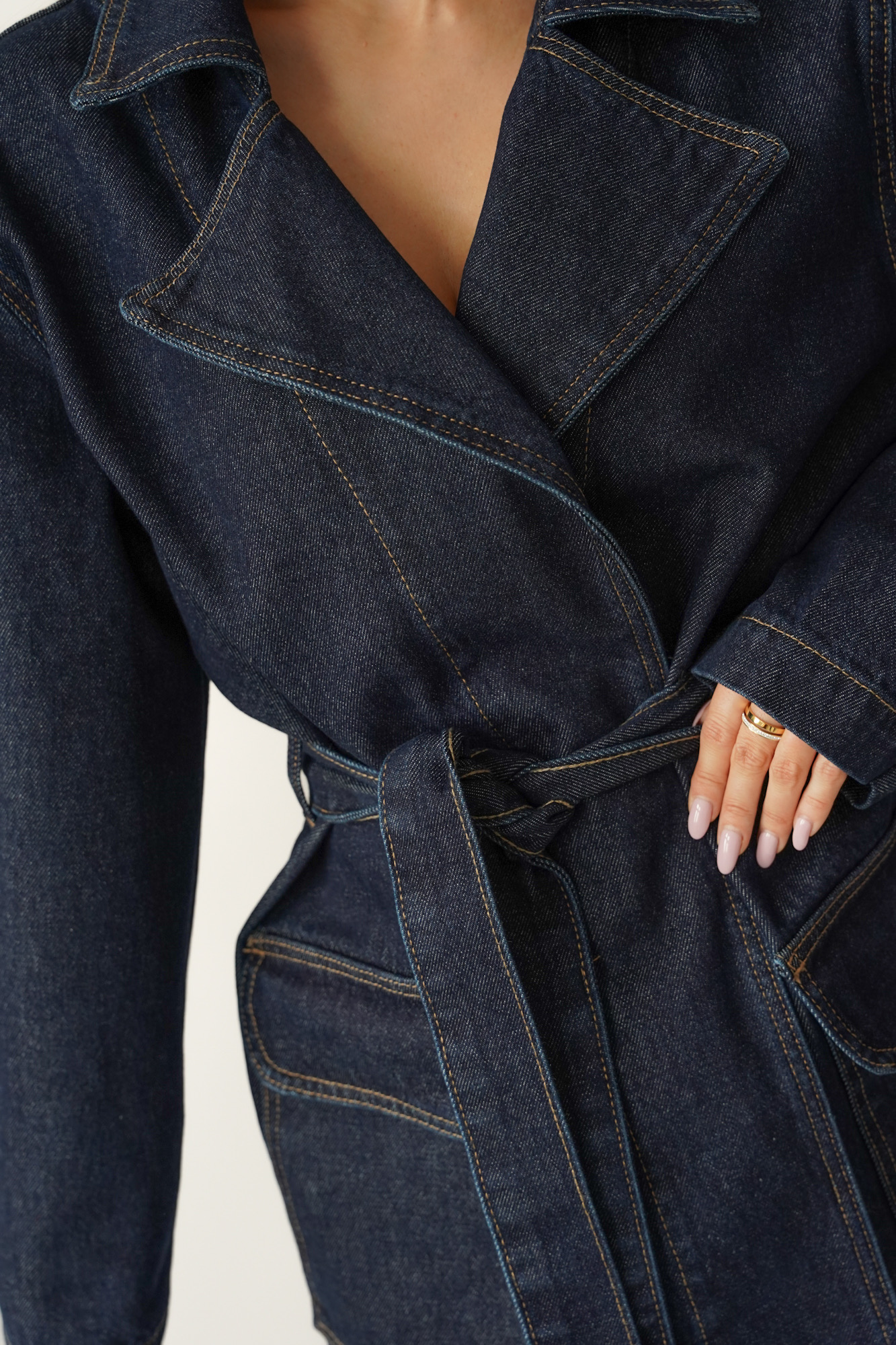 Boulevard Chic is a stylish denim set made of 100% cotton denim in a classic dark shade. The jacket, tied with a belt at the waist, allows you to shape your figure, while the Bermuda shorts with a refined leg line create a modern, elegant form. A timeless total look that you can wear together or separately – from casual styles to more sophisticated outfits.