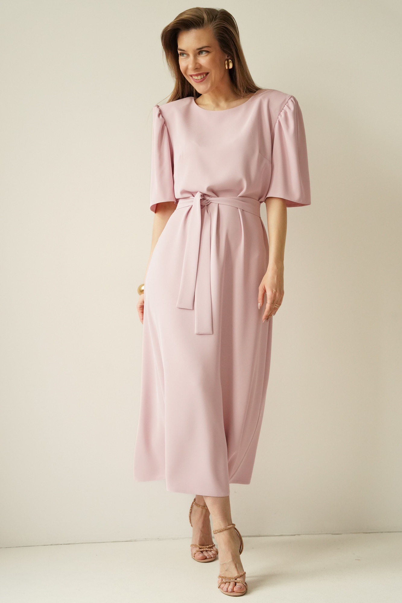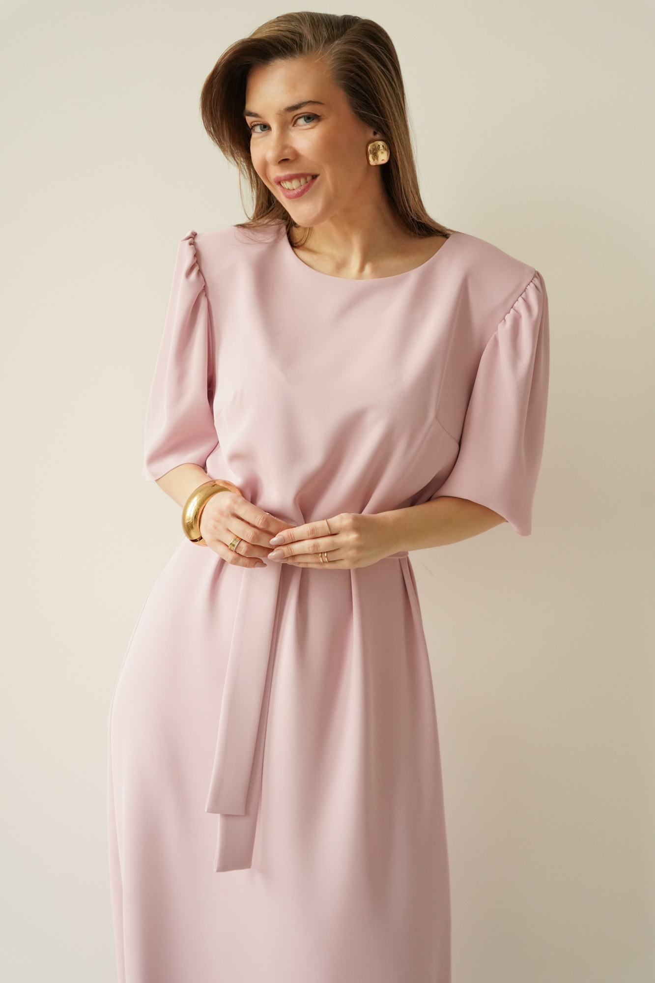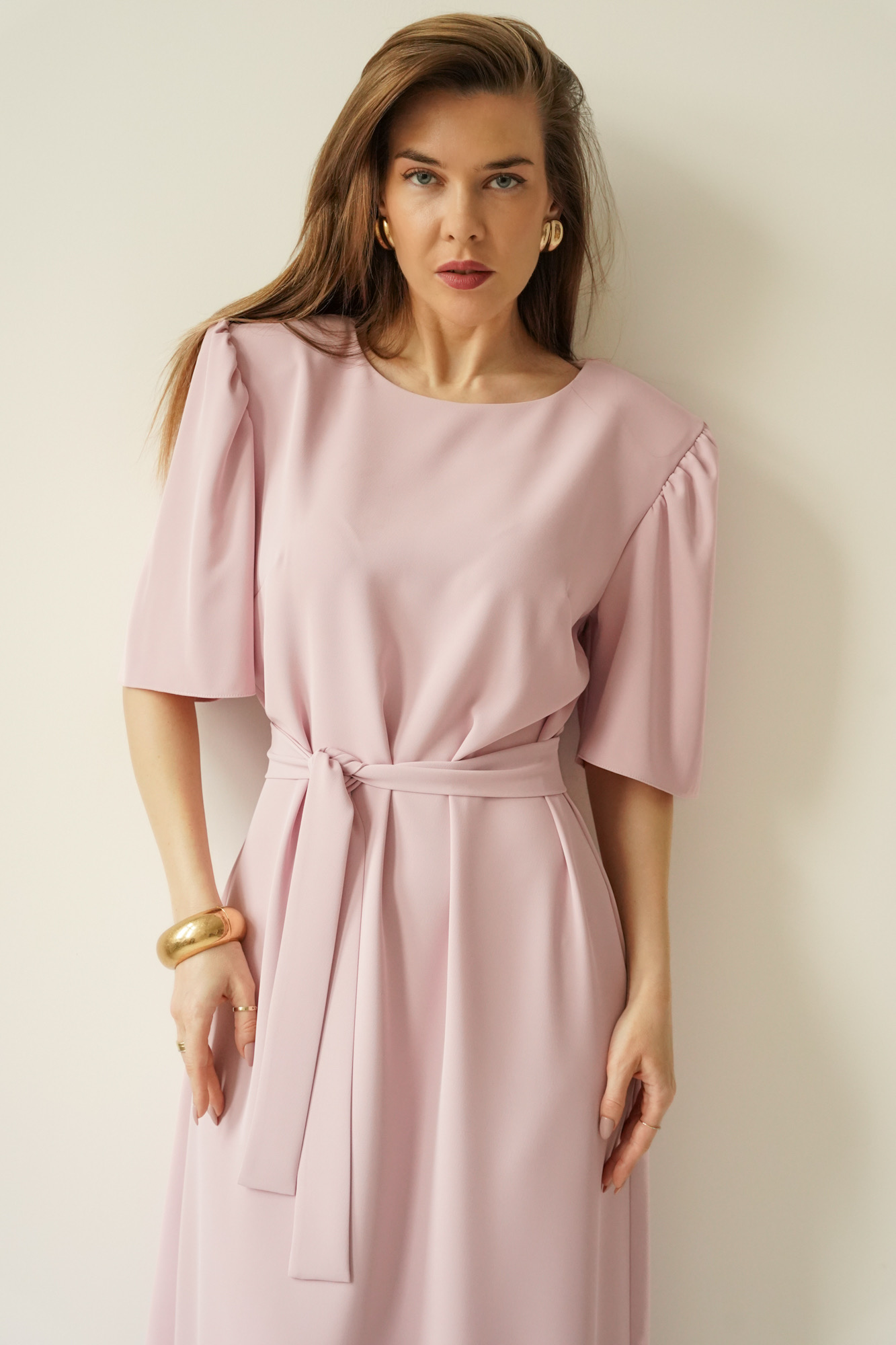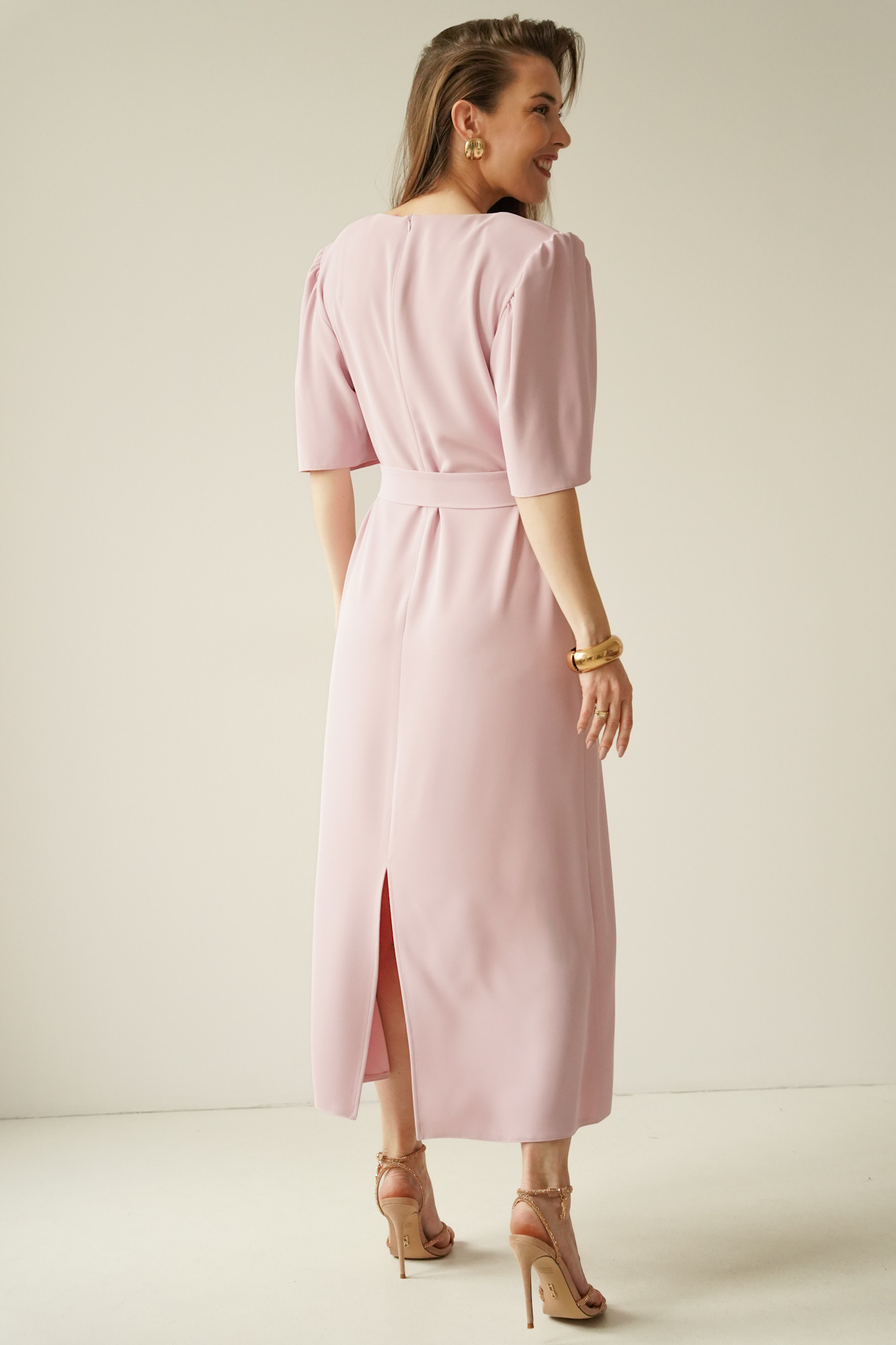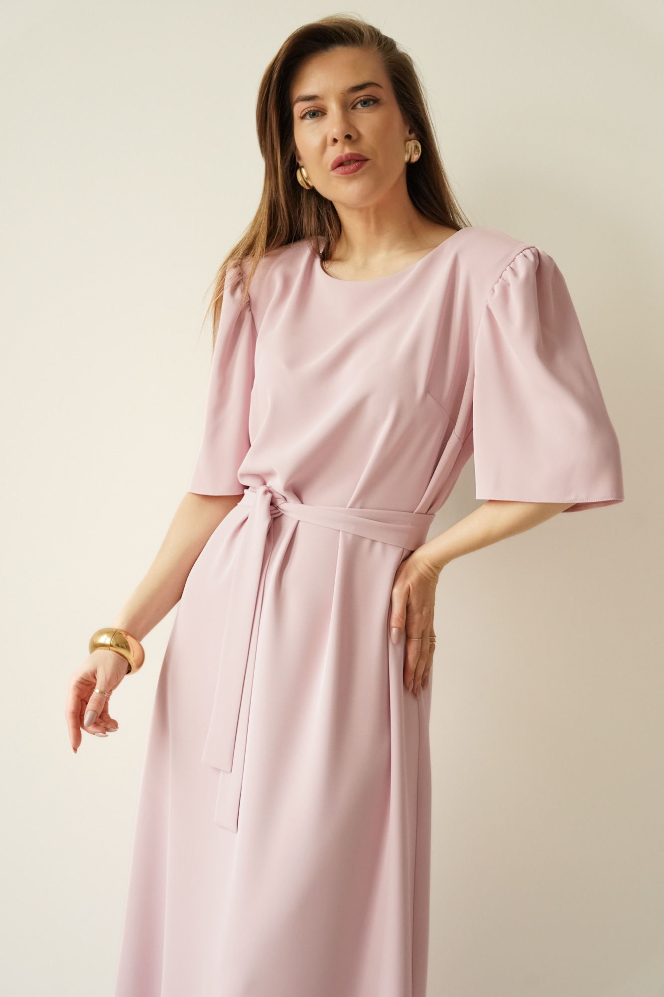 The elegant dress with puff sleeves Aurelia powder pink