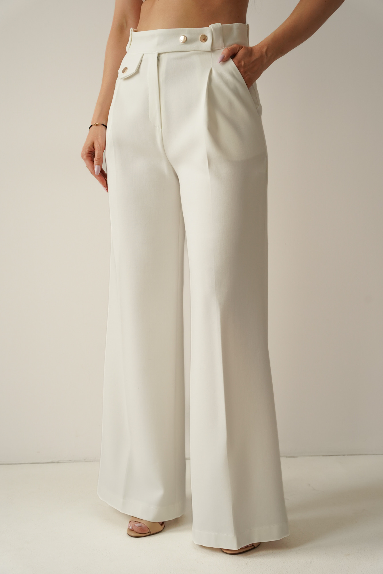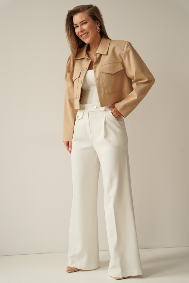 Eleganckie spodnie z wysokim stanem cream