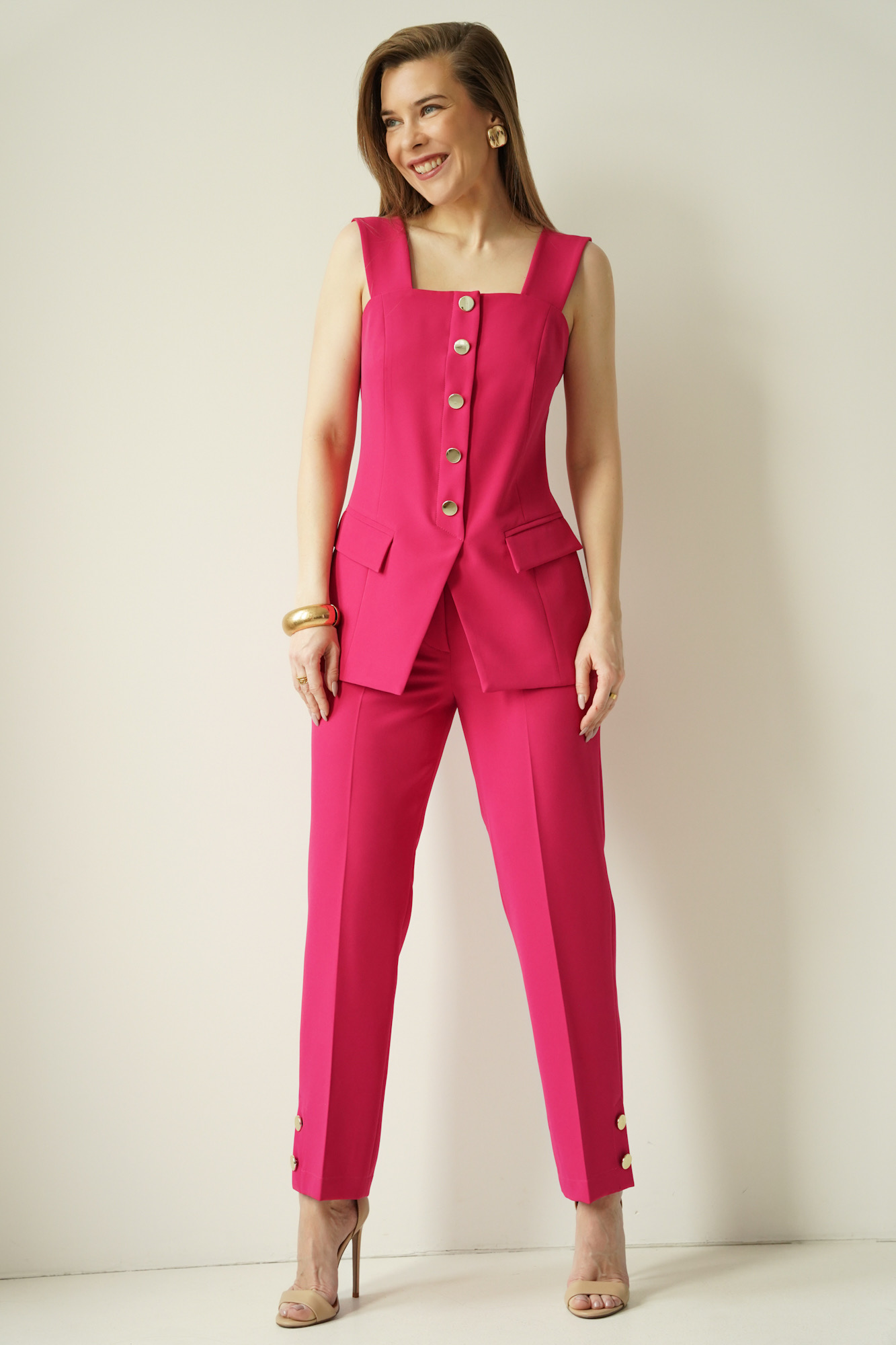 Elegant outfit featuring waistcoat Megan magenta