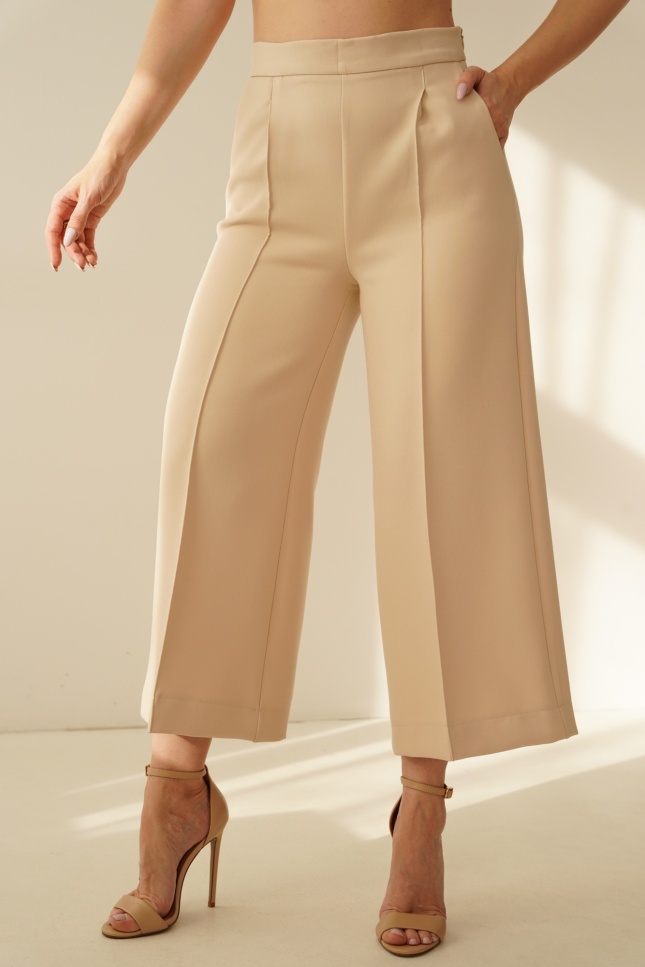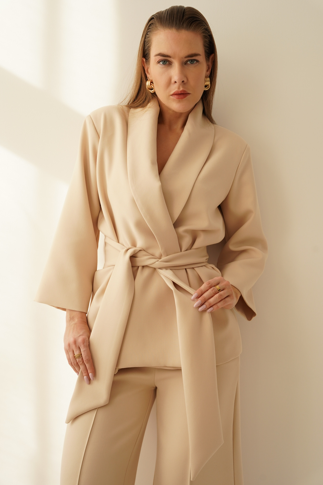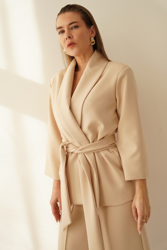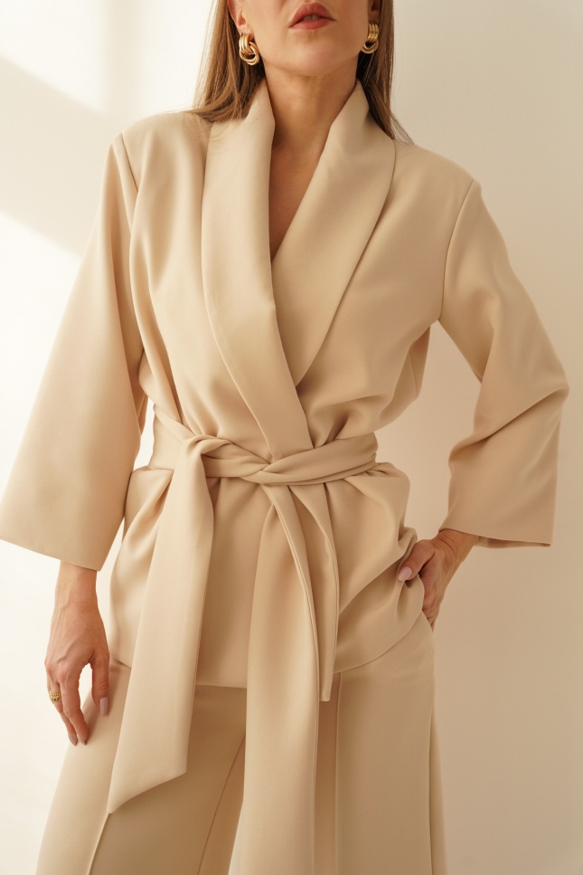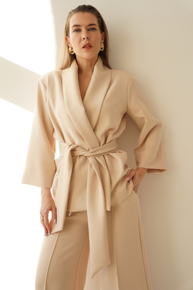 An elegant, feminine set consisting of a belted jacket and culotte pants with creases. Made of high-quality suit fabric with 72% viscose. A stylish balance between elegance and casual. Perfect for everyday wear, work, and evening occasions.
