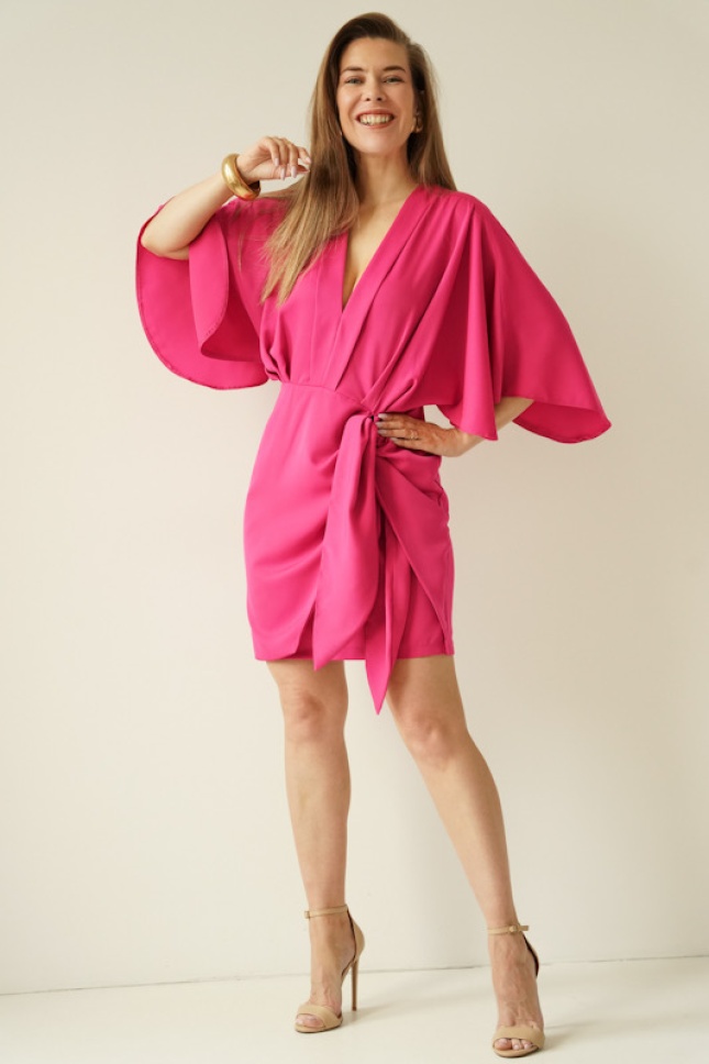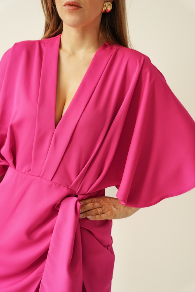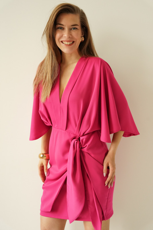 Elegant dress with V neckline and tulip tie Dahlia Muse fuchsia