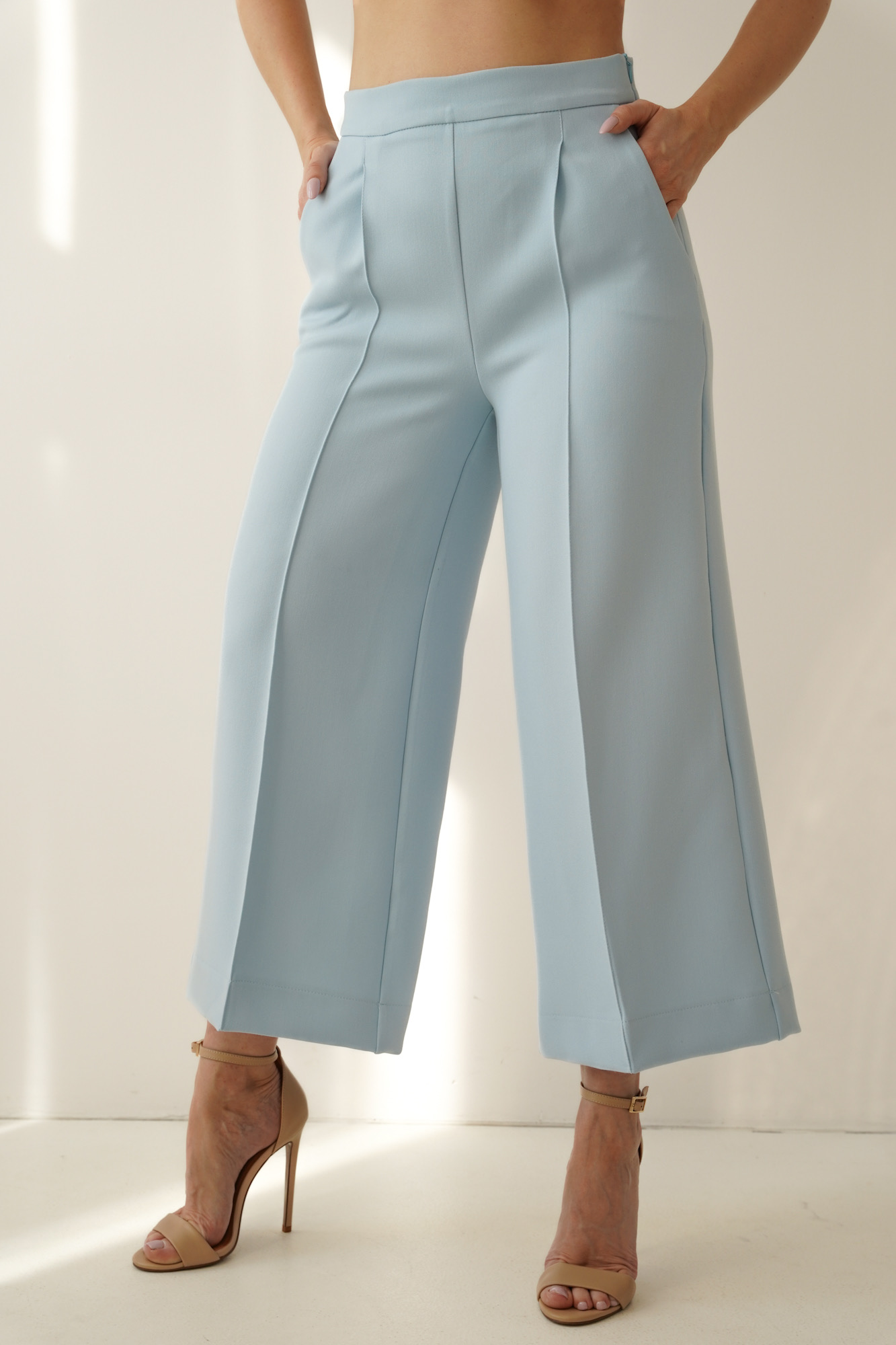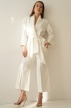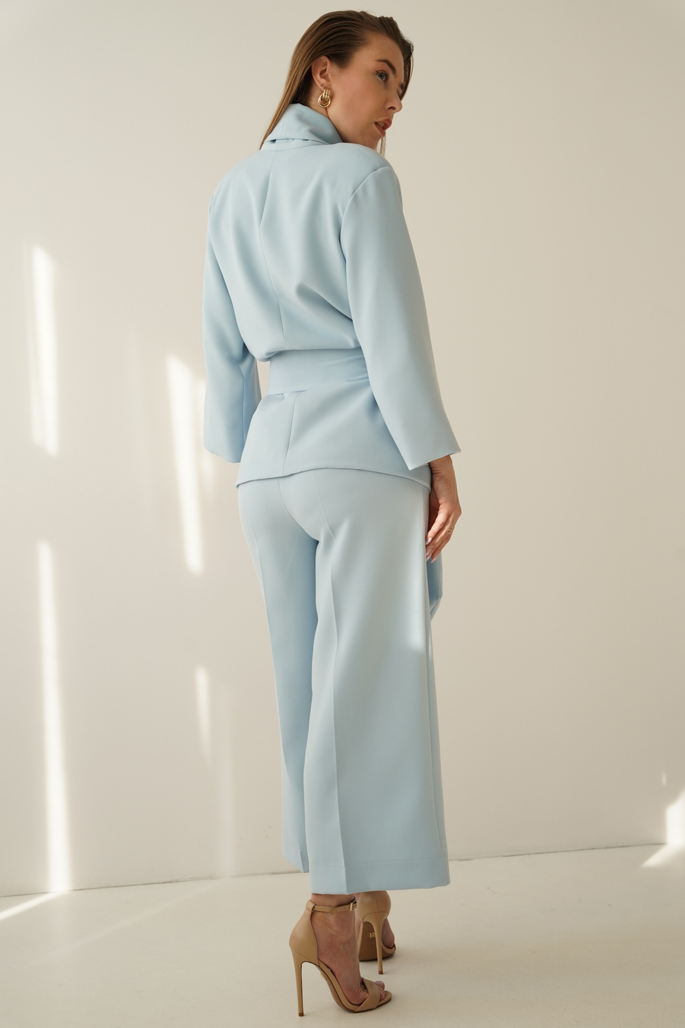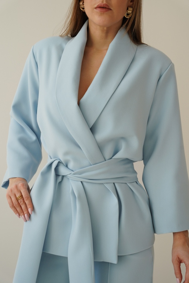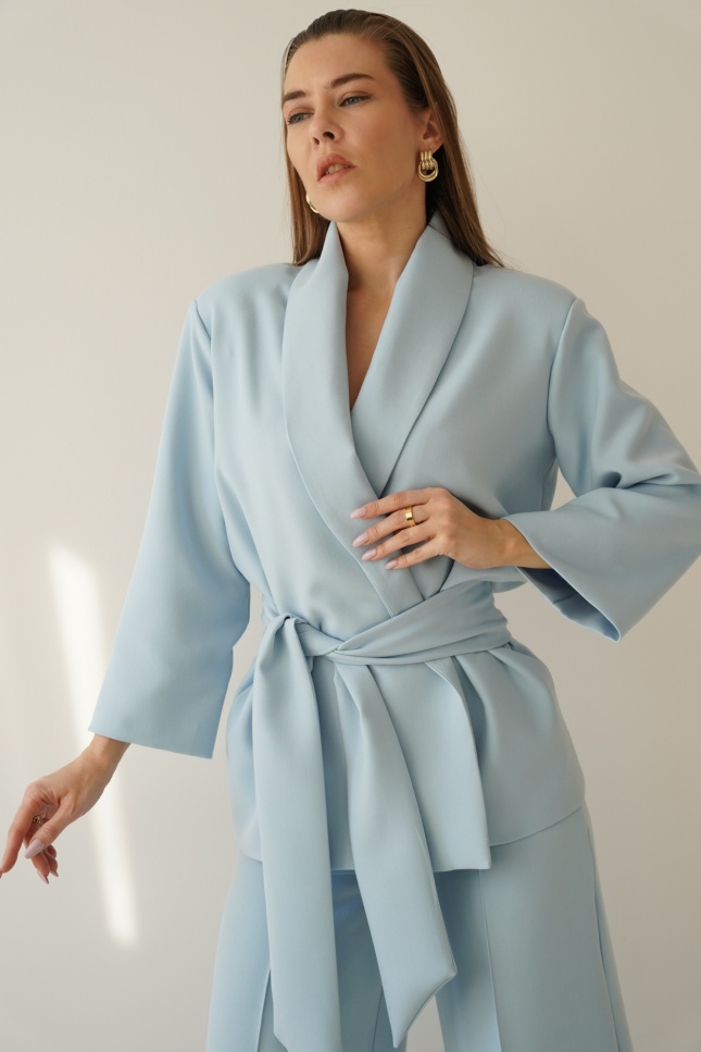 An elegant, feminine set consisting of a belted jacket and culotte pants with creases. Made of high-quality suit fabric with 72% viscose. A stylish balance between elegance and casual. Perfect for everyday wear, work, and evening occasions.