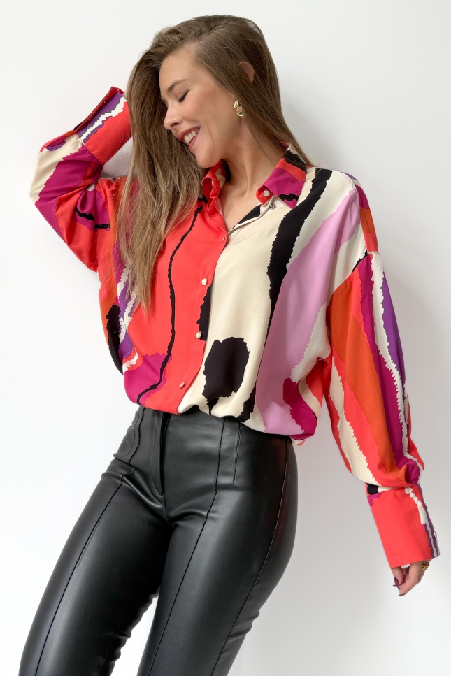 An elegant shirt with a collar, button fastening, and cuffs. Its loose, comfortable fit and 100% viscose fabric make it light, breathable, and perfect for everyday wear. Original prints add character – from paisley to animal and graphic patterns. It goes well with jeans, elegant trousers, and skirts.
