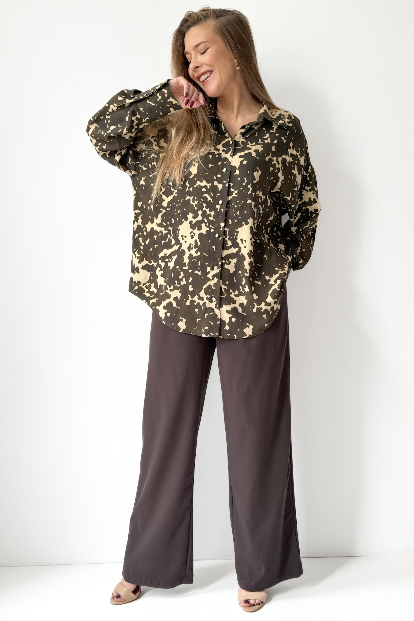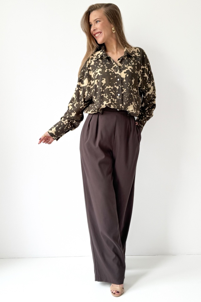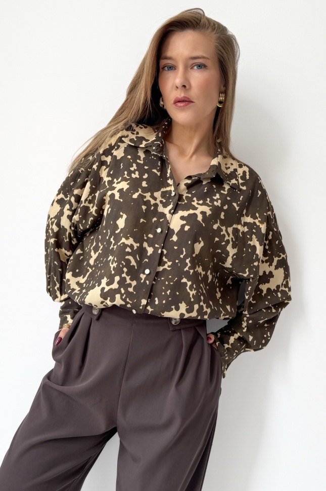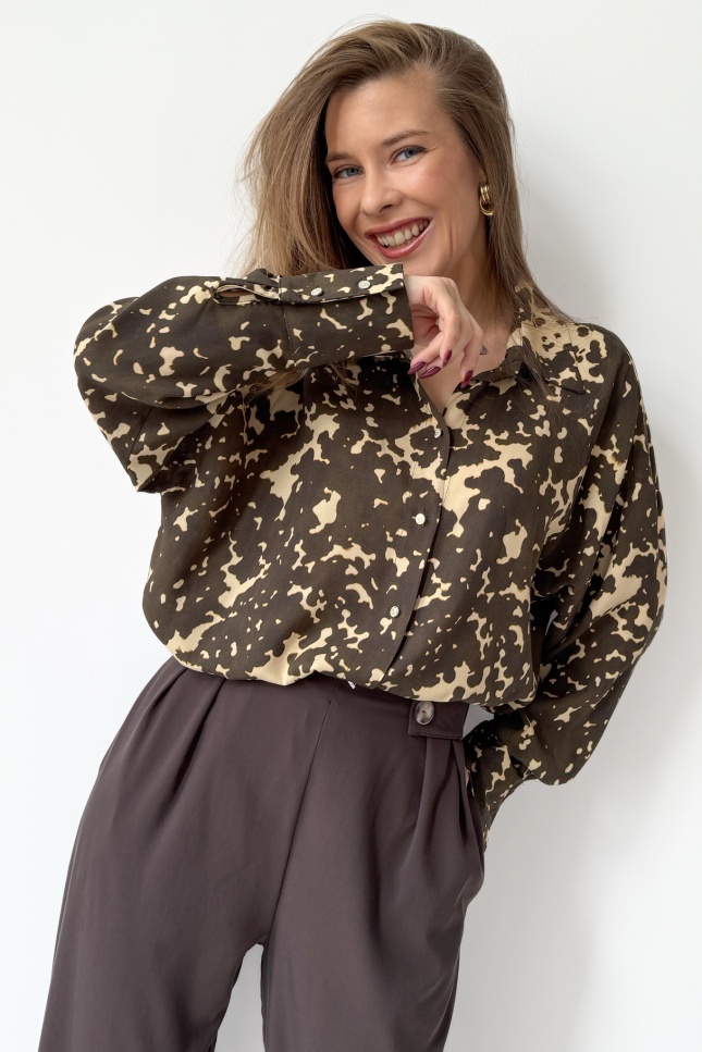 An elegant shirt with a collar, button fastening, and cuffs. Its loose, comfortable fit and 100% viscose fabric make it light, breathable, and perfect for everyday wear. Original prints add character – from paisley to animal and graphic patterns. It goes well with jeans, elegant trousers, and skirts.
