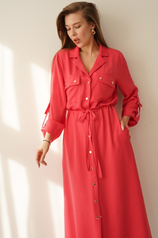 Made of natural fabric (90% viscose, 10% cupro), it combines softness, breathability and a subtle, noble sheen. It fits perfectly on the figure, ensuring comfort and an elegant visual effect.