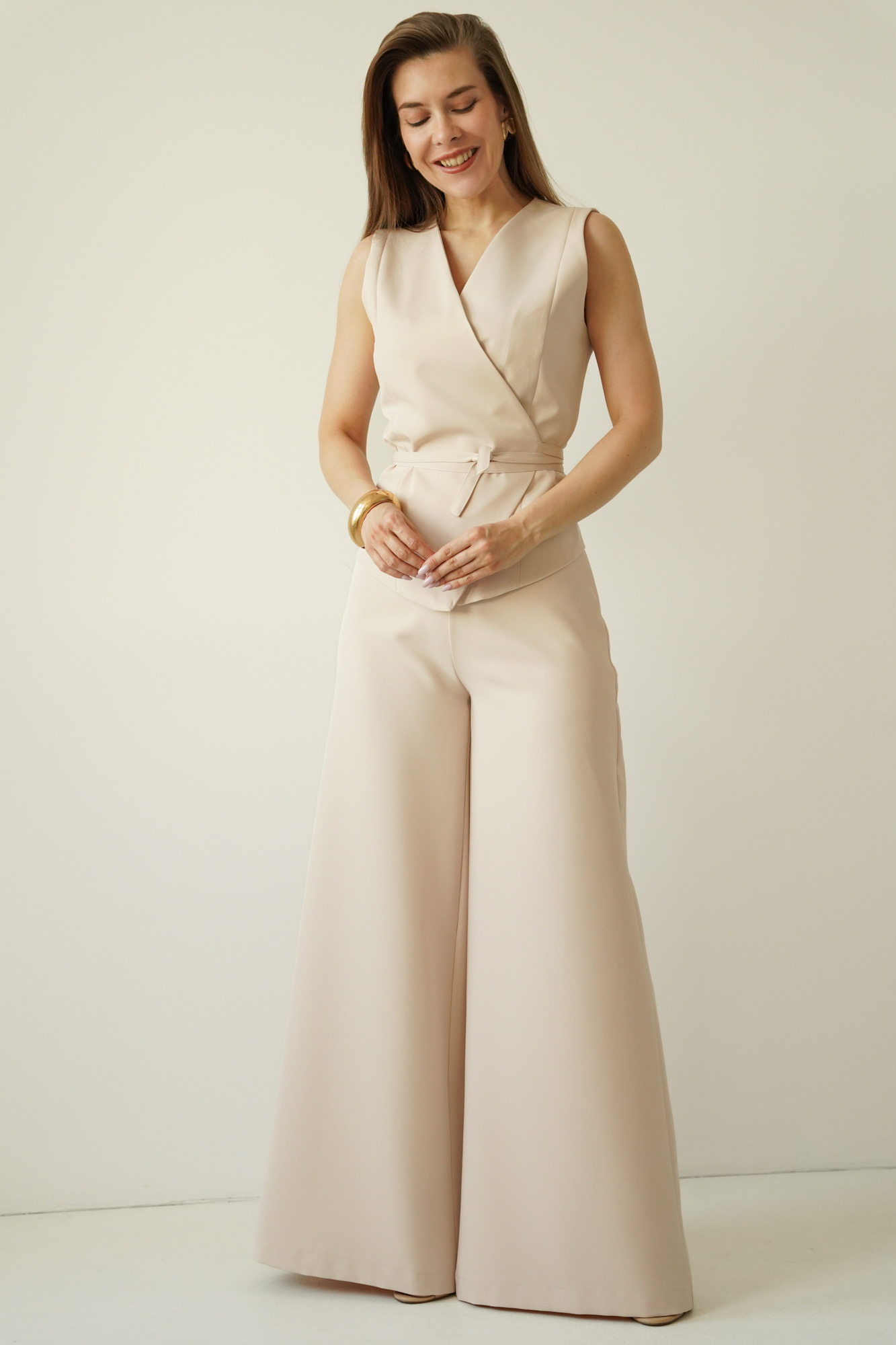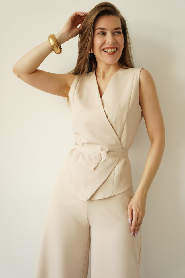 Elegant set with tied vest and palazzo pants Coco beige