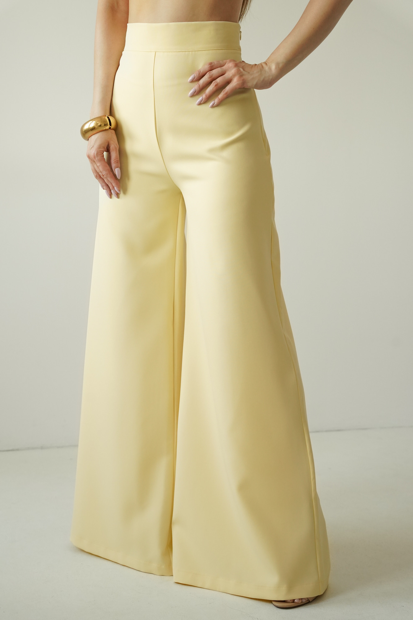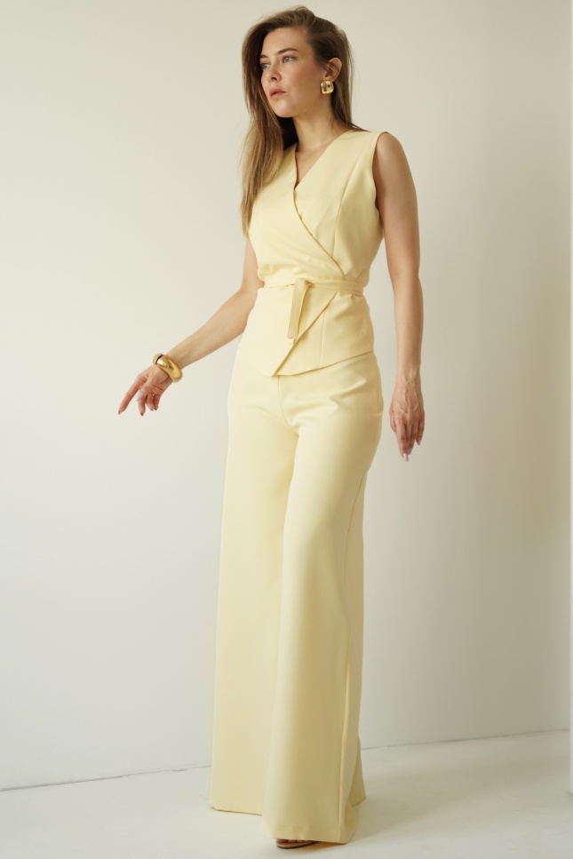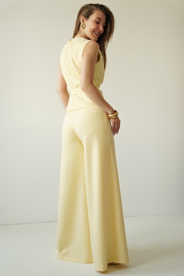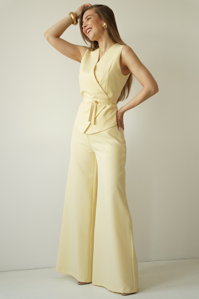 Elegant set with tied vest and palazzo pants Coco pastel yellow