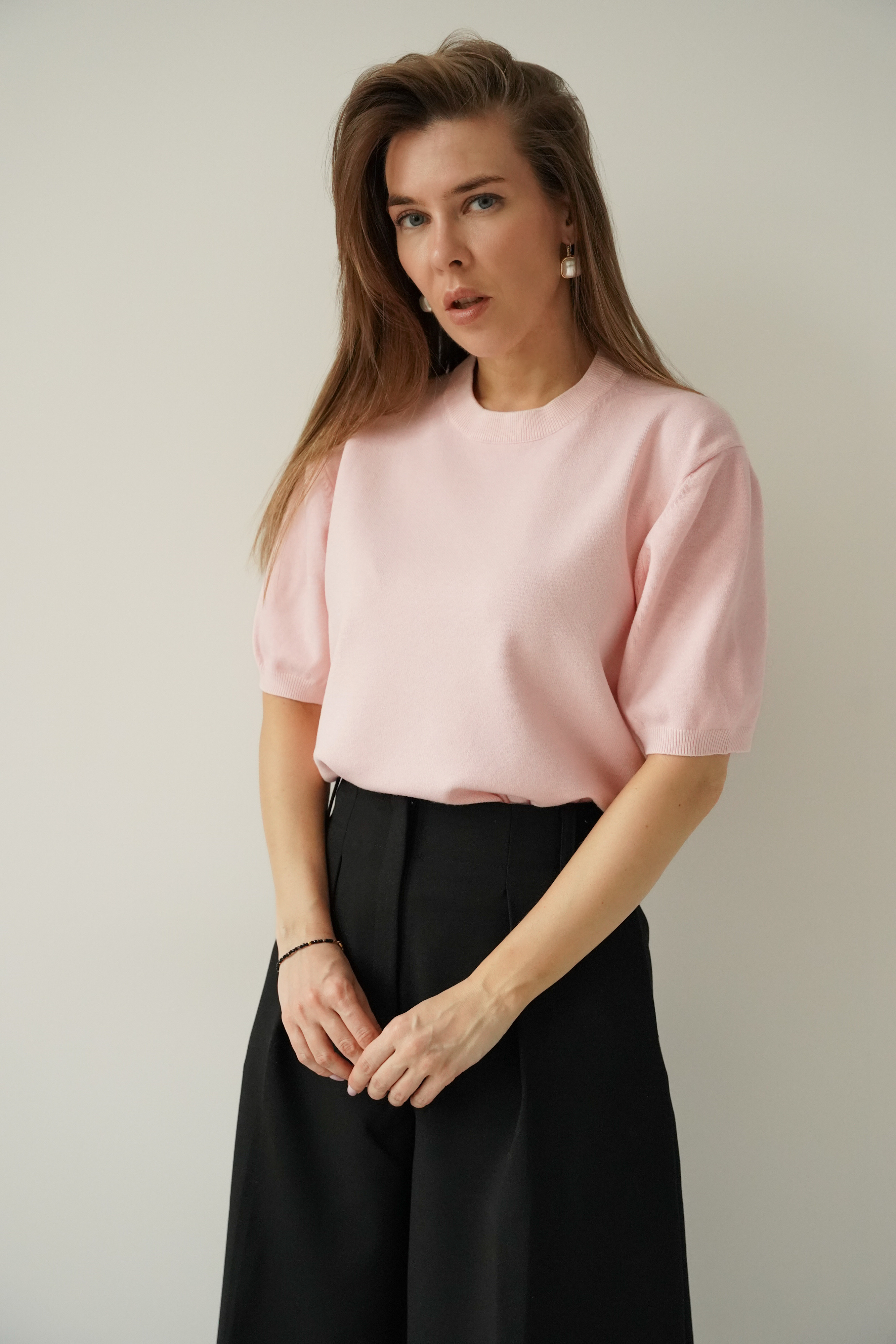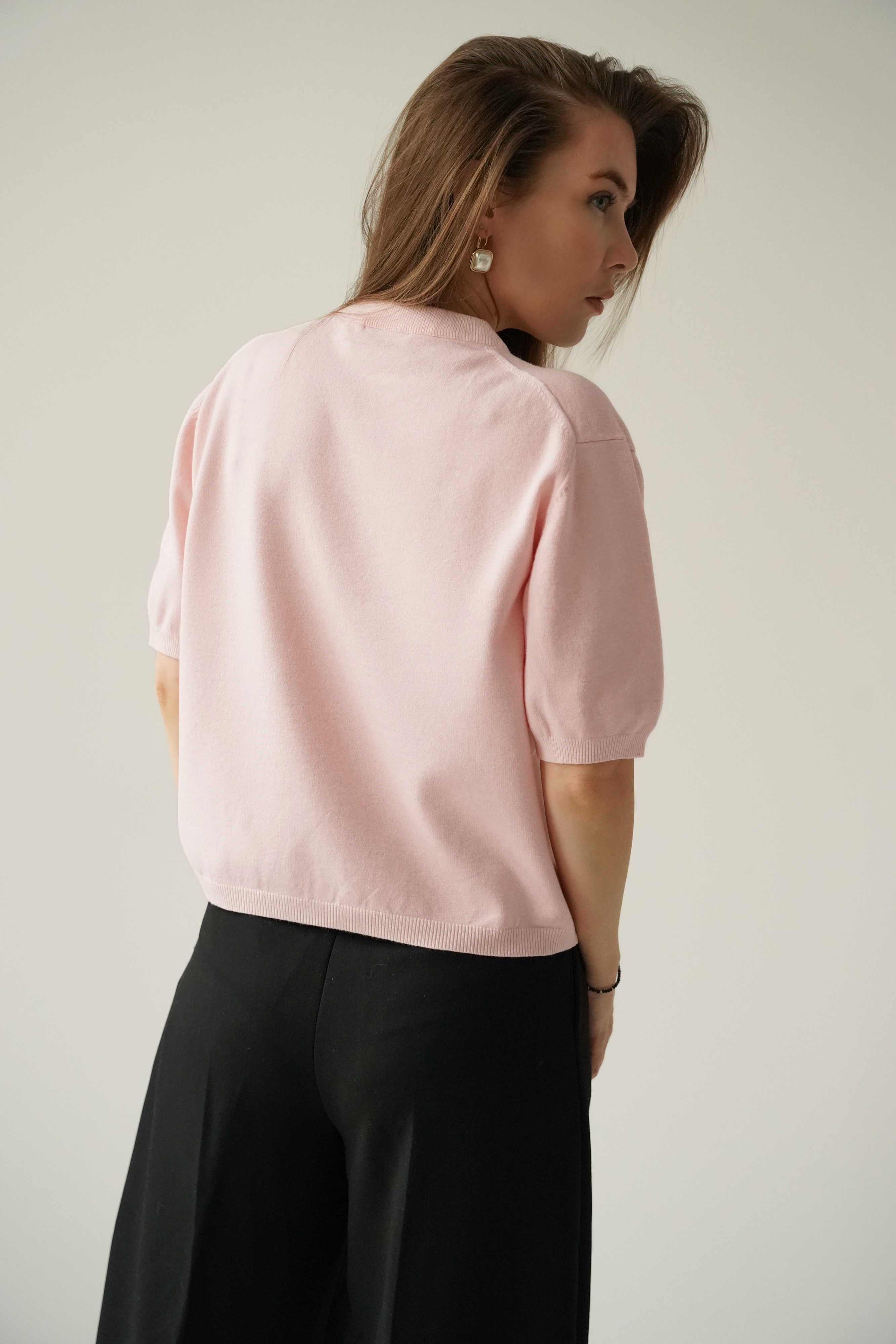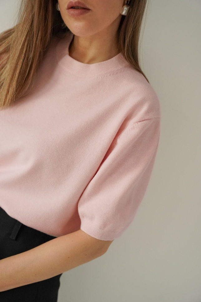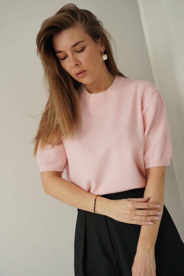 Elegant short-sleeved Amelia jumper in powder pink