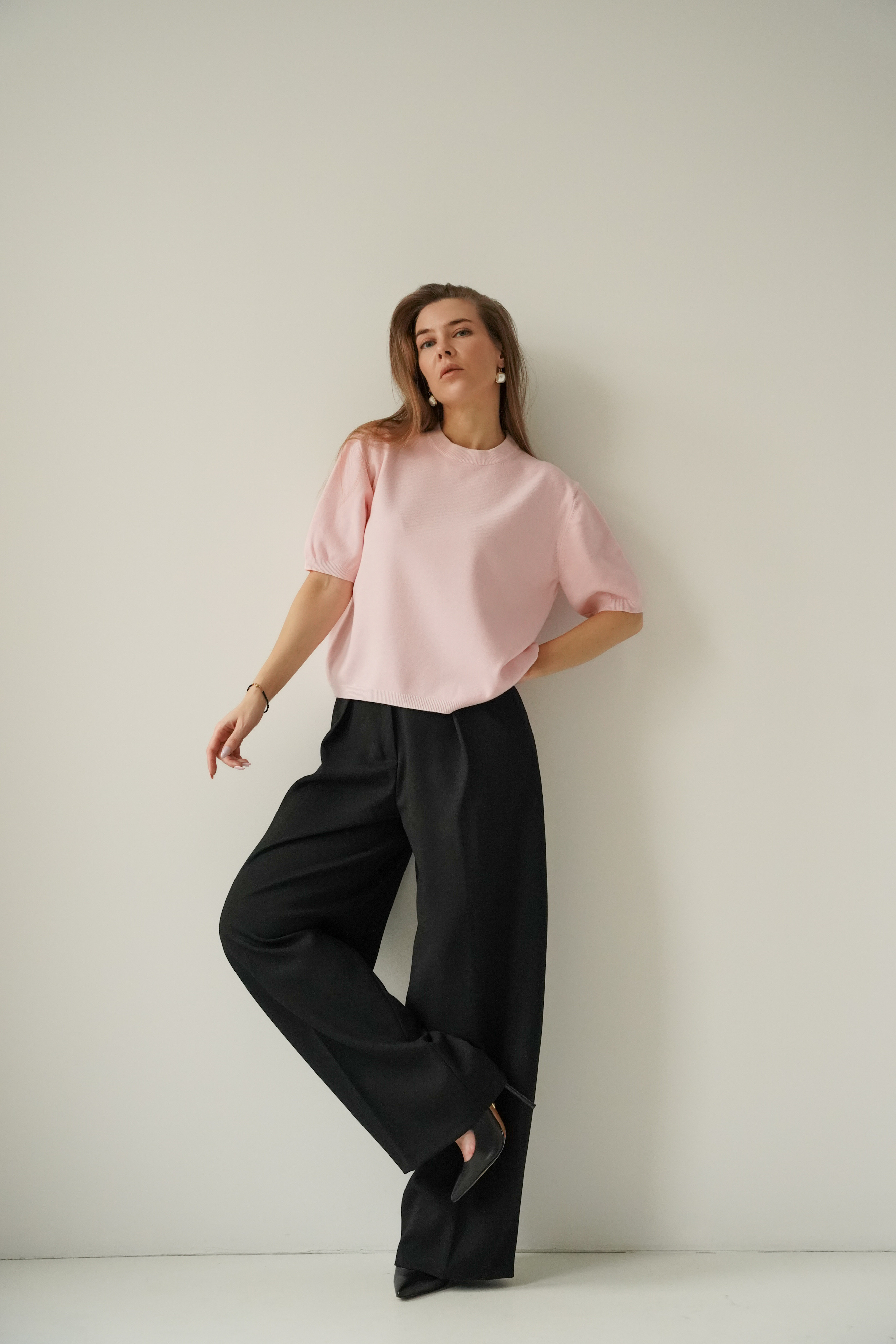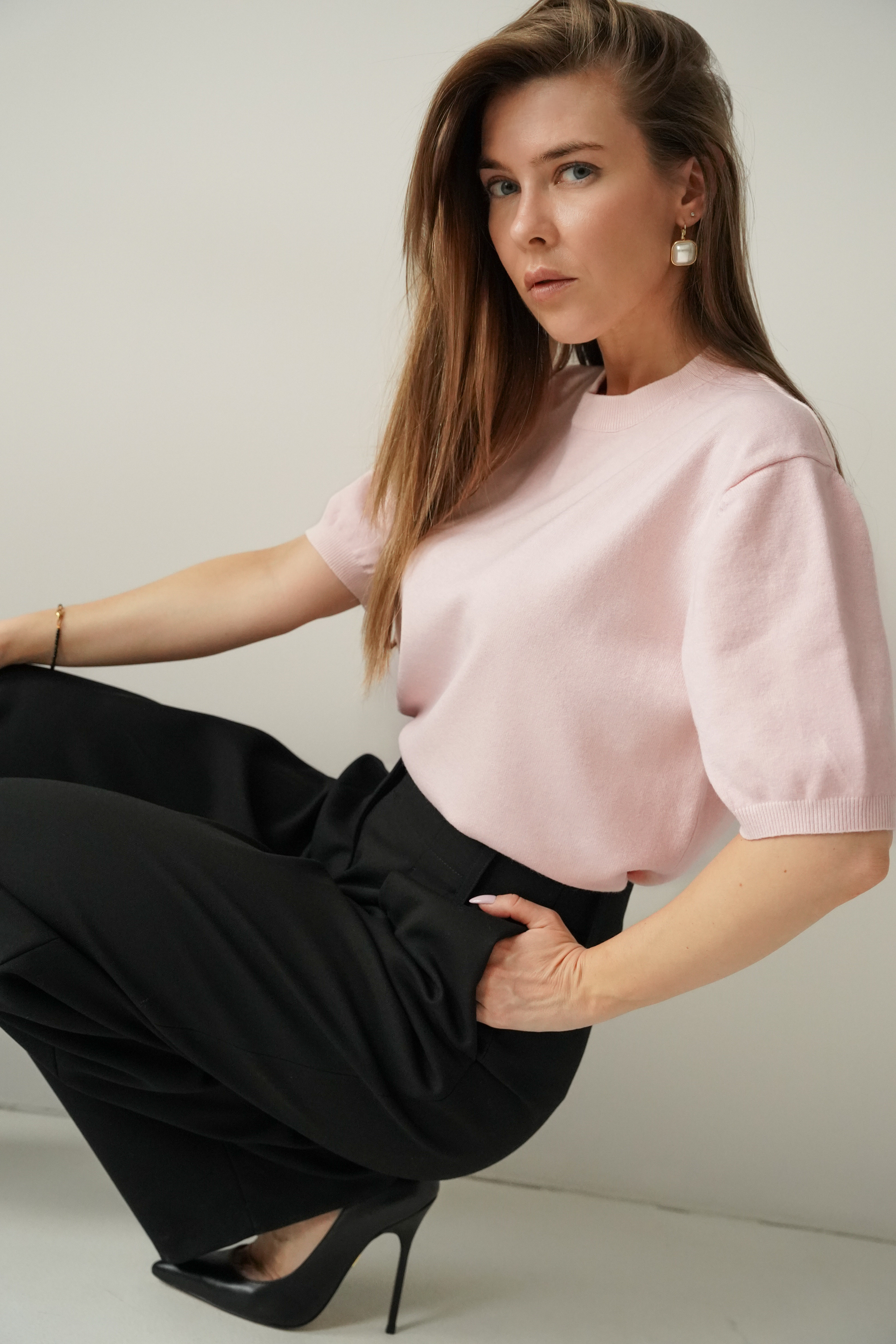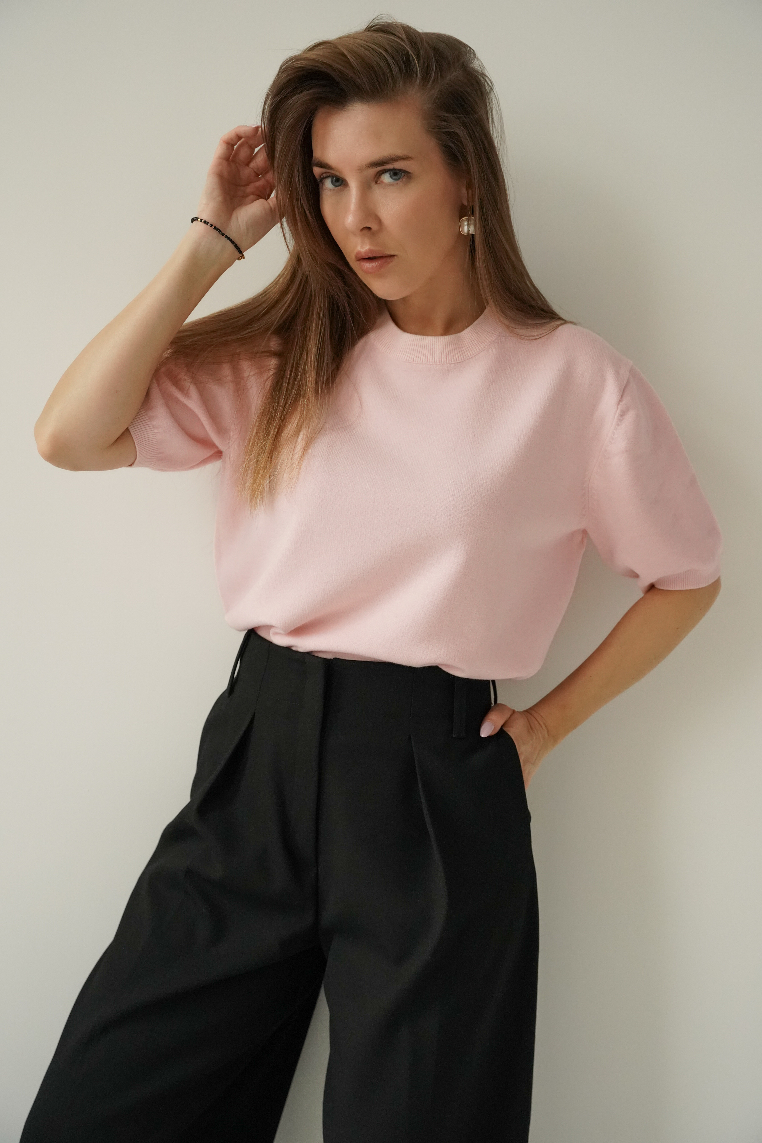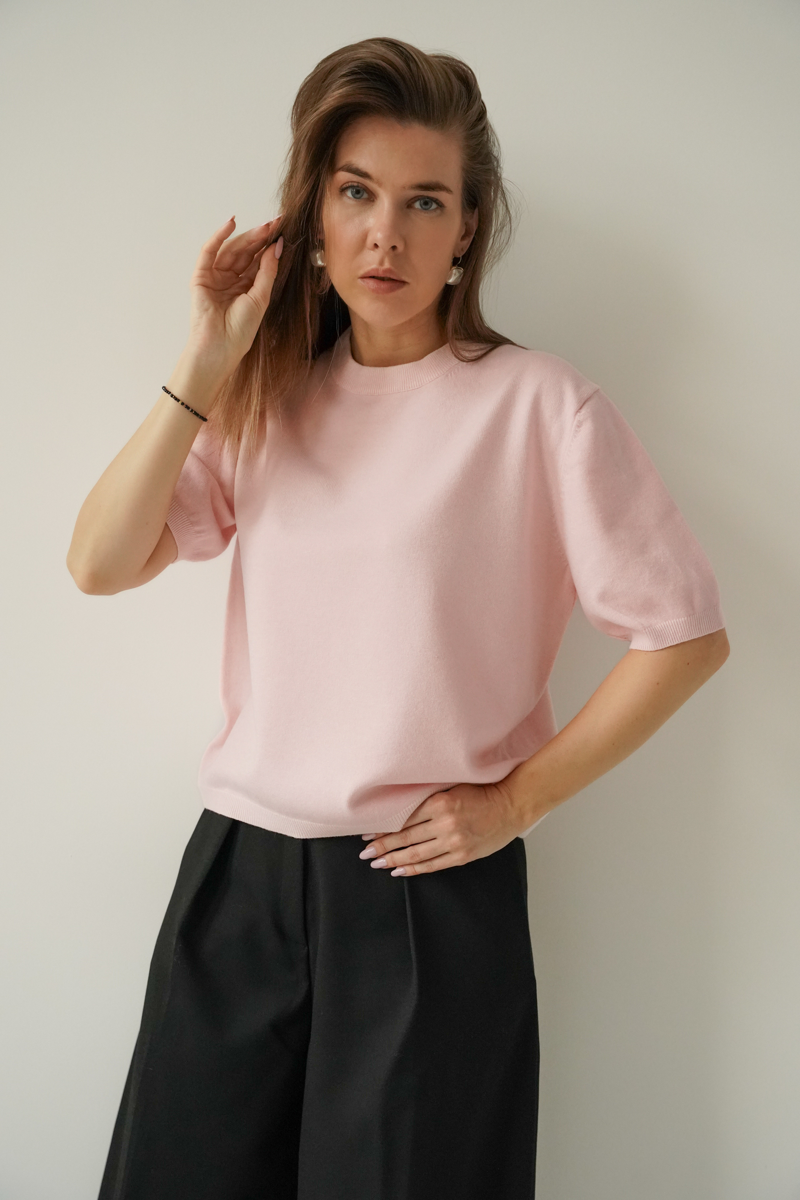 Elegant short-sleeved Amelia jumper in powder pink