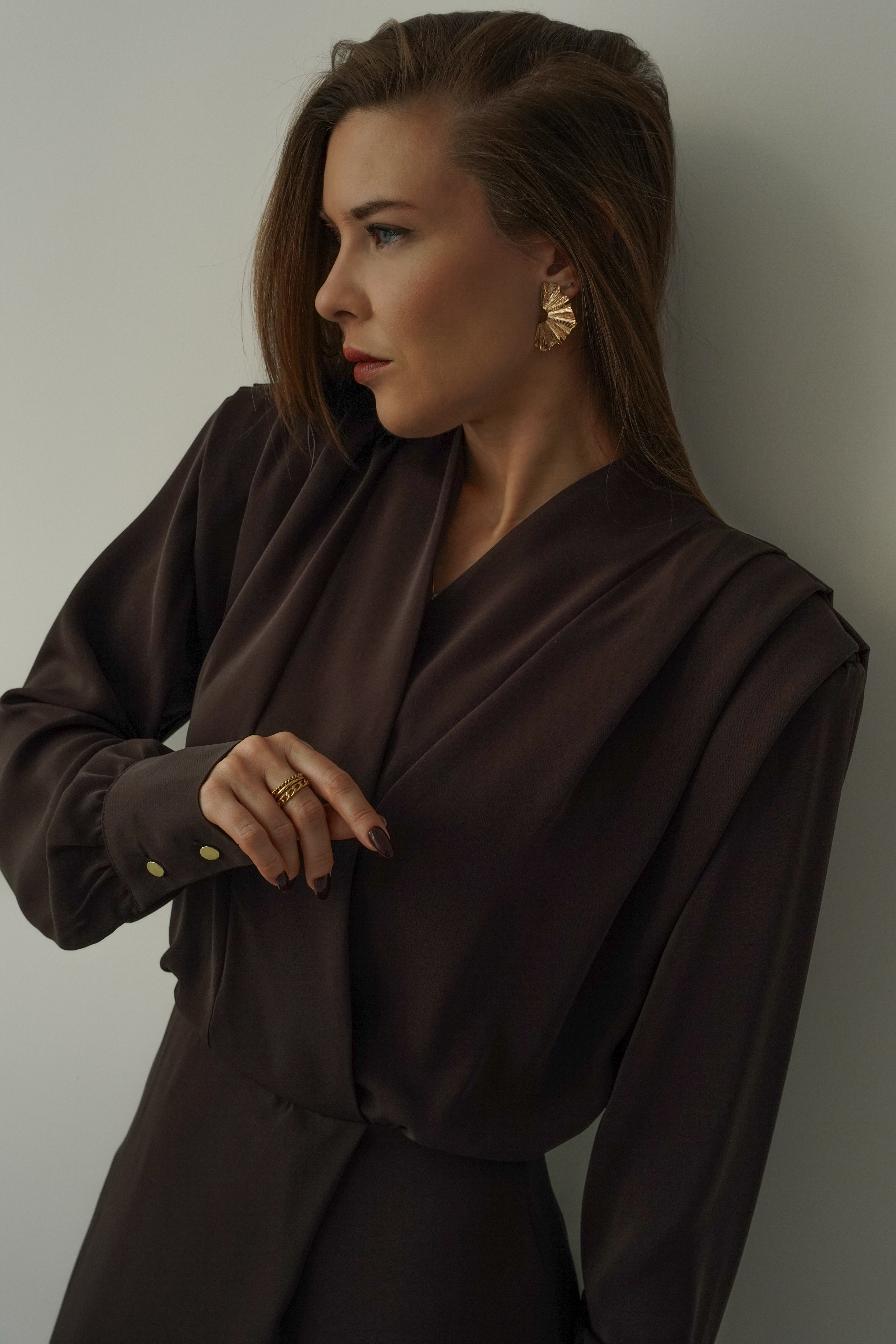 Elegant women's Eloise dress in chocolate brown