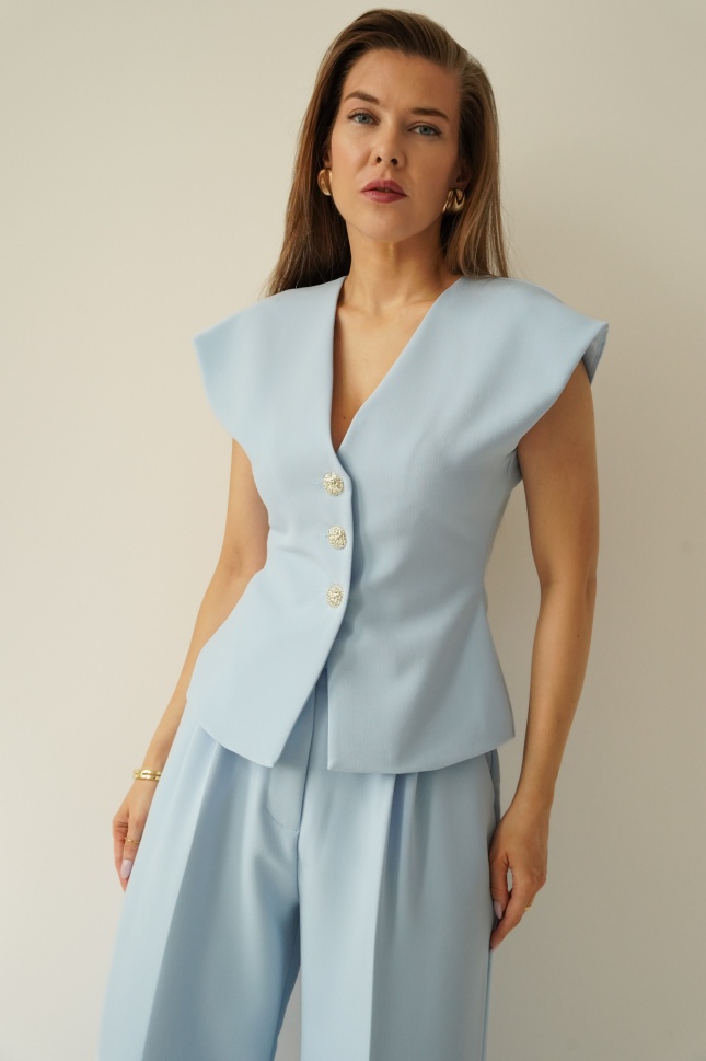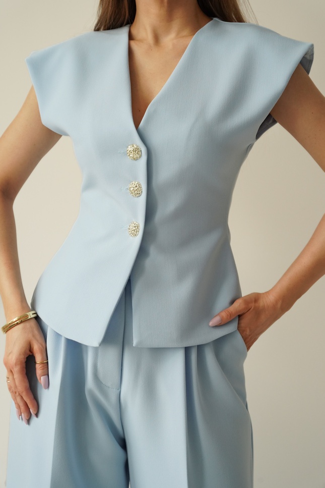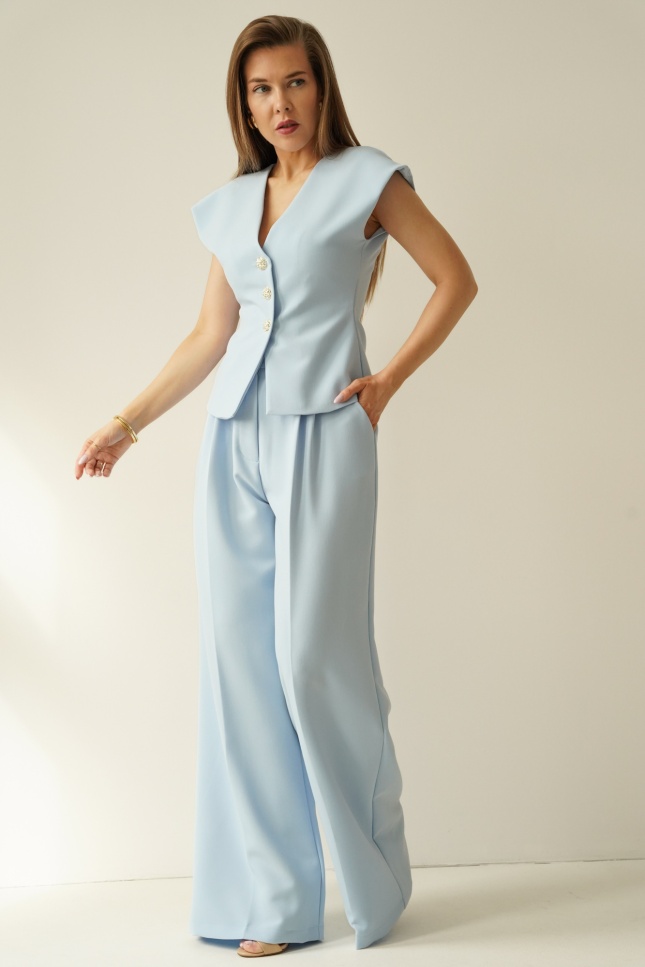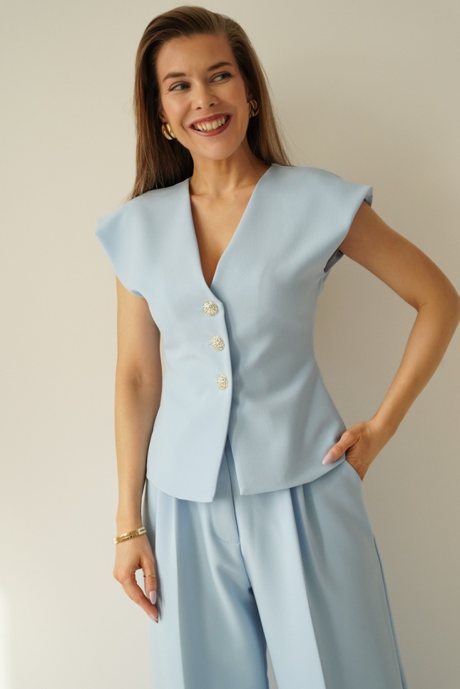 Elegant women's set with a fitted Audrey waistcoat in icy blue