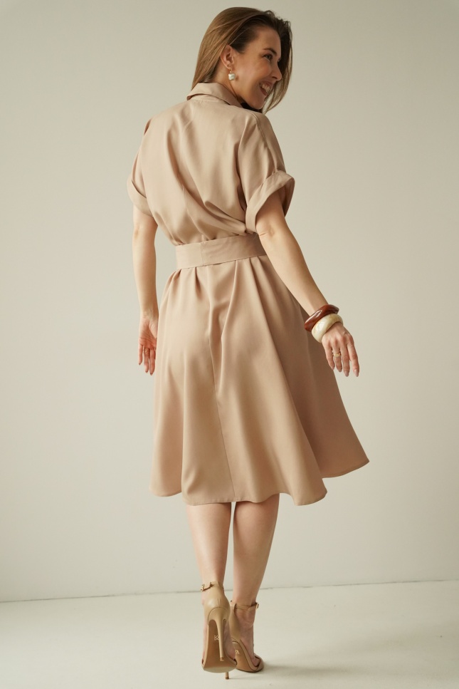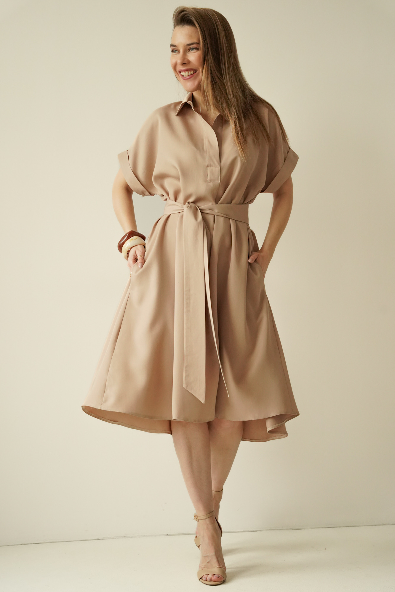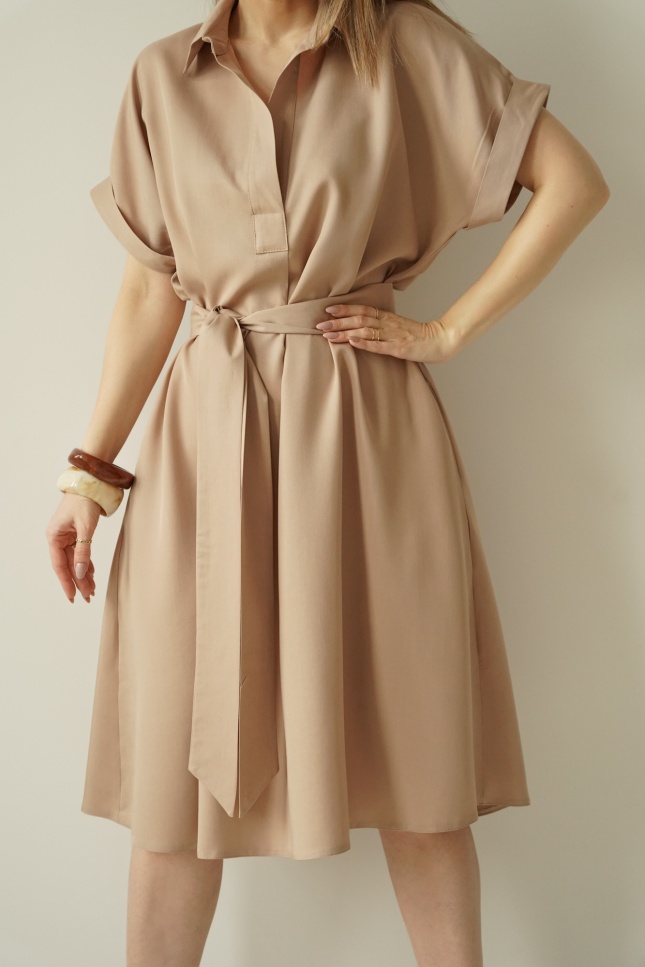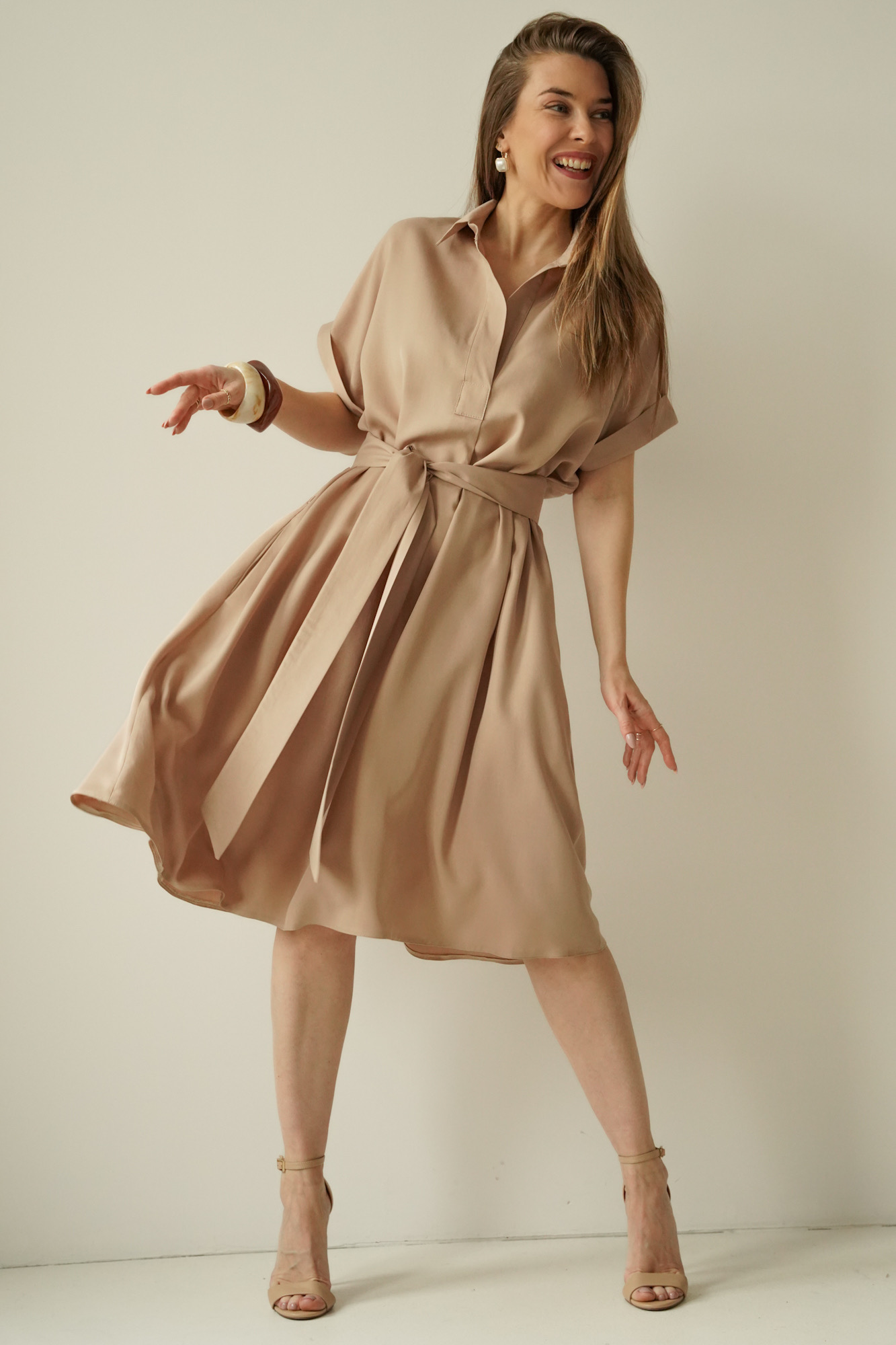 The waist, accentuated by a belt, allows the dress to fit the figure perfectly, whilst the carefully selected 100% lyocell fabric is soft, breathable and comfortable to wear.