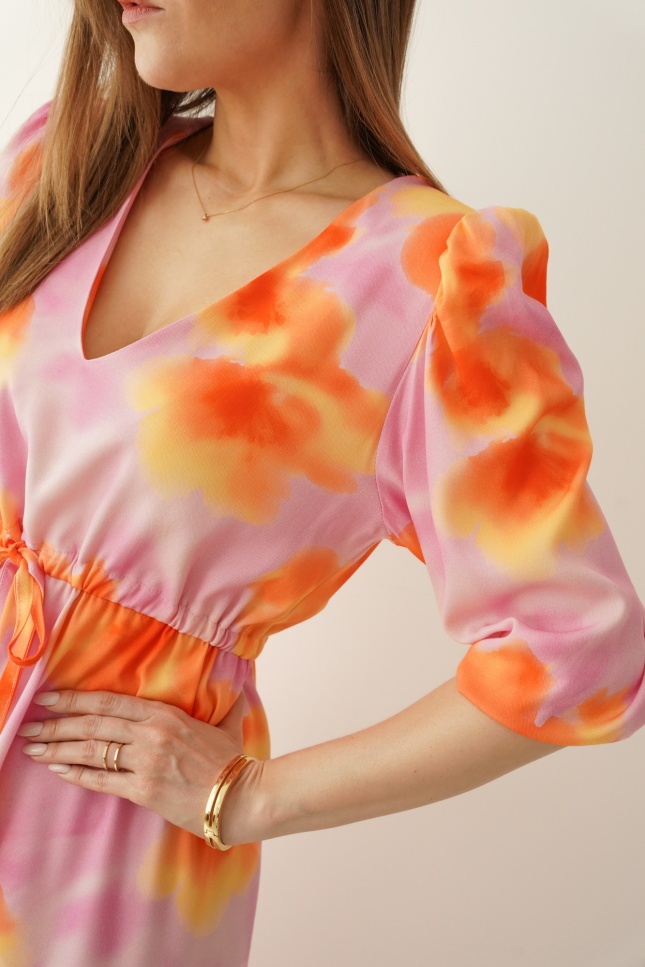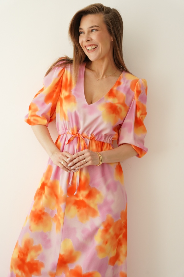 The FLORENCE dress is a feminine, timeless design made in Poland from lightweight, breathable 100% EcoVero viscose. The dress features a V-neck, puff sleeves and a drawstring waistband that subtly accentuates the figure. The comfortable below-the-knee length makes this style perfect for the office, everyday wear, as well as holiday dinners or weekend get-togethers.